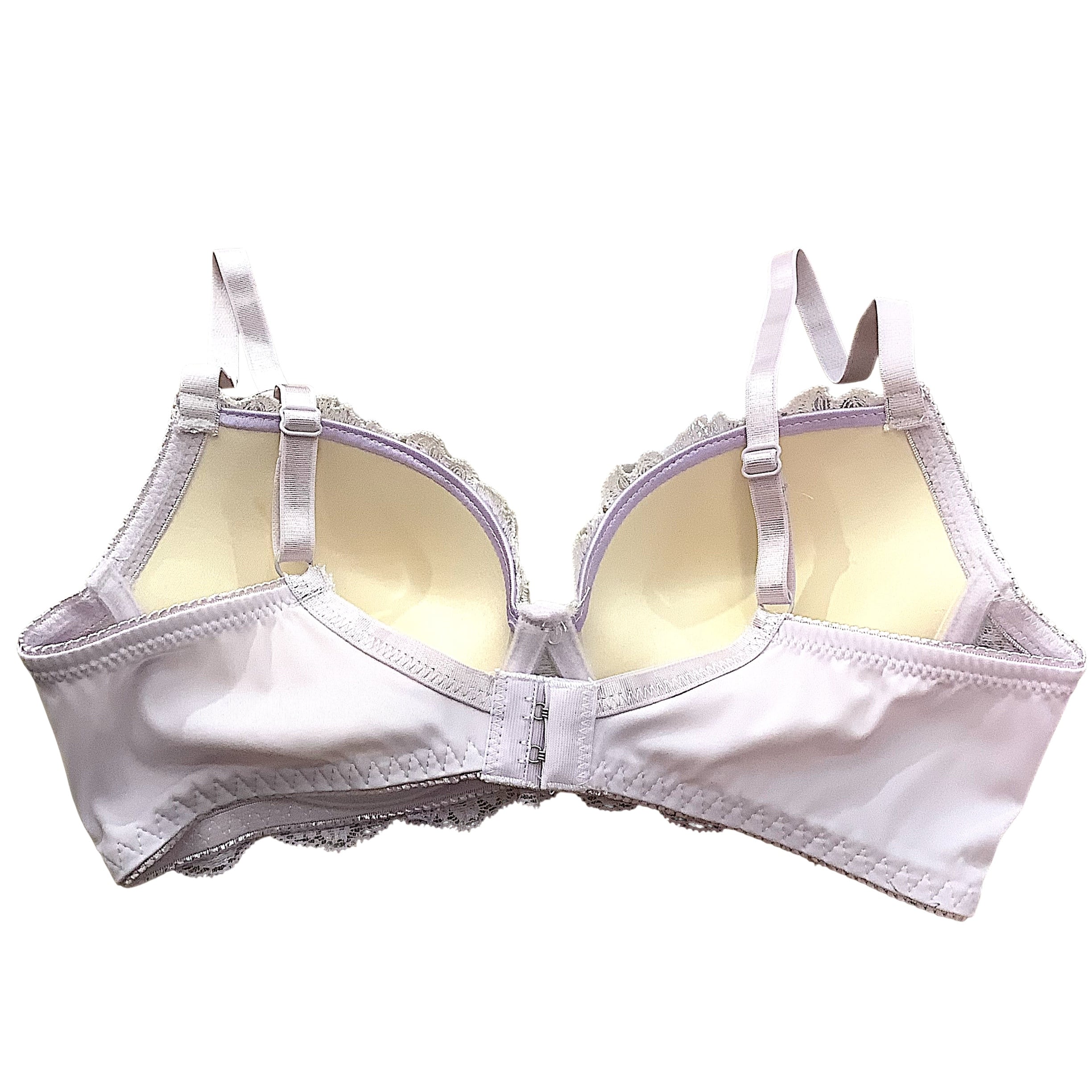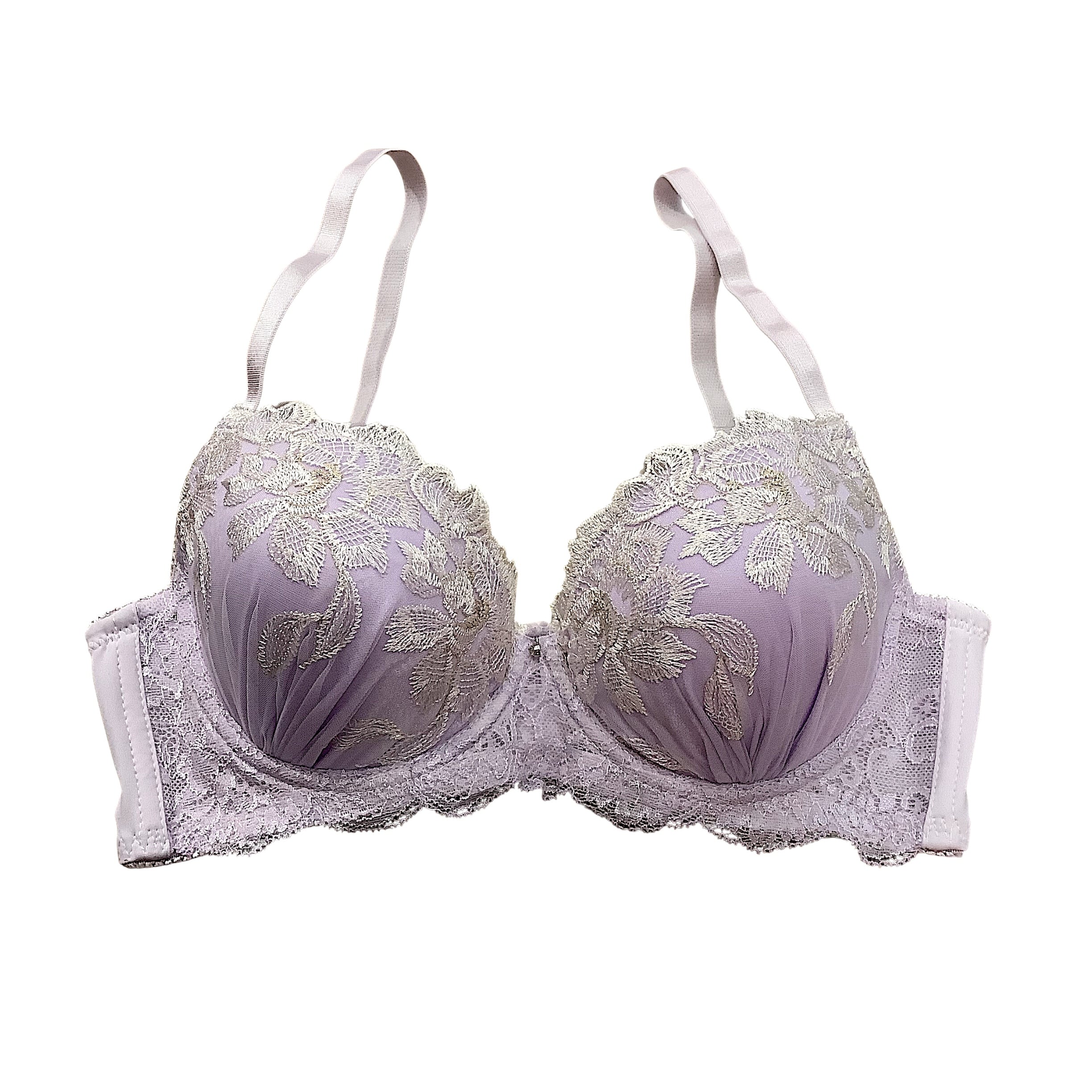 胸元の形崩れやボリューム不足に悩む方へ。淡いラベンダーカラーと繊細な刺繍レースが、上品で女性らしい印象を演出します。立体カップが自然な谷間を作り、長時間の着用でも快適なフィット感をキープ。日常使いはもちろん、特別な日やリラックスタイムにもぴったりです。サイズはBCDカップ65〜75対応で、レビューでも着心地とデザイン性が高く評価されています。