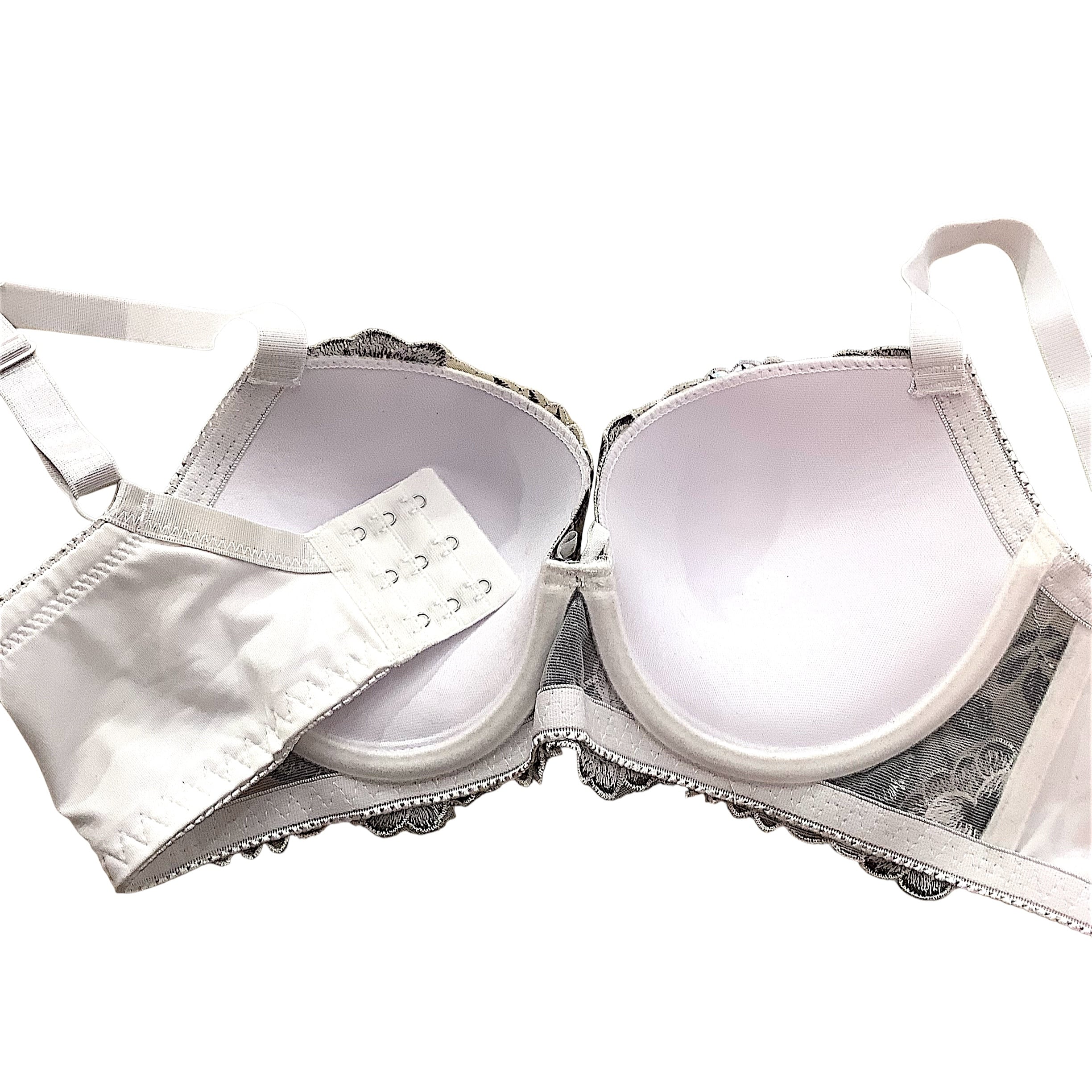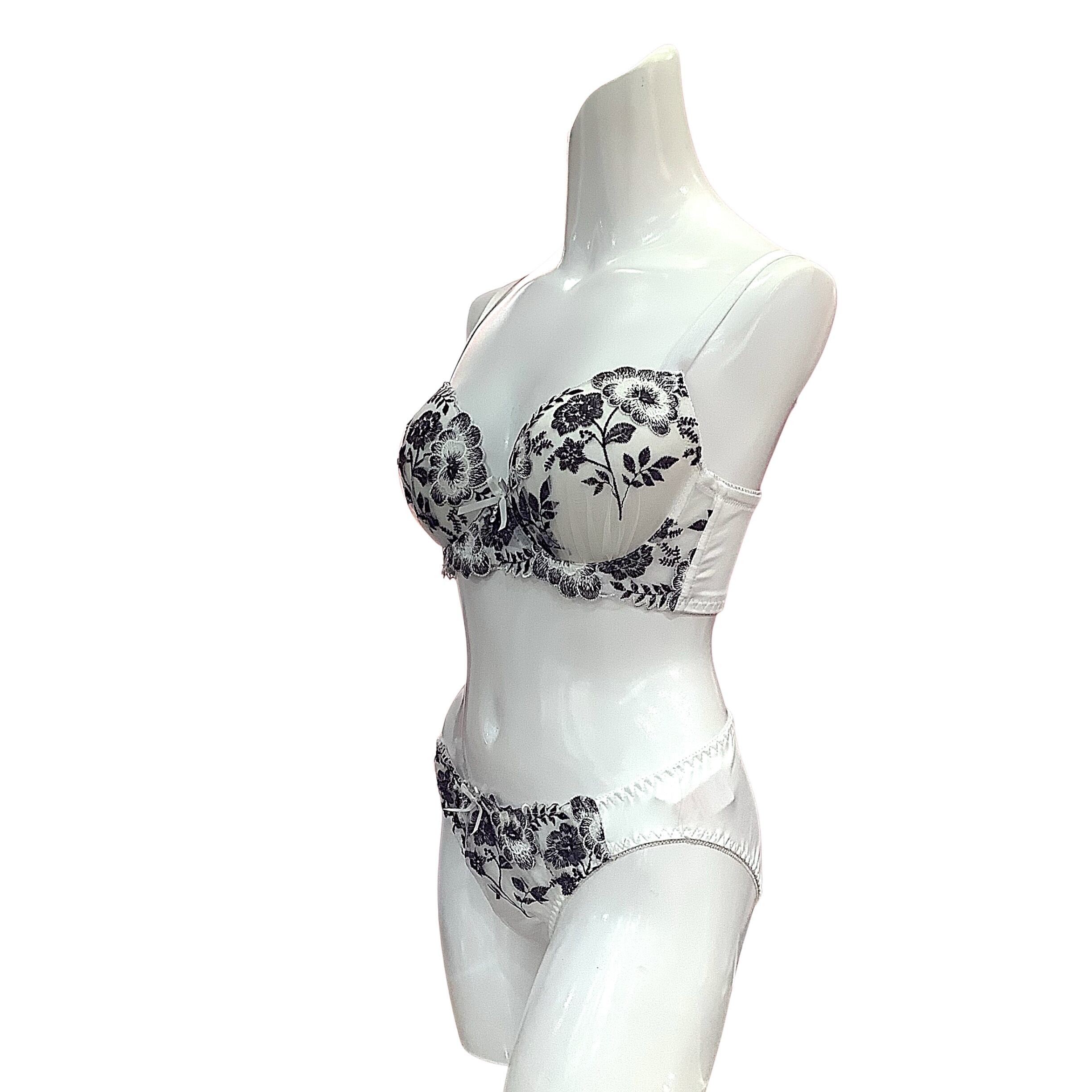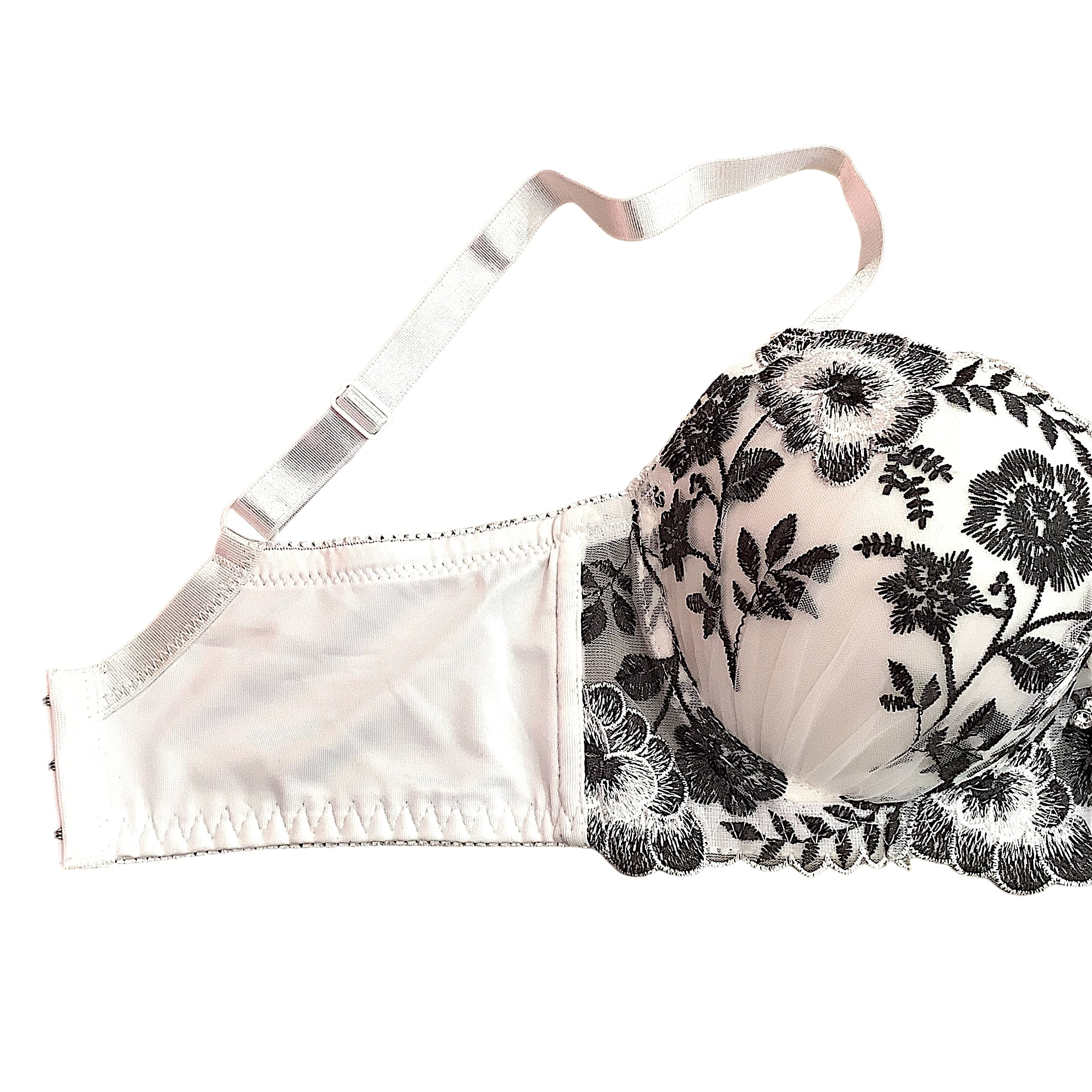 k-EF【76142white】白黒刺繍美胸ブラ&ショーツEFカップ