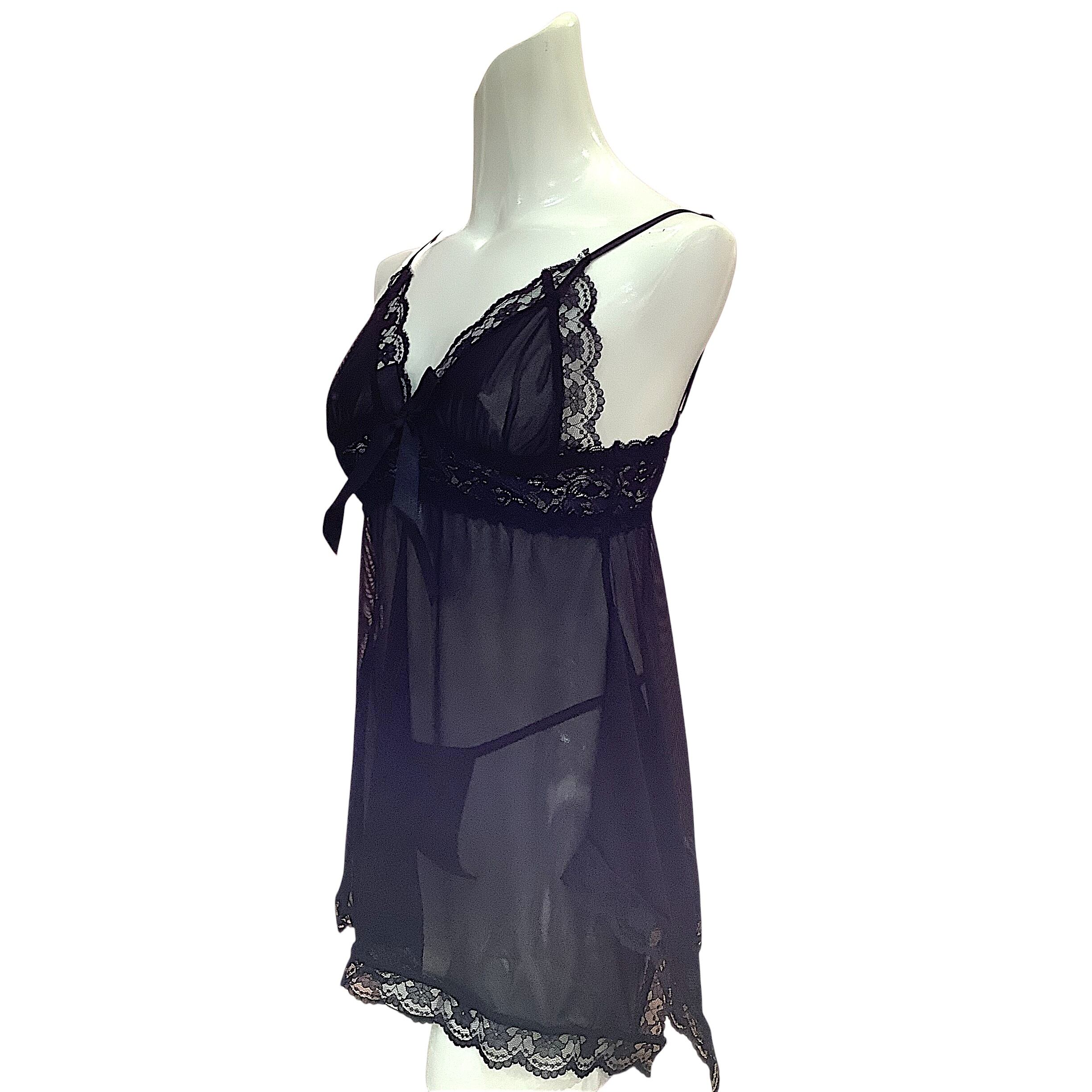 透け感のあるブラックレースがセクシーな印象を与えるスリップとGストリングのセット。カップなしデザインでボディラインを美しく魅せ、軽やかで解放感のある着心地を実現します。胸元にはリボンをあしらい、大人可愛いアクセントをプラス。裾には繊細なレースを施し、動くたびに揺れるエレガントな仕上がり。ショーツはミニマルなGストリング仕様で、ヒップラインをすっきりと演出。特別な夜や勝負下着としてはもちろん、普段のおしゃれインナーにもおすすめ。