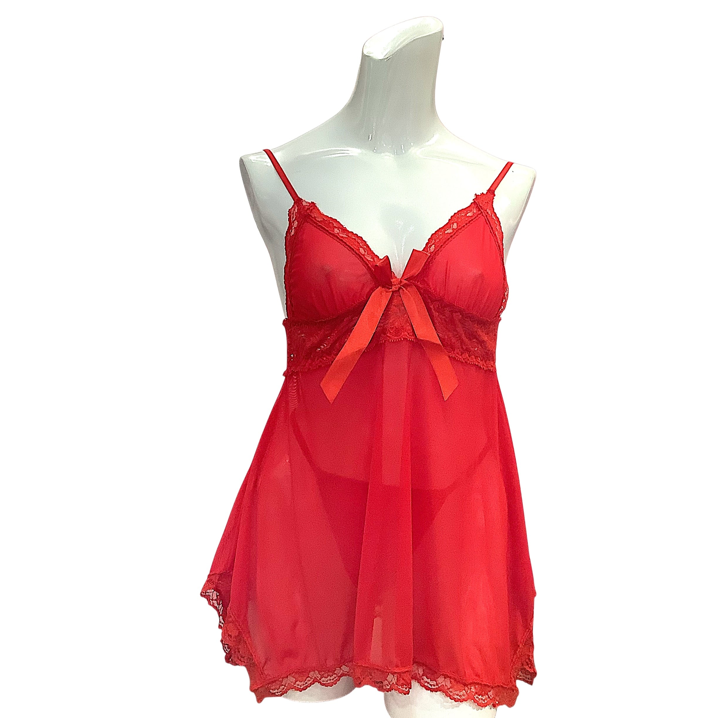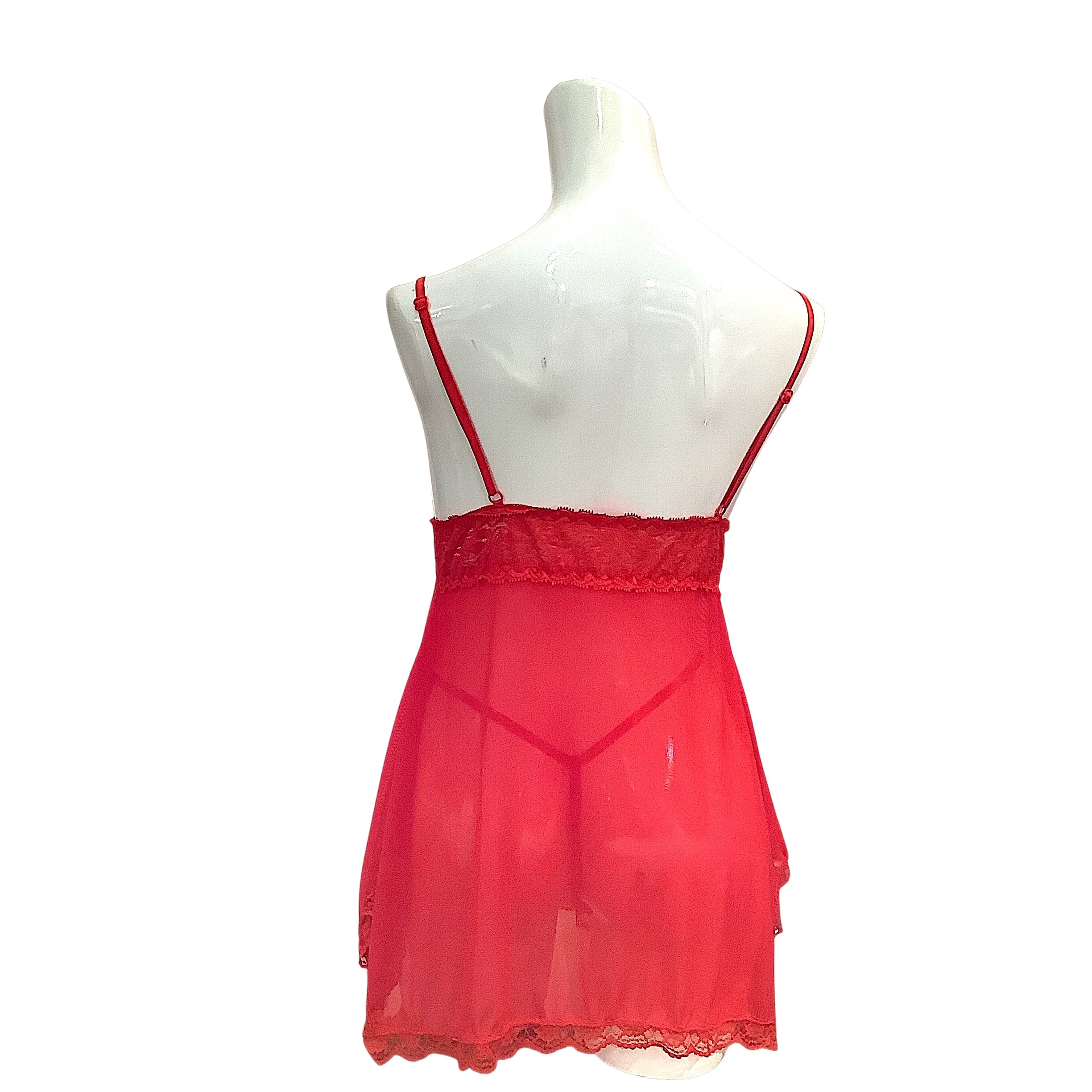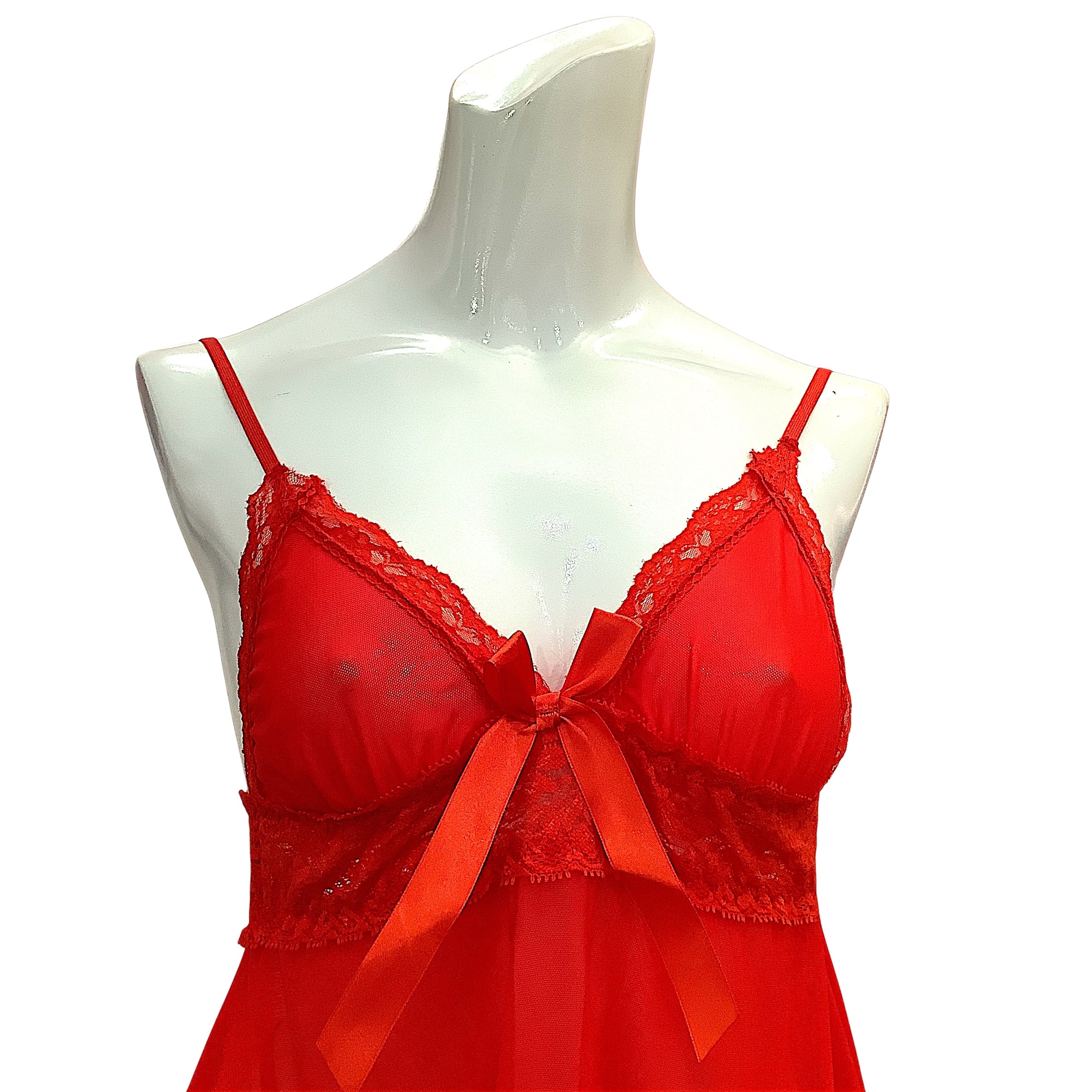 情熱的なレッドカラーが印象的な、スリップとGストリングのランジェリーセット。カップなしデザインで軽やかに着られ、透け感のあるレース素材がセクシーさを引き立てます。胸元には大きめリボンをあしらい、女性らしさと遊び心をプラス。裾のレースが揺れるたびに華やかでエレガントな雰囲気を演出。ショーツはGストリング仕様で、ヒップラインをすっきりと美しく魅せます。特別な夜の演出やギフト用にも最適な、大人の女性におすすめの一着です。