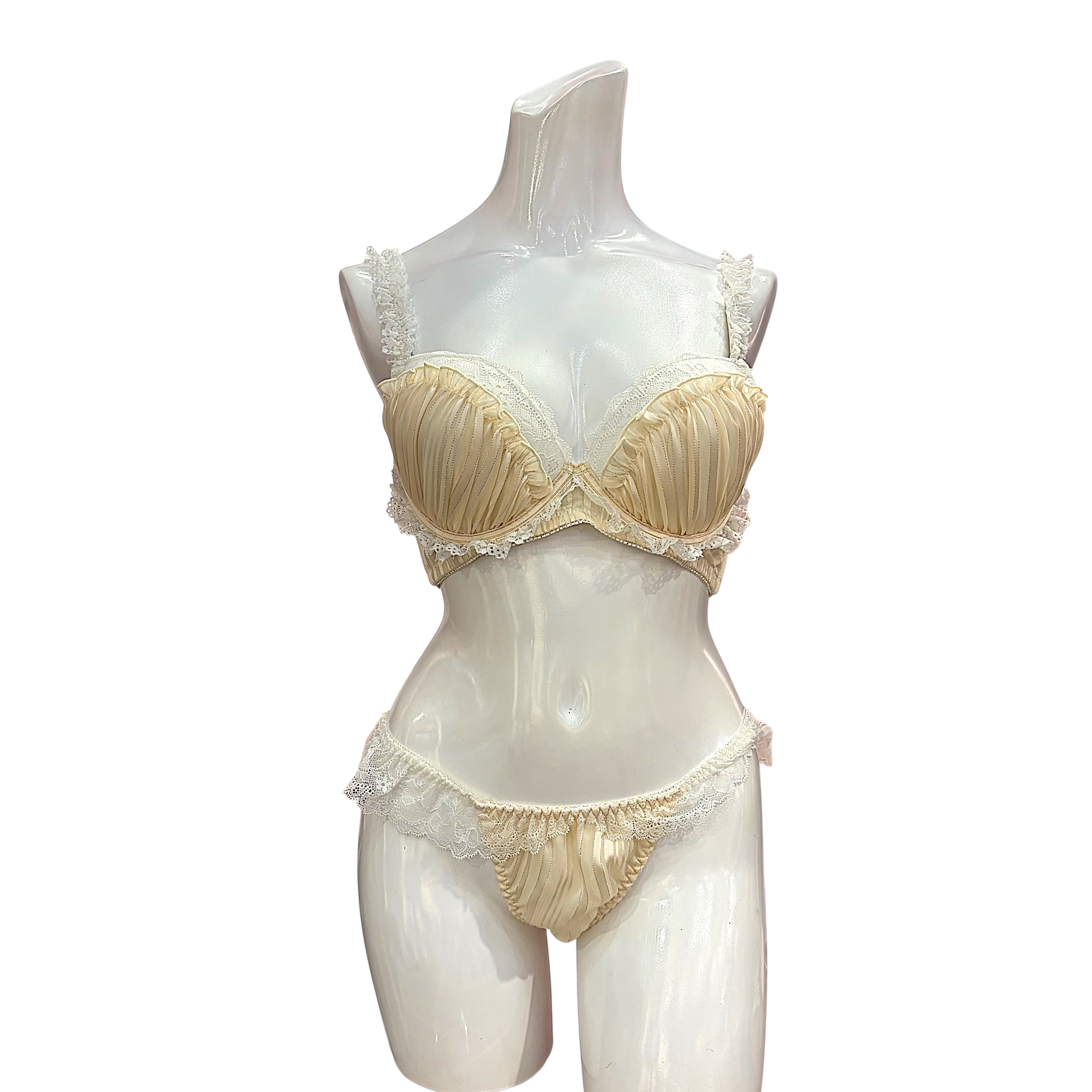 やわらかな雰囲気で上品な女性らしさを演出する、E・Fカップ対応のランジェリーセットです。