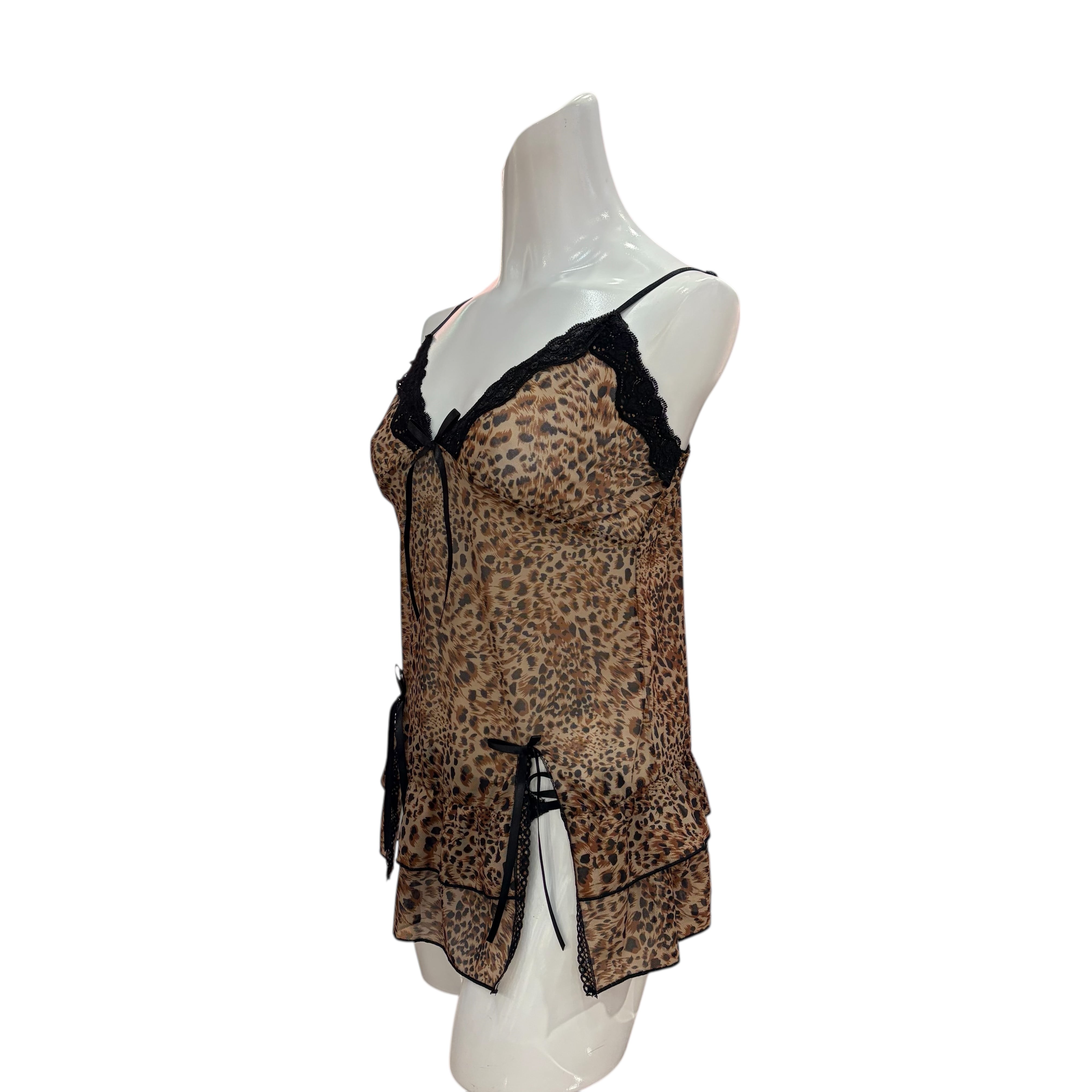 大人かわいく魅せたい方にぴったりのヒョー柄ランジェリーセット。透け感のあるシフォン素材が軽やかに肌を包み、レースとリボンのアクセントでフェミニンな印象に。ショーツはサイドリボンで調整可能、体型にフィットして快適な着心地です。寝室での特別な夜はもちろん、リラックスタイムにもおすすめ。着るだけで気分が上がるデザインで、パートナーからの評価も◎。繊細なディテールと柔らかい素材が自信を引き出す、特別な一着です。