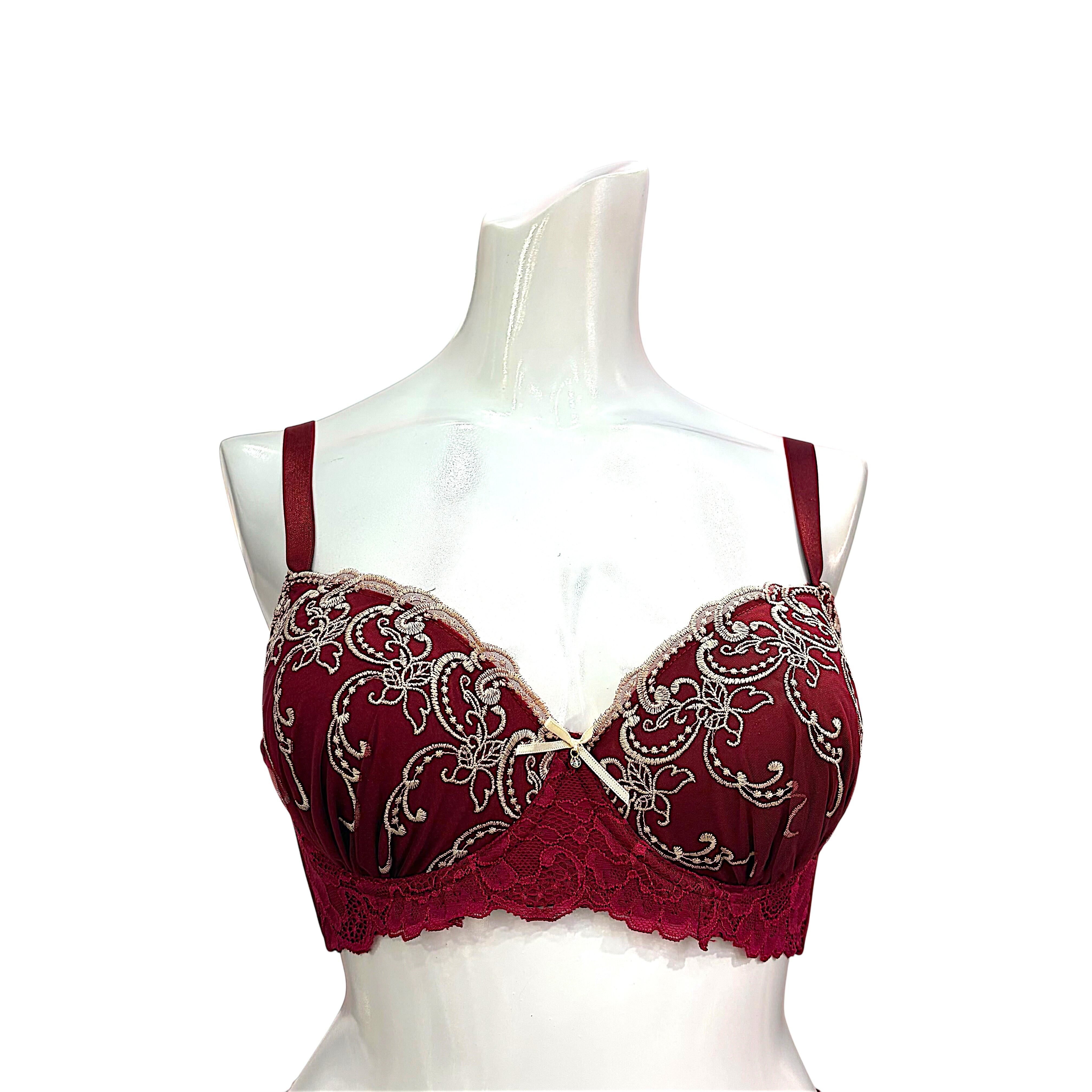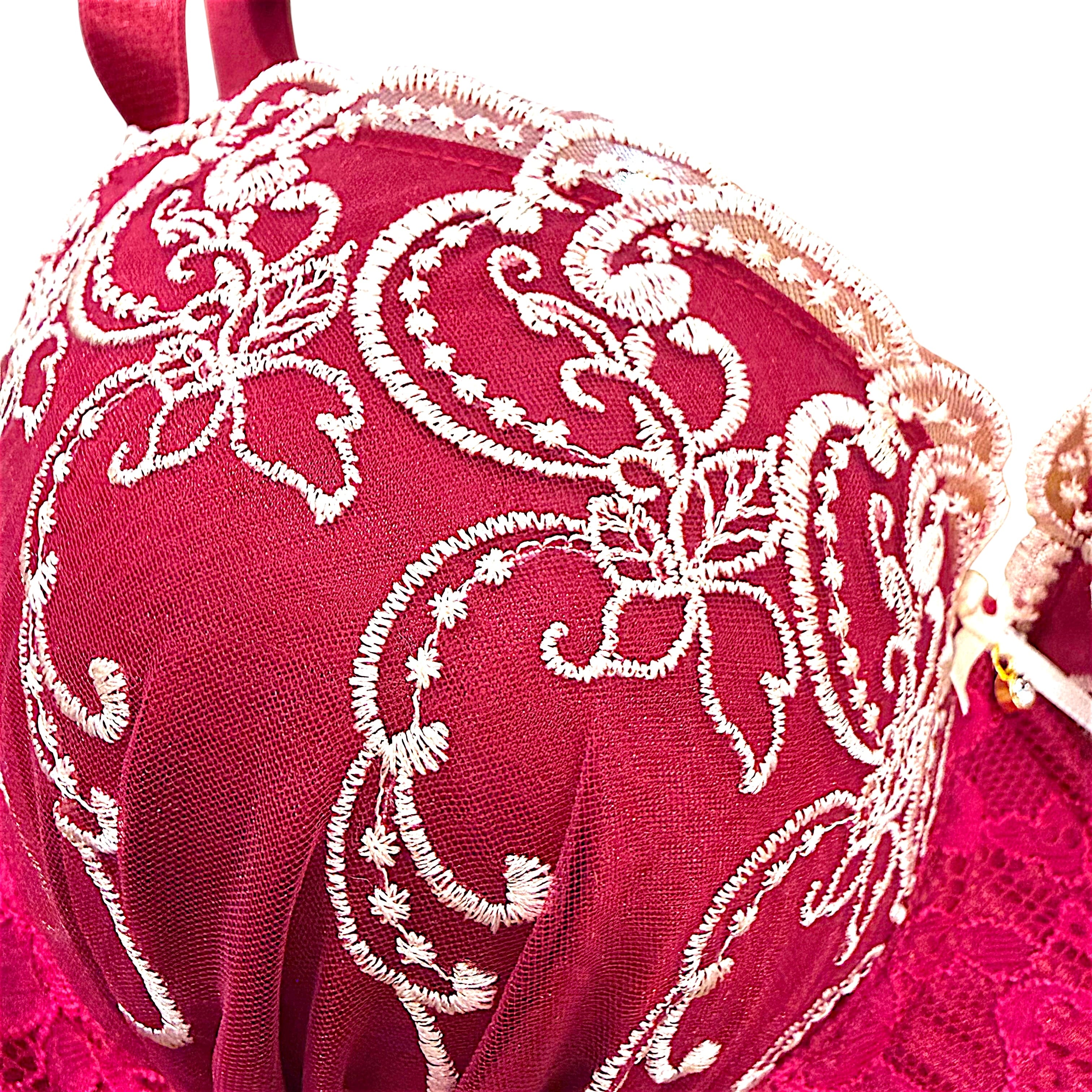 華やかさも着心地も両立したい方におすすめの、刺繍レースが目を惹くランジェリーセットです。立体刺繍がデコルテを美しく見せ、程よい補正力でバストラインを自然にサポートします。ショーツは柔らかな肌触りで締め付け感が少なく、デイリーにも特別な日にも使いやすい快適設計。深みのある赤が大人の魅力を引き立て、自信を纏える仕上がりです。初めての方にも安心してお使いいただける品質で、上品なレース好きの方からも好評をいただいている一着です。