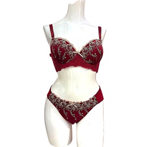 k-EF【76632レッド】刺繍レース赤ランジェリーセット