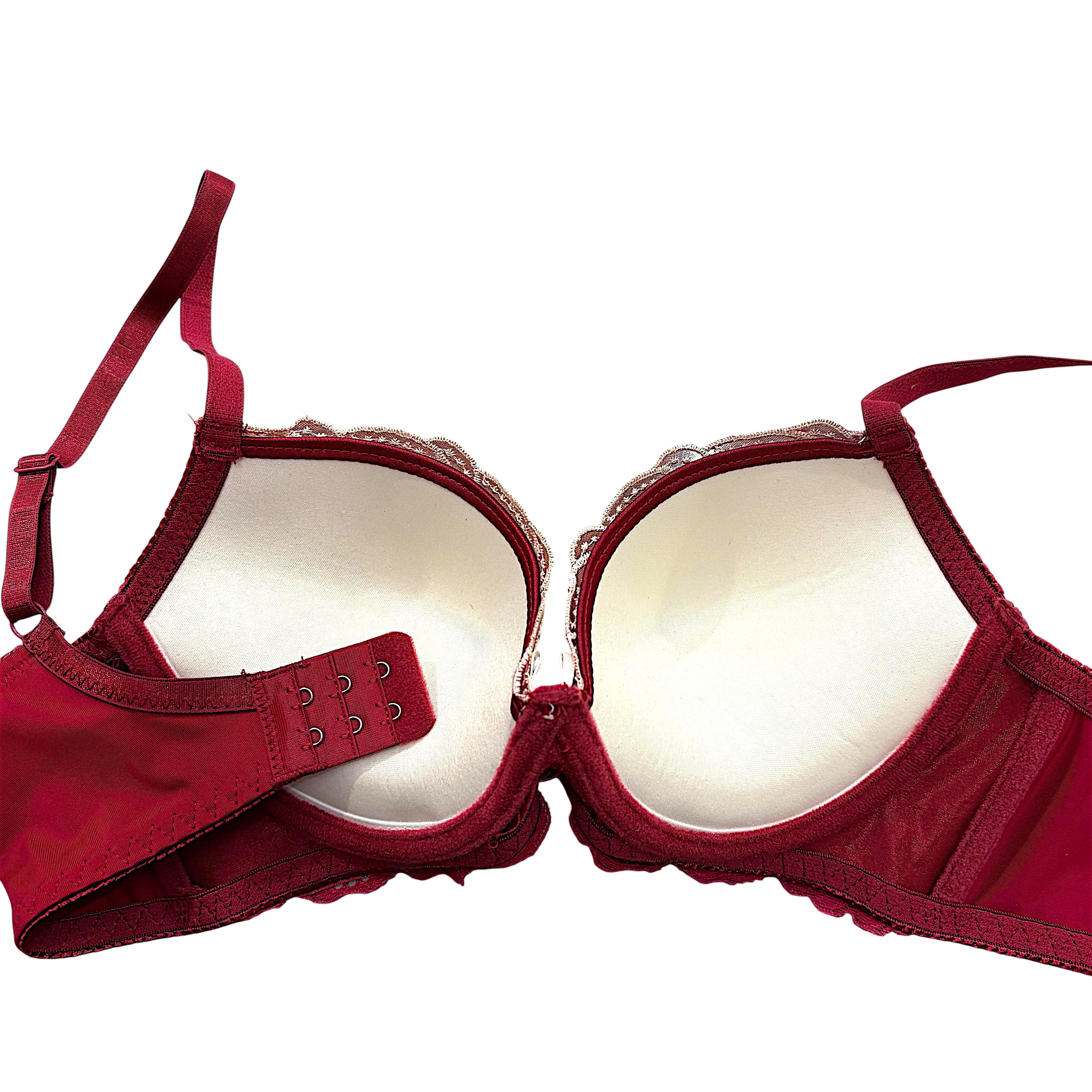 華やかさとフィット感を求める方にぴったりの、刺繍レースが美しいBCDカップ対応ランジェリーセットです。細やかな刺繍がデコルテを立体的に魅せ、程よい補正力で自然な丸みのバストラインへ。ショーツは柔らかな生地でストレスの少ない履き心地を実現し、デイリーにも特別な日にも使いやすい仕上がりです。深みのあるレッドカラーが大人の魅力を引き立て、装いに自信を与えてくれます。品質にもこだわり、レースの華やかさを楽しみたい方から好評をいただいている人気アイテムです。