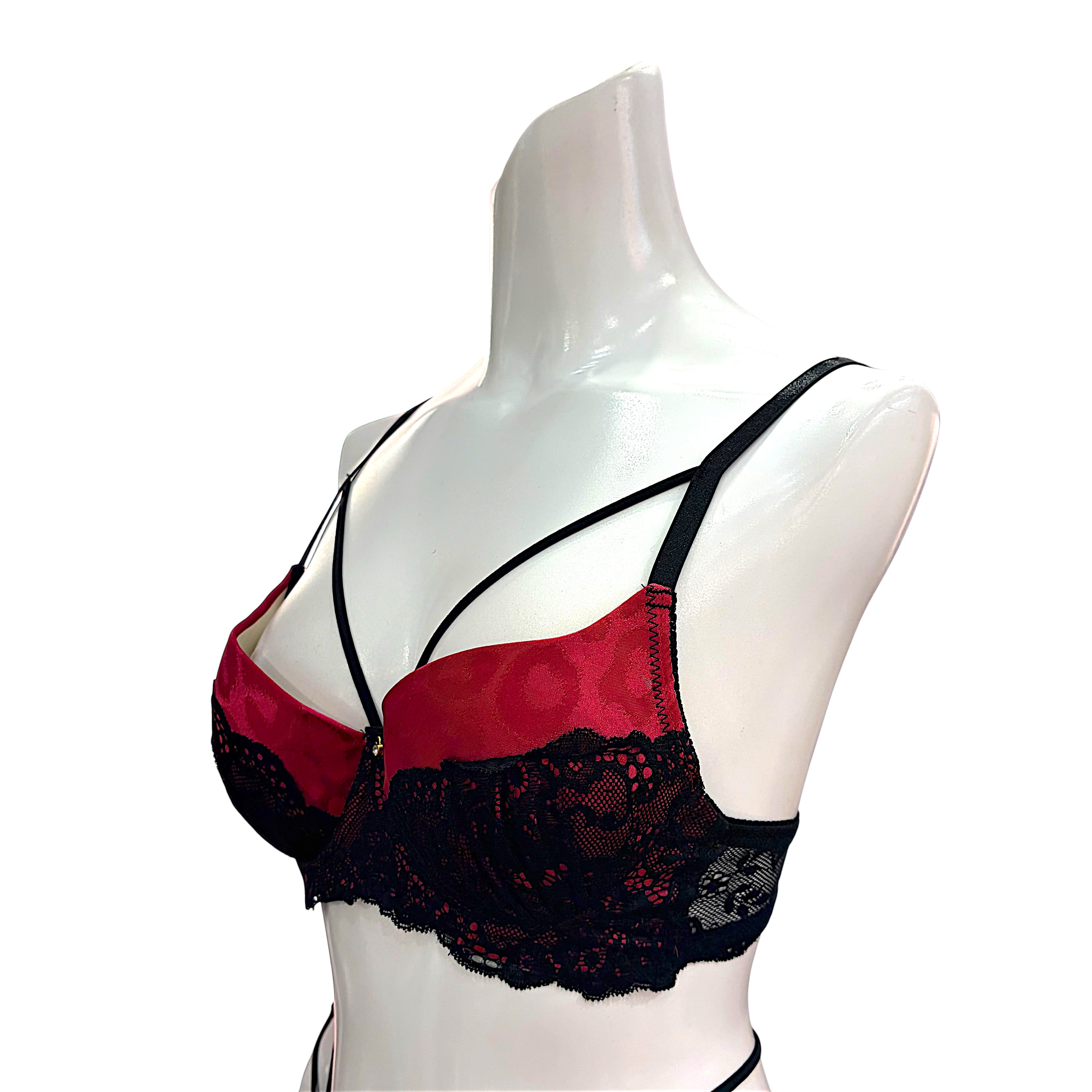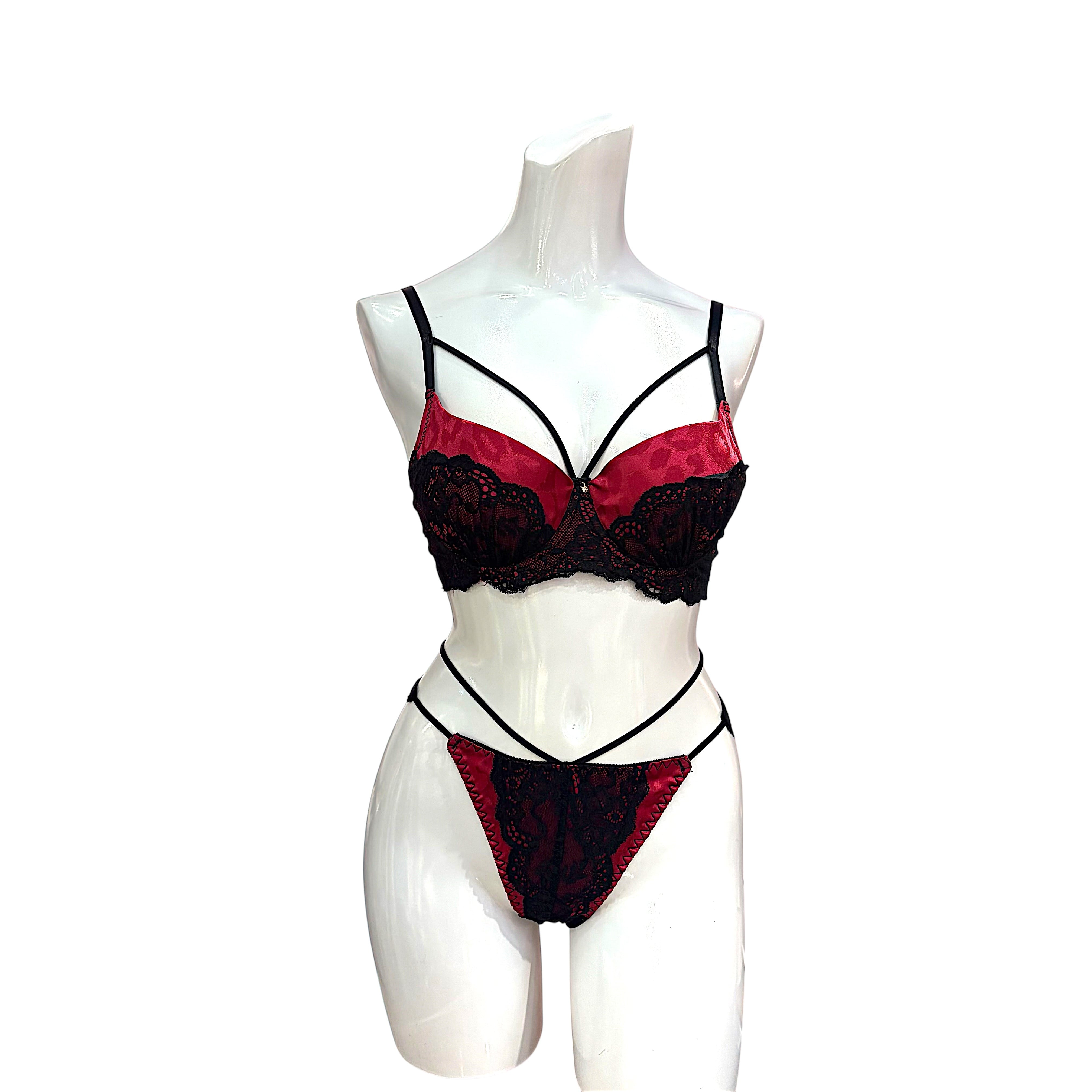 胸元やヒップのラインが気になる方に向けて、女性らしさを美しく引き立てるランジェリーセットです。赤×黒レースのコントラストが艶やかに映え、ストラップデザインがボディラインをすっきり演出します。軽やかな着け心地でデイリーにも特別な日にも使いやすく、下着としてはもちろんルームウェア気分でも楽しめるアイテムです。繊細なレースが肌ざわりよくフィットし、ズレにくい安定感も魅力。華やかなデザインながら使いやすいと好評の声が多い、満足度の高い一着です。