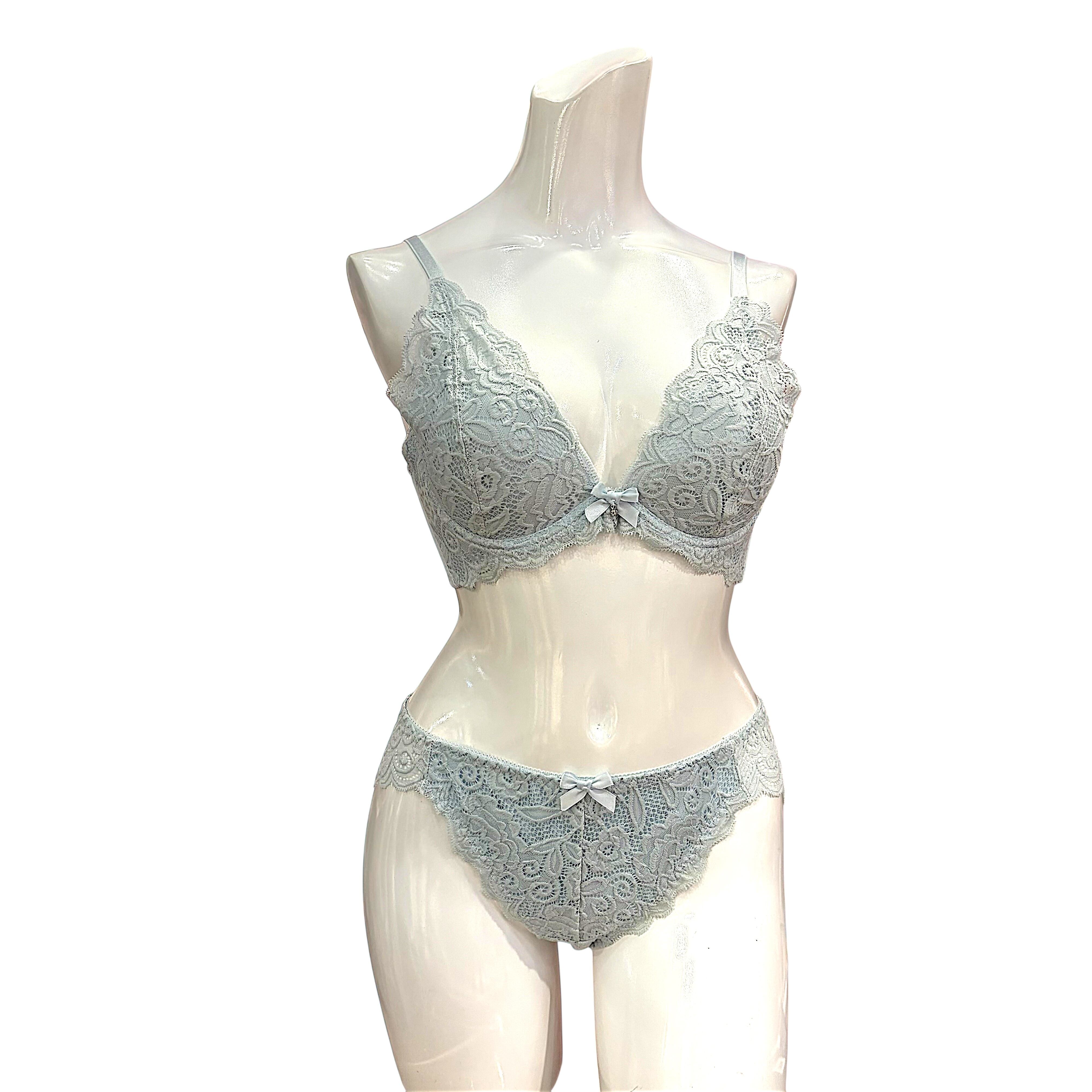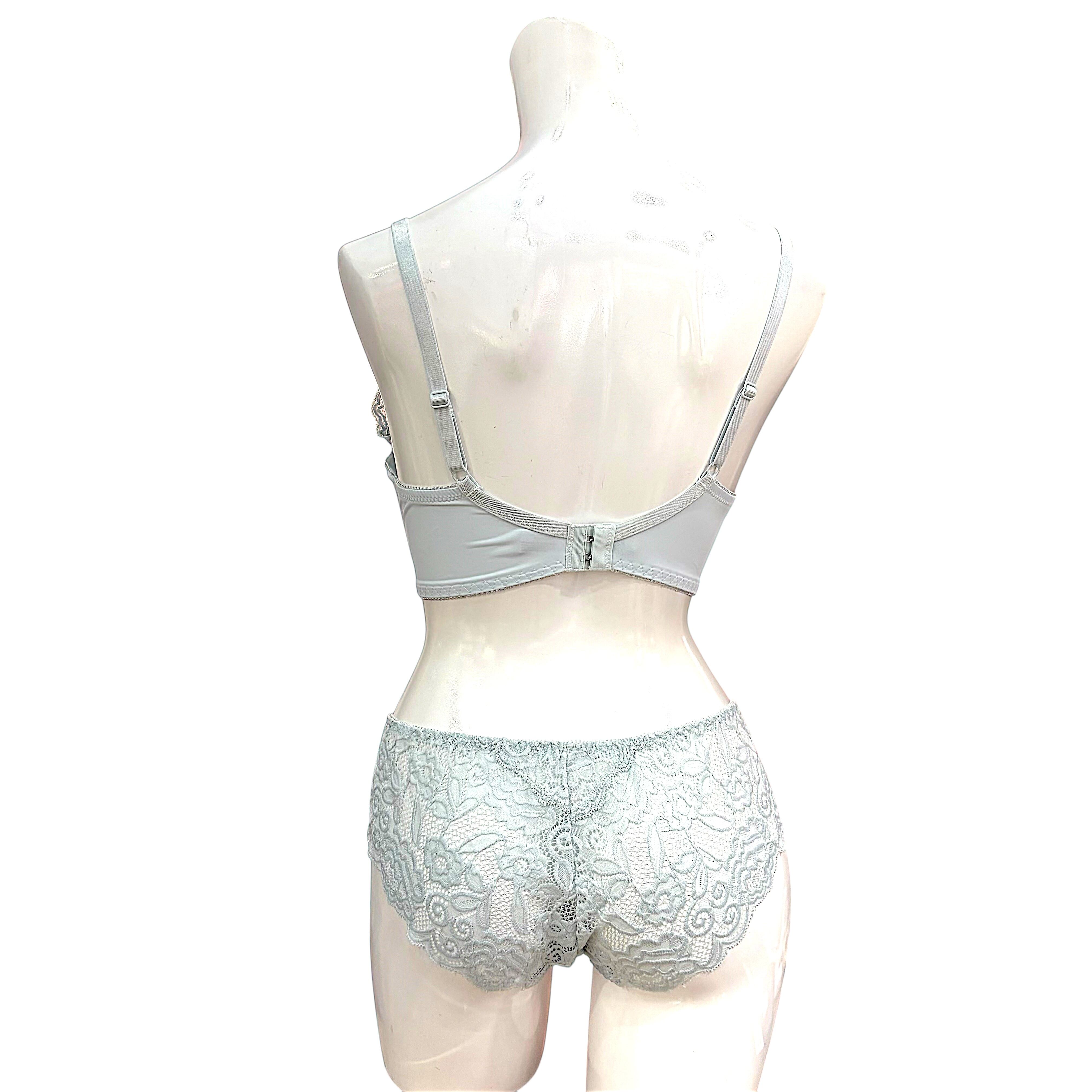 大人可愛い下着を探しているのに、派手すぎたり締め付けが強いブラは苦手…そんな悩みに応えるのが、このサックスカラーの総レースブラセットです。軽やかなレースとやわらかいフィット感で、BCDカップに自然に沿うつけ心地。ショーツは透けすぎない程よいレースで、日常使いにもぴったりです。淡いサックスは肌色を明るく見せ、洋服を選ばず使える万能カラー。普段使いはもちろん、気分を変えたい日にも活躍します。初めての方でも安心して着用でき、レビューでも「軽い・痛くない」と好評の一着です。