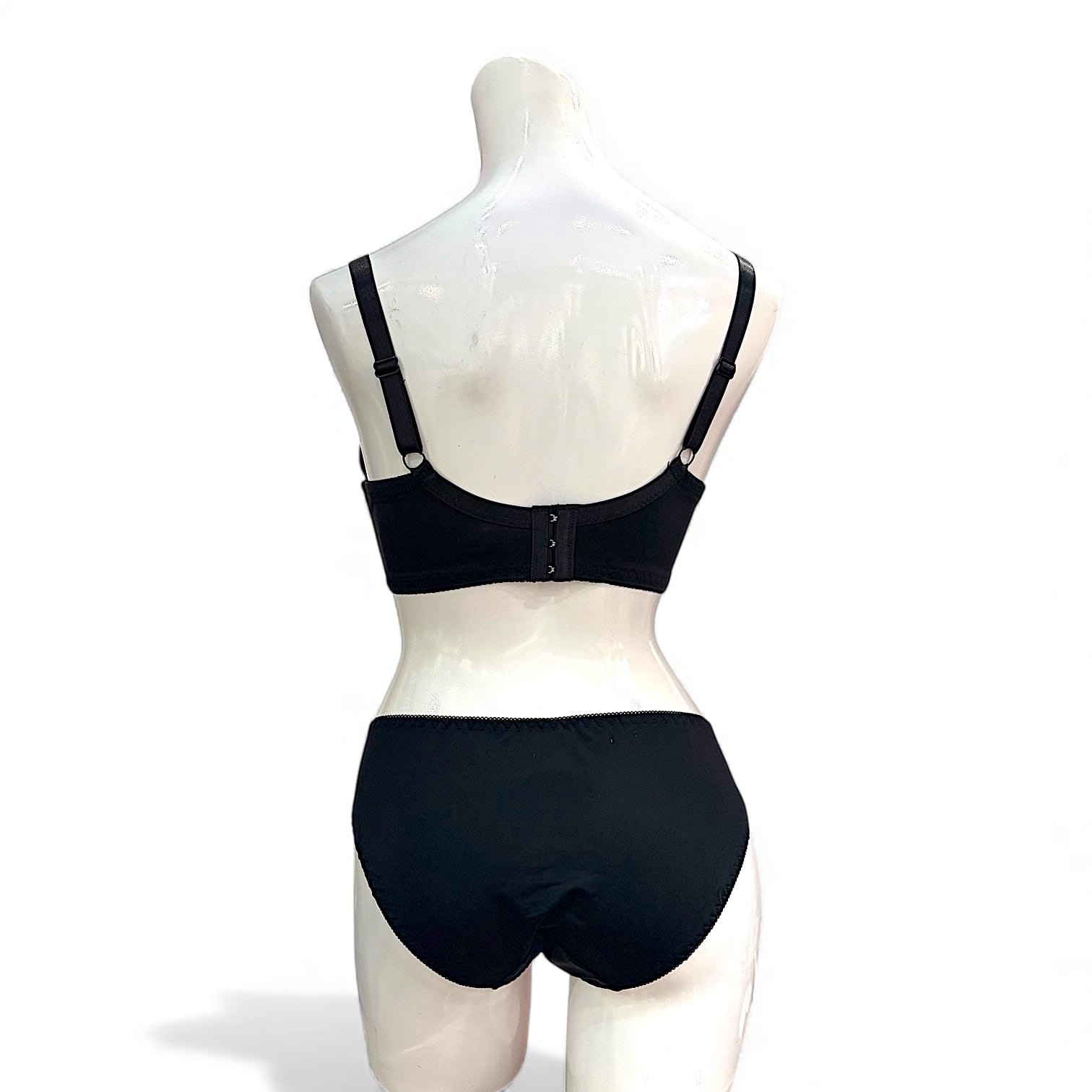 大きめバストの揺れやシルエット崩れが気になる方に向けた、EFカップ対応の安定感抜群ランジェリー。軽くしなやかなレースカップがバストにやさしくフィットし、自然な丸みをしっかりキープします。ストラップは幅広で食い込みにくく、アンダーは伸縮性のある素材で長時間でも快適。シンプルなブラックはデイリーからお出かけまで幅広く活躍します。通気性とフィット感を両立した設計でずれにくく、安心の着用感。丁寧な縫製や肌に優しい裏地も好評で、毎日使いたくなる心地よさです。