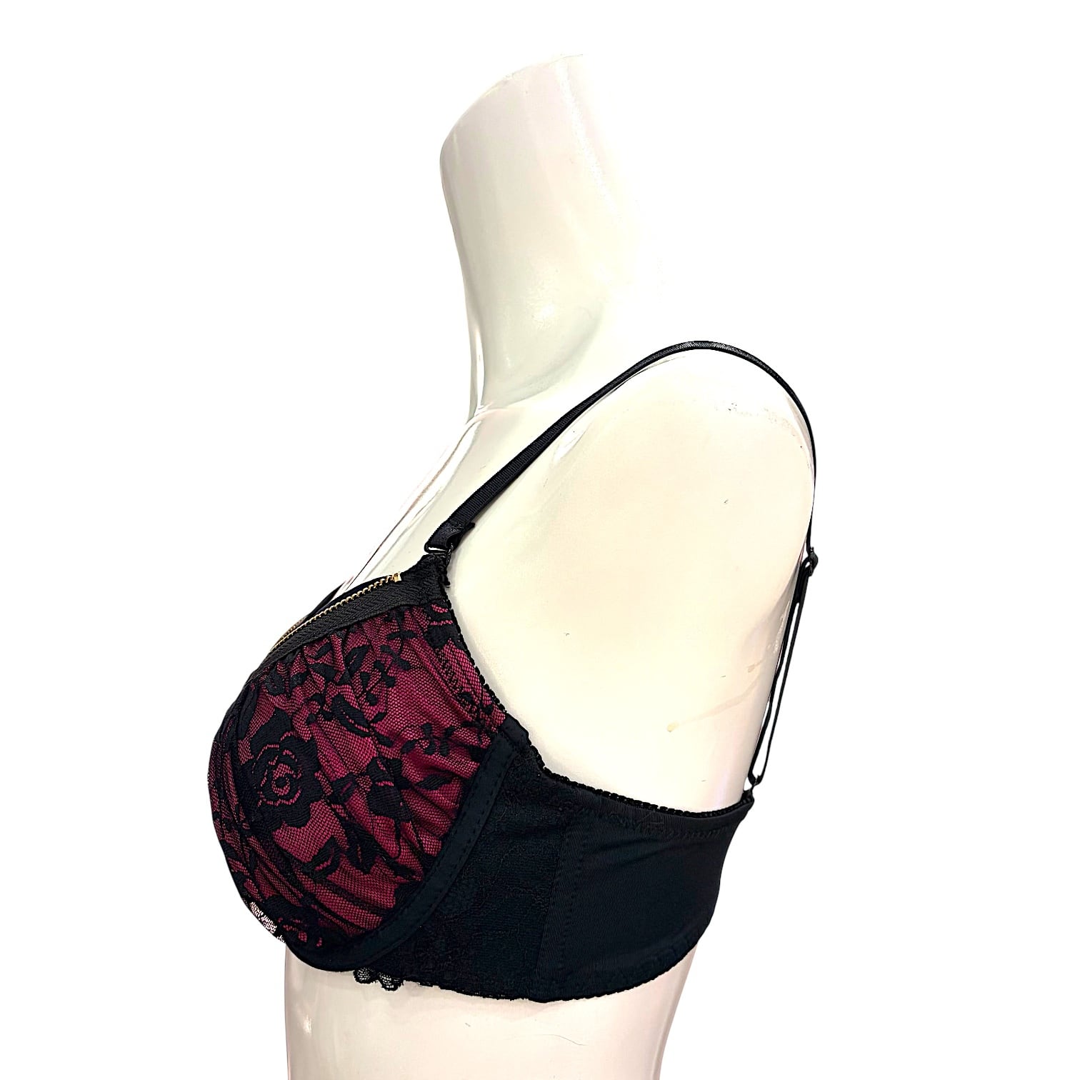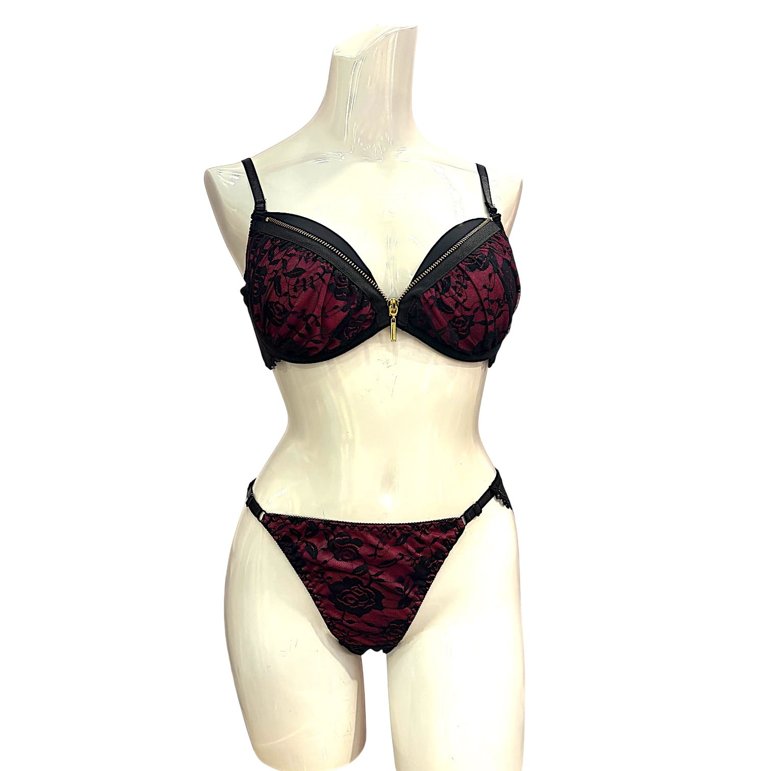 ボリュームのあるバストをしっかり支えつつ、美しいラインを魅せたいE・Fカップの方に向けたランジェリーセットです。深みのあるローズピンクにブラックレースを重ねた華やかなデザインで、胸元をすっきり見せるVラインがデコルテをより魅力的に演出します。安定感のあるカップ構造で、動いてもズレにくく快適なフィット感をキープ。ショーツは柔らかく伸びる素材で、長時間でも締め付けにくい快適設計です。デイリーにも特別な日にも使いやすく、サポート力と美しさを両立したい方から好評のアイテムです。