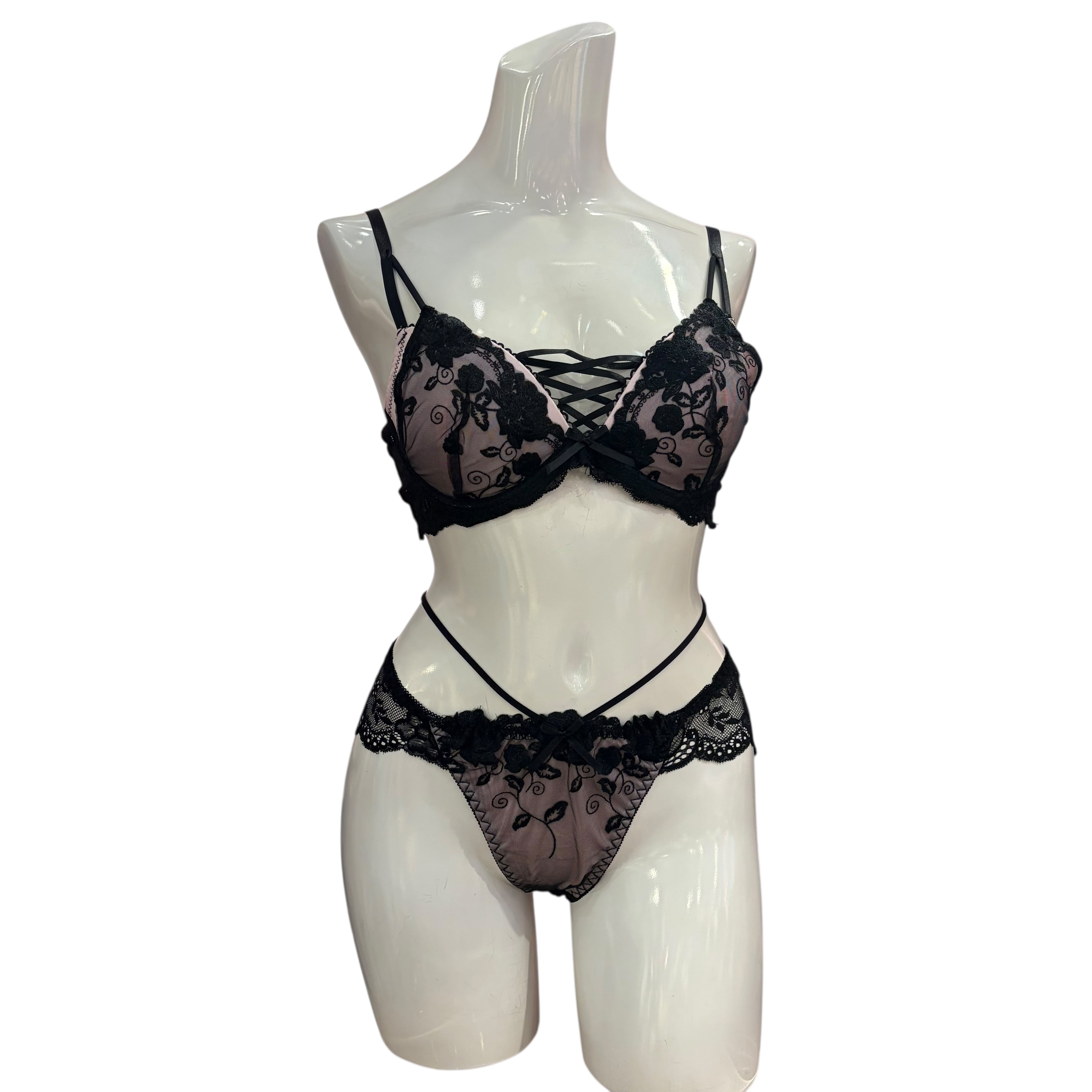 大人かわいい雰囲気を楽しみながら、メリハリのあるシルエットを魅力的に見せたい方に向けたピンクランジェリーセットです。淡いピンクにブラックレースを重ねたデザインが肌を美しく引き立て、細めのストラップがほどよい色気をプラス。軽い着け心地で動きやすく、デイリーにも特別な日にも使いやすい仕上がりです。ショーツは伸びの良い素材でフィット感が高く、締め付けを感じにくい快適設計。細部まで丁寧に仕上げられ、つけるだけで気分が上がるアイテムです。華やかさと着心地を重視する方からも好評のセットです。