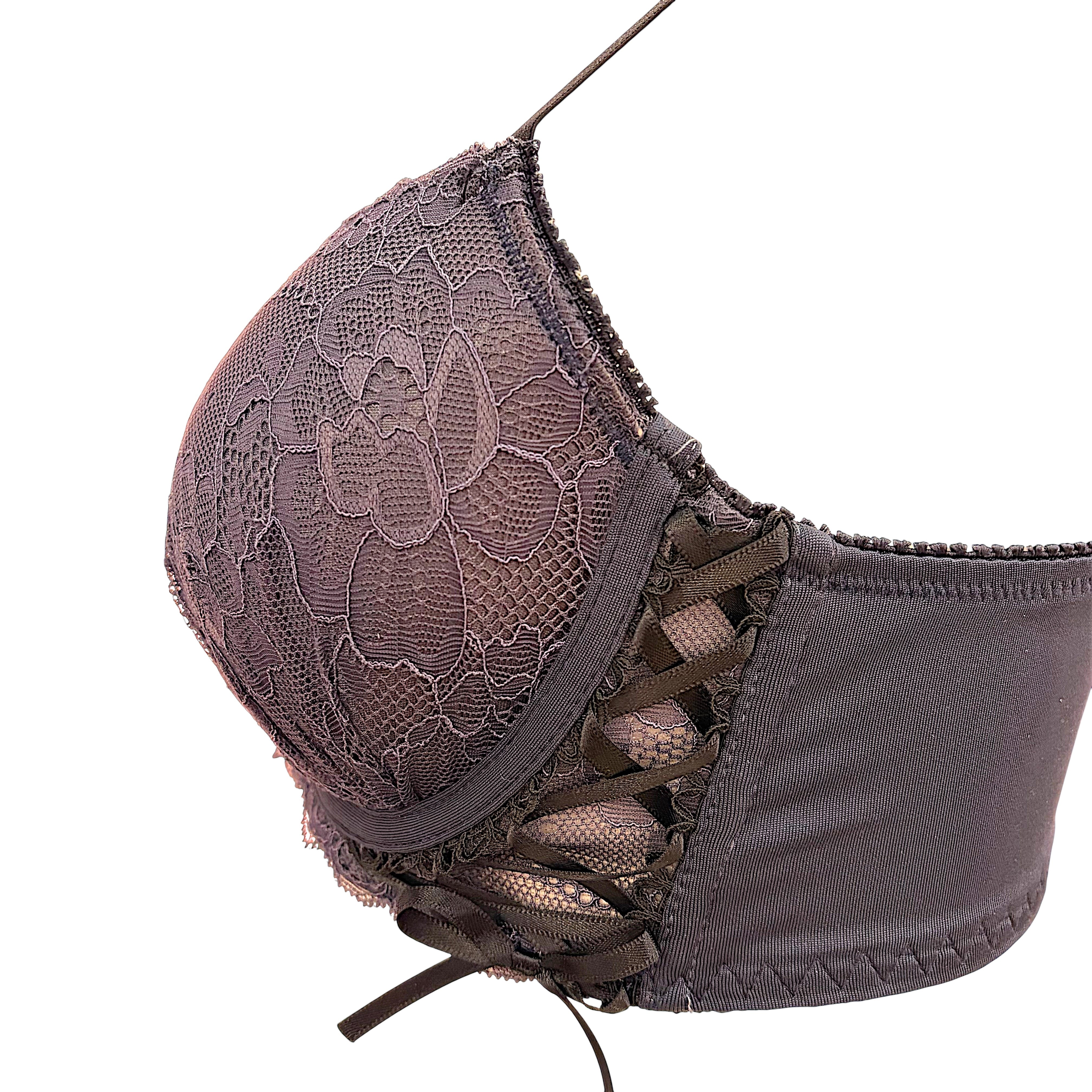 BCDcup【76610グレー】脇高補整レースブラ上下