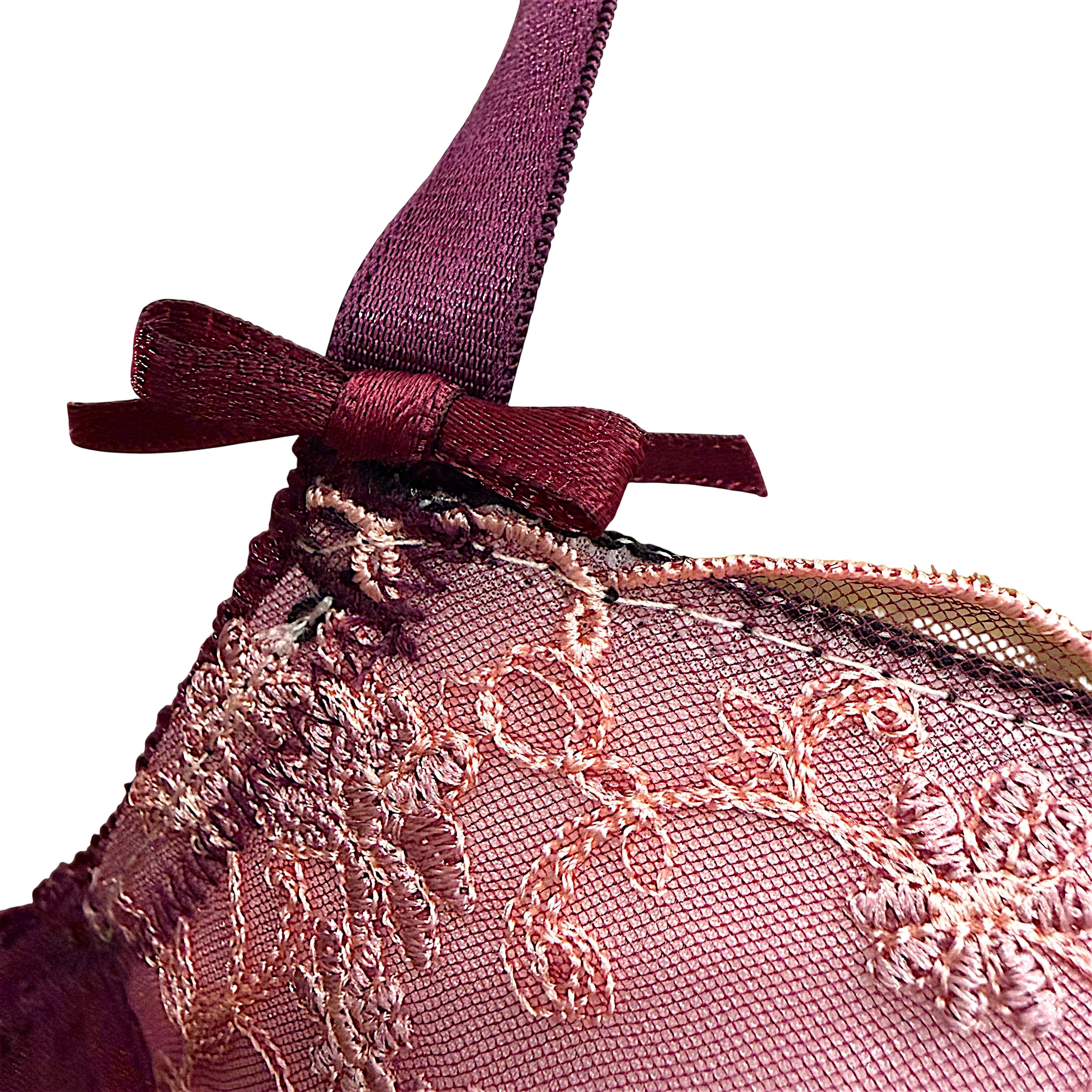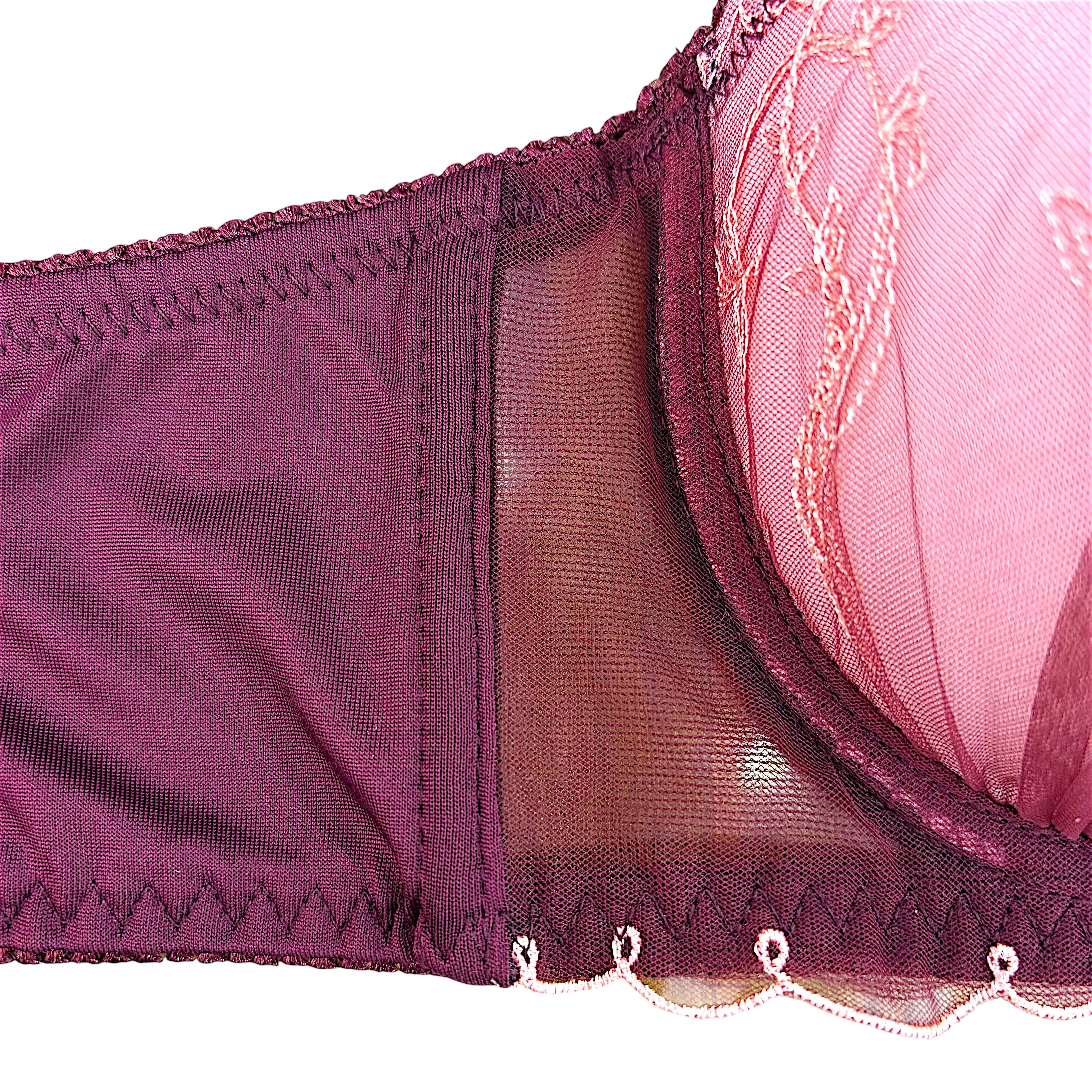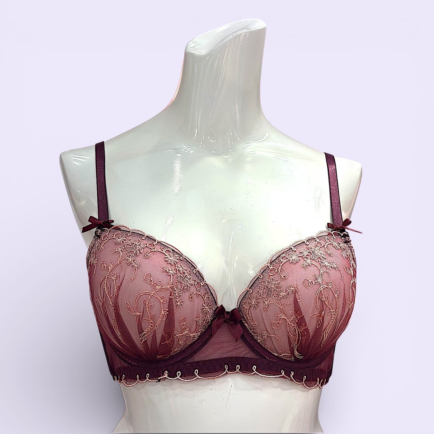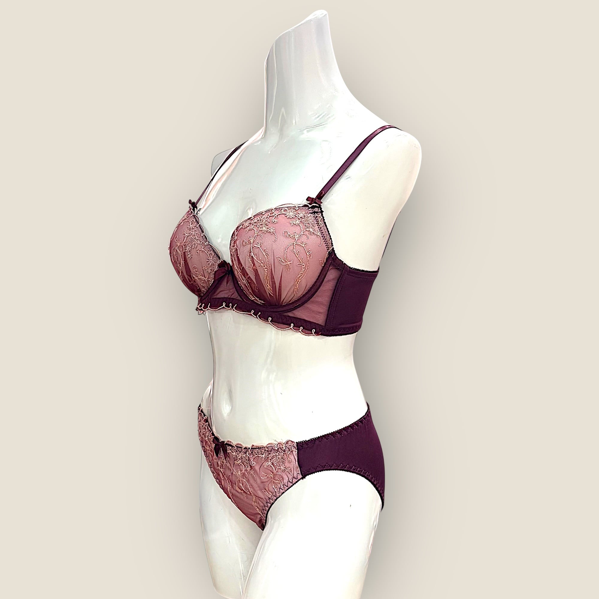 バストにボリュームがあり、ホールド感と美しいラインの両立に悩むEFカップの方に向けたワイヤーブラです。安定感のあるワイヤー構造がバストを下からしっかり支え、横流れを抑えながら丸みのある立体的なシルエットを演出。繊細な花柄レースと上品なパープルカラーが、女性らしさと落ち着いた華やかさを引き立てます。日常使いはもちろん、気分を高めたい日や特別なシーンにもおすすめ。ホールド力がありながら締め付けすぎず、長時間着用しても快適です。レビューでは「EFでも安心」「形がきれいに整う」と高評価。サイズに悩む方でも安心して選べる一枚です。