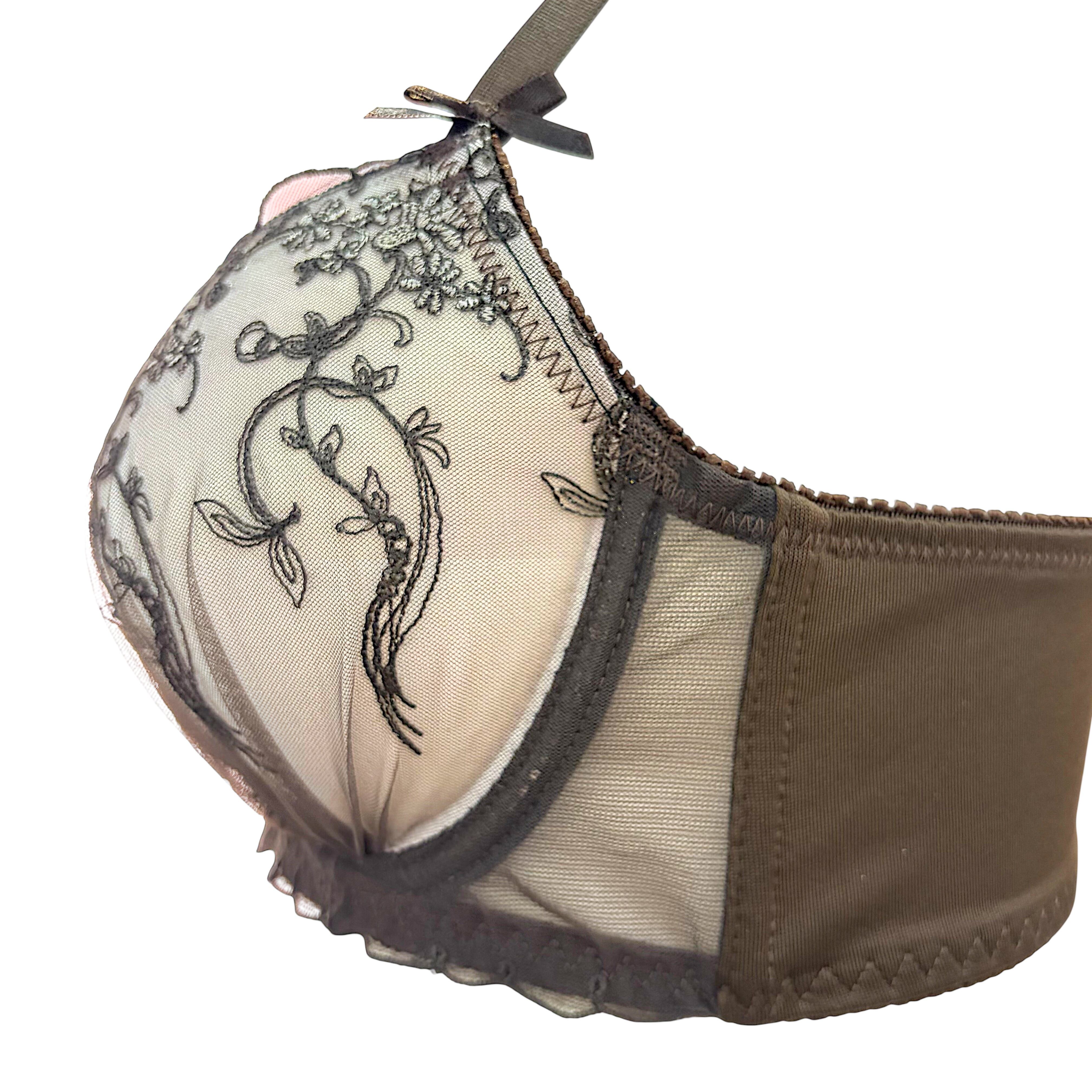 バストのボリュームがあり、サイズ選びや安定感に悩みがちなEFカップの方に向けたワイヤーブラです。しっかりとしたワイヤー構造でバストを下から支え、横流れを抑えながら美しい丸みのあるシルエットをキープ。繊細な花柄レースと落ち着いたブラウンカラーが、大人の女性らしい上品さと肌なじみの良さを演出します。日常使いはもちろん、きちんと感を出したい日にもおすすめ。ホールド力がありながら、締め付けすぎない設計で長時間の着用も快適です。レビューでは「EFでも安定する」「形がきれいに整う」と高評価。サイズに悩む方でも安心して選べる一枚です。