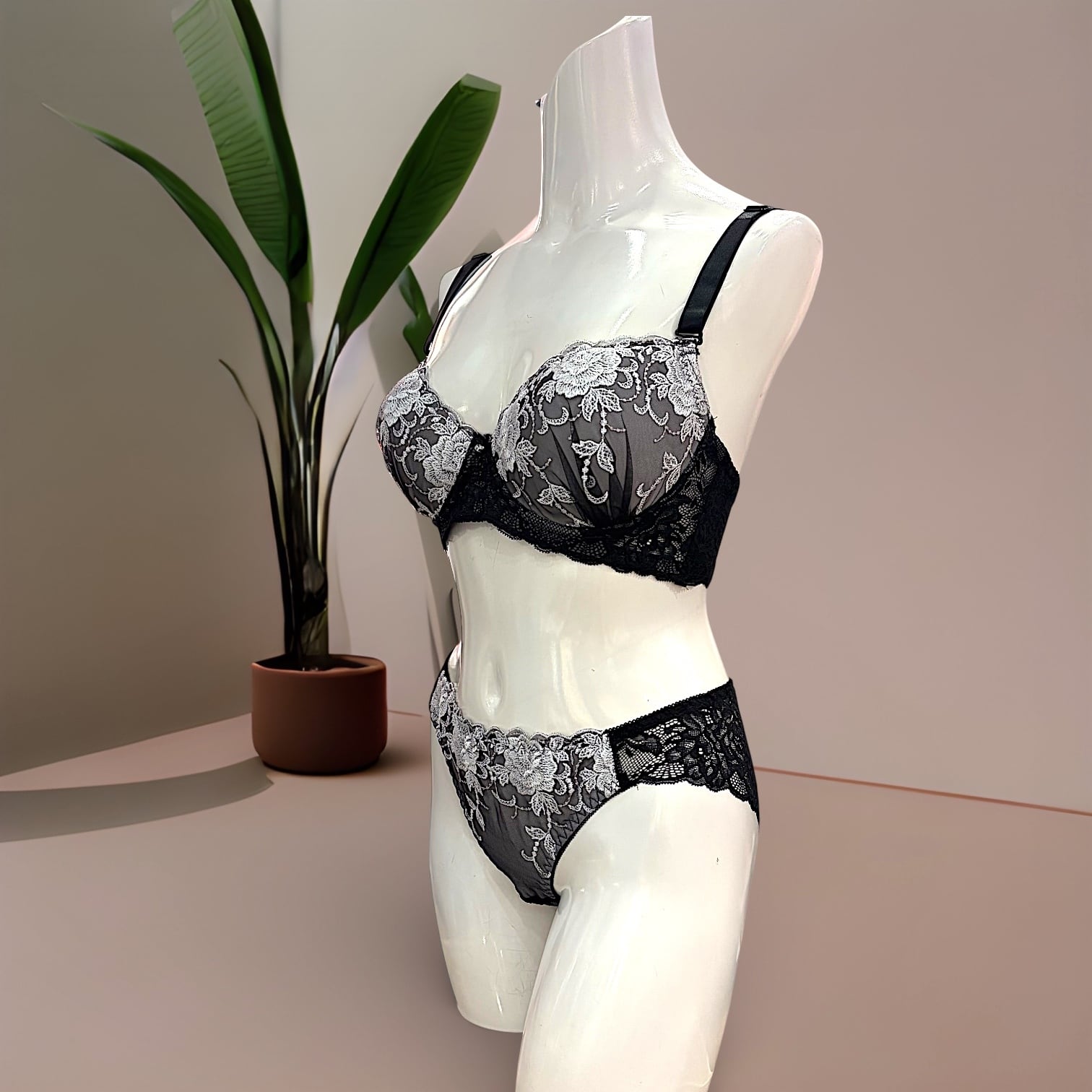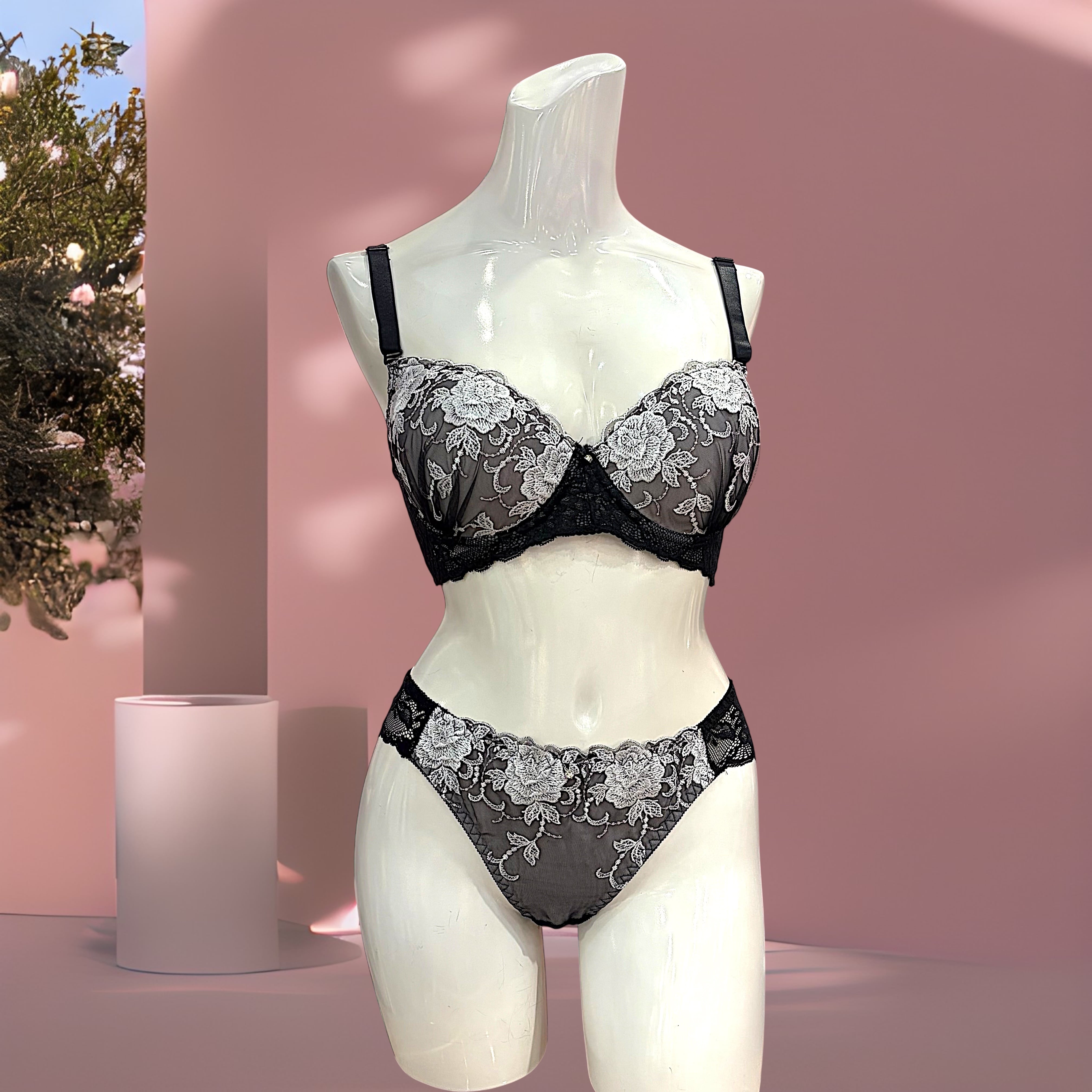 バストの重みでズレやすい、きれいに支えられないと悩むEFカップの方へ。こちらは繊細なレースを使用しながら、しっかり支えて美しいシルエットを叶えるブラショーツセットです。立体設計のブラがバストを包み込み、自然な高さと安定感のあるフィット感を実現。ショーツはヒップラインに沿うデザインで、後ろ姿まで上品に仕上げます。普段使いはもちろん、特別な日や気分を上げたいシーンにもおすすめ。肌あたりのやさしい素材で長時間着用しても安心です。「大きめバストでもきれい」「楽なのに安定する」といった声も多く、初めての方にも選ばれています。