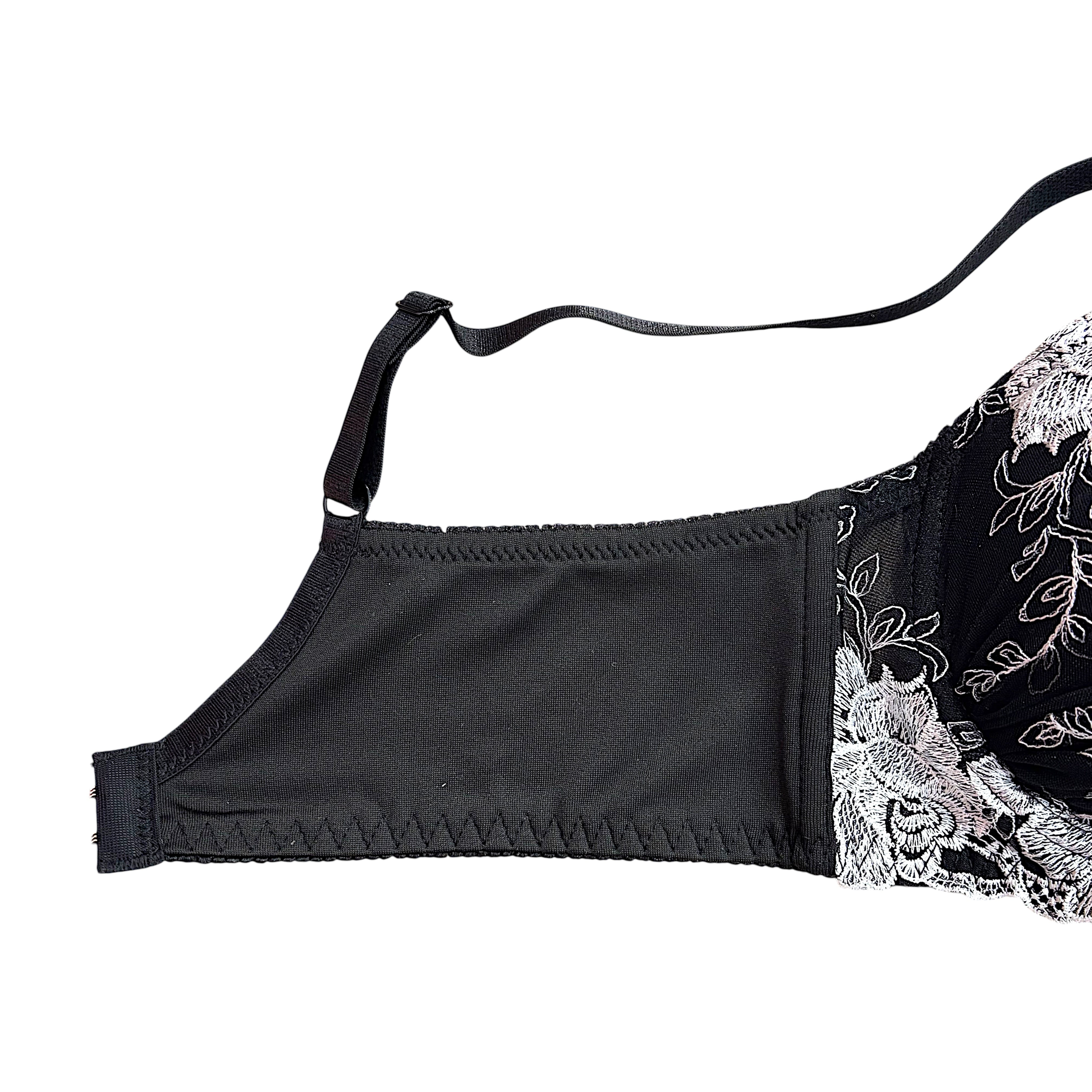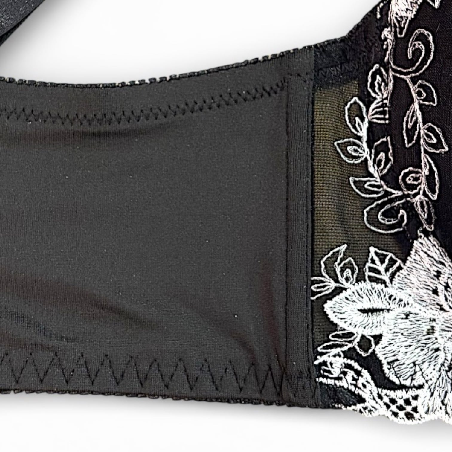 BCDcup【76410ブラック】鮮やかな刺繡ブラセットBCDカップ対応