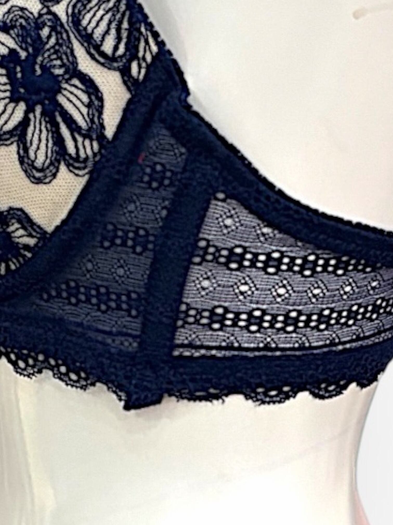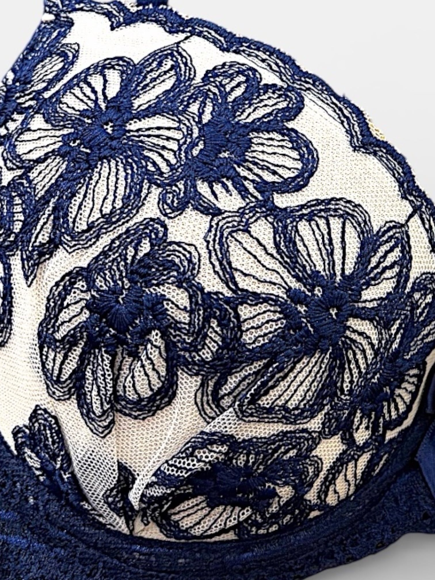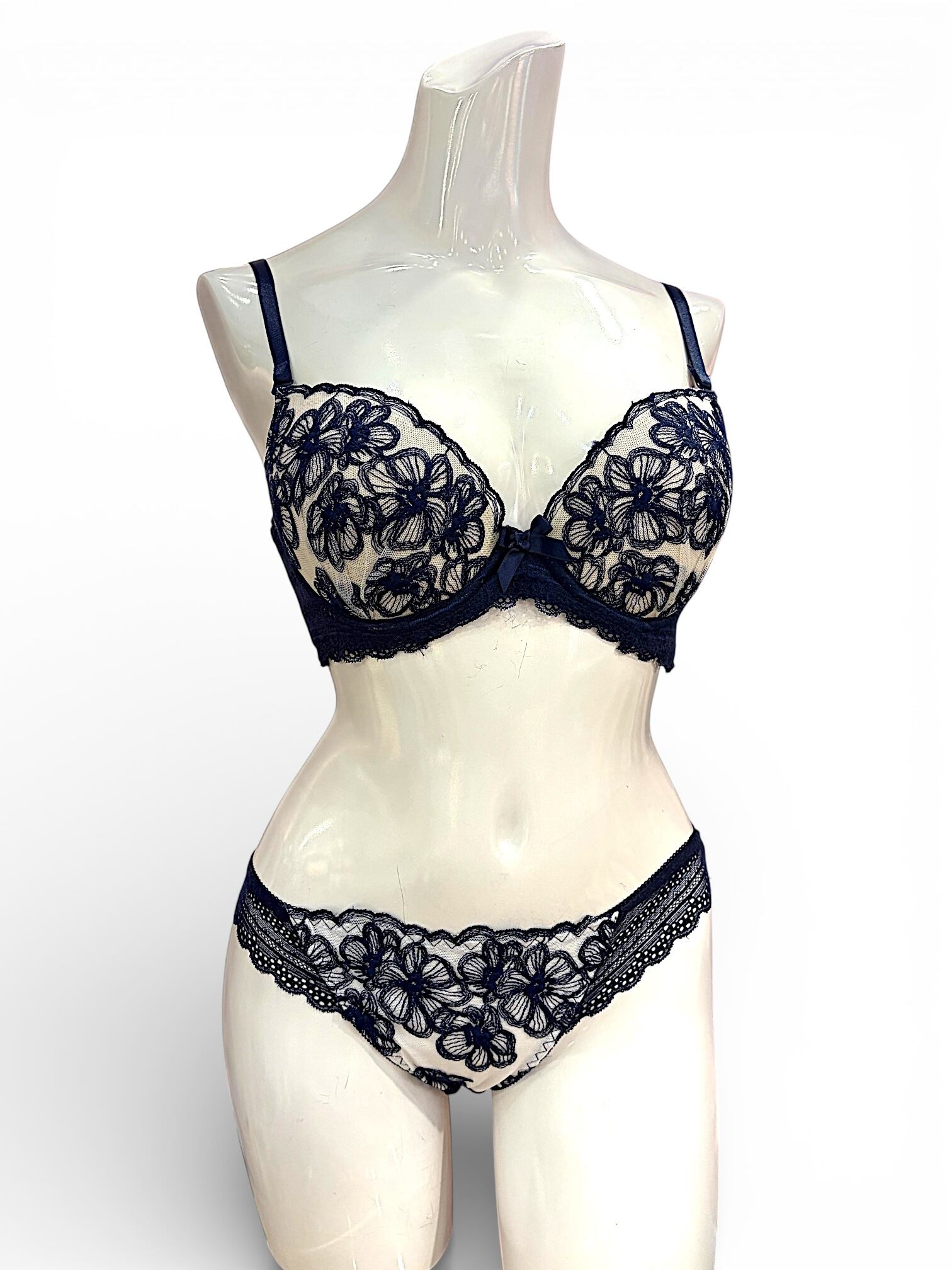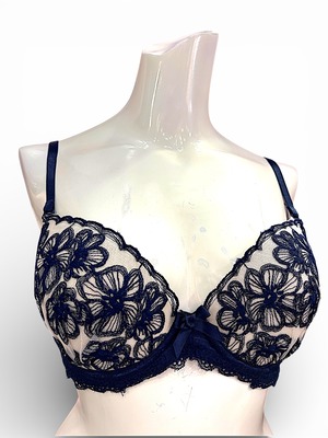 EFcup【nx062ネイビー】花柄刺繍ブラセット