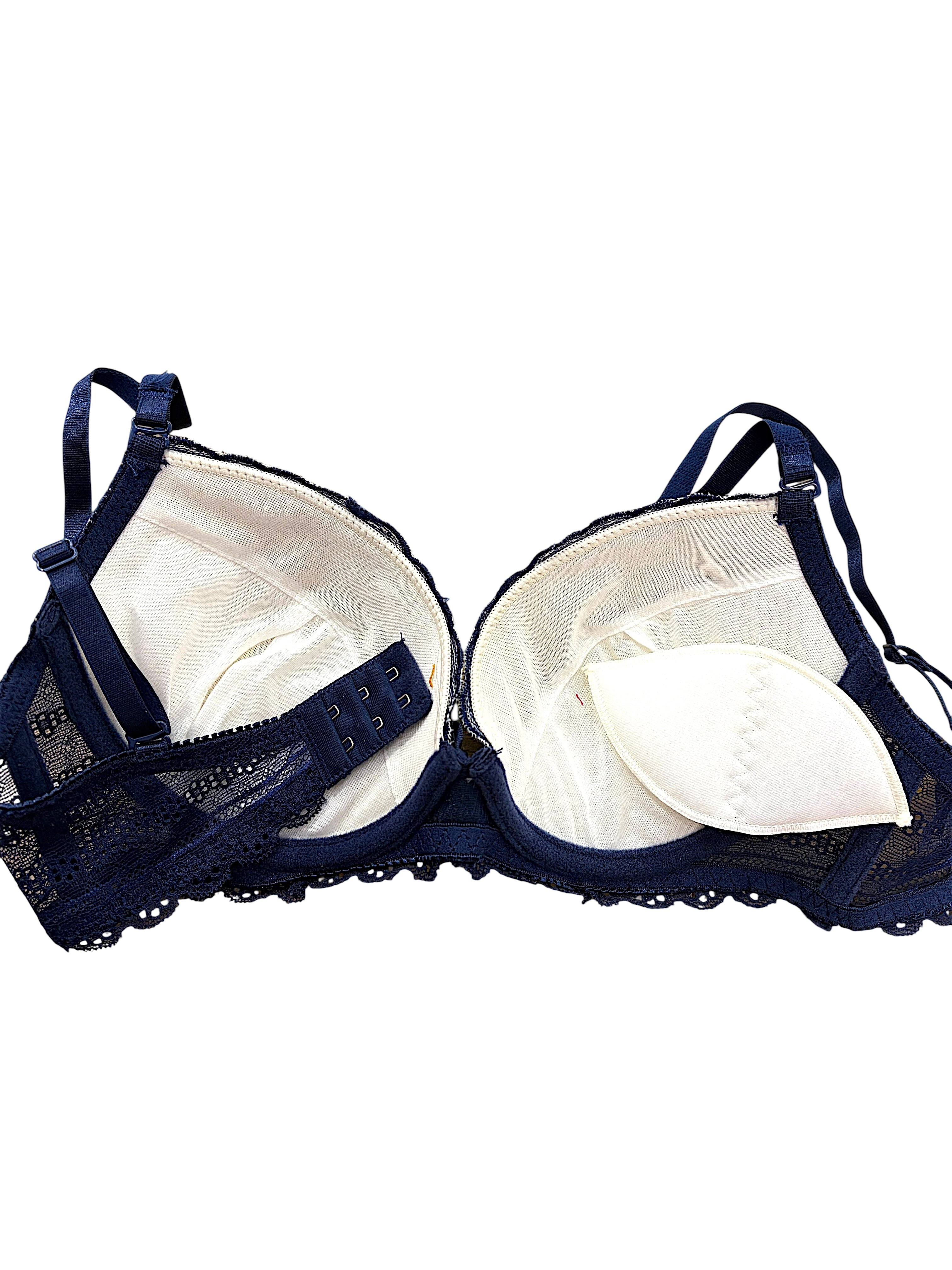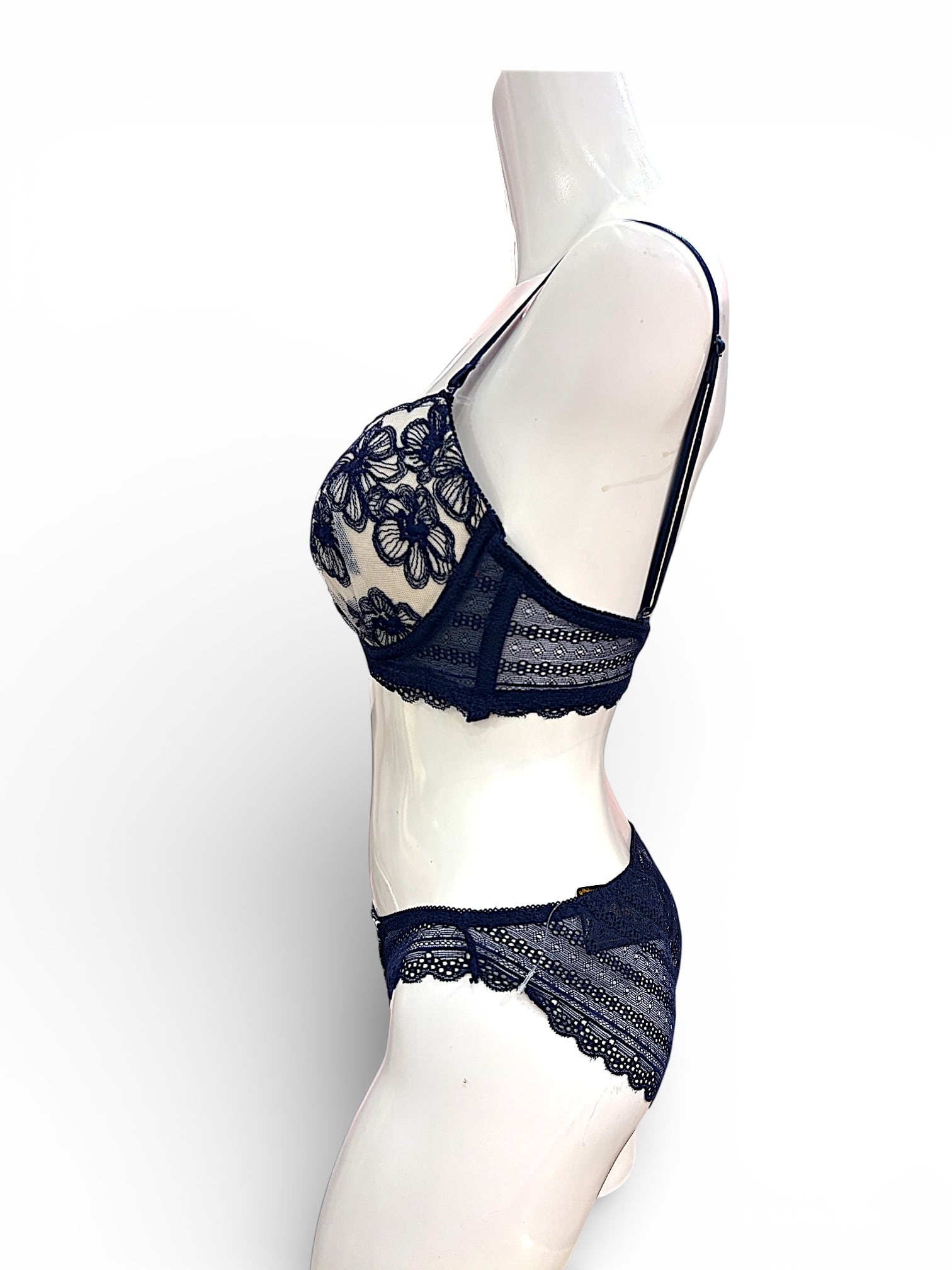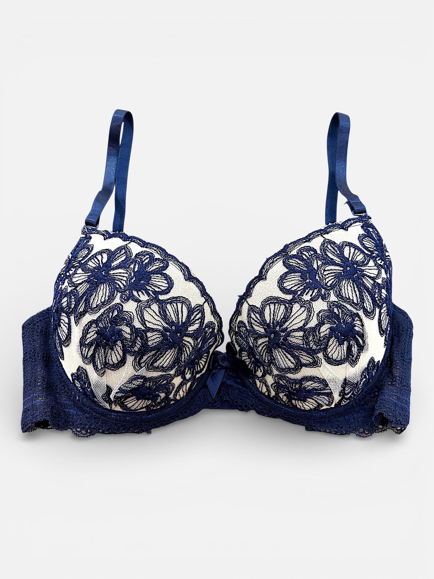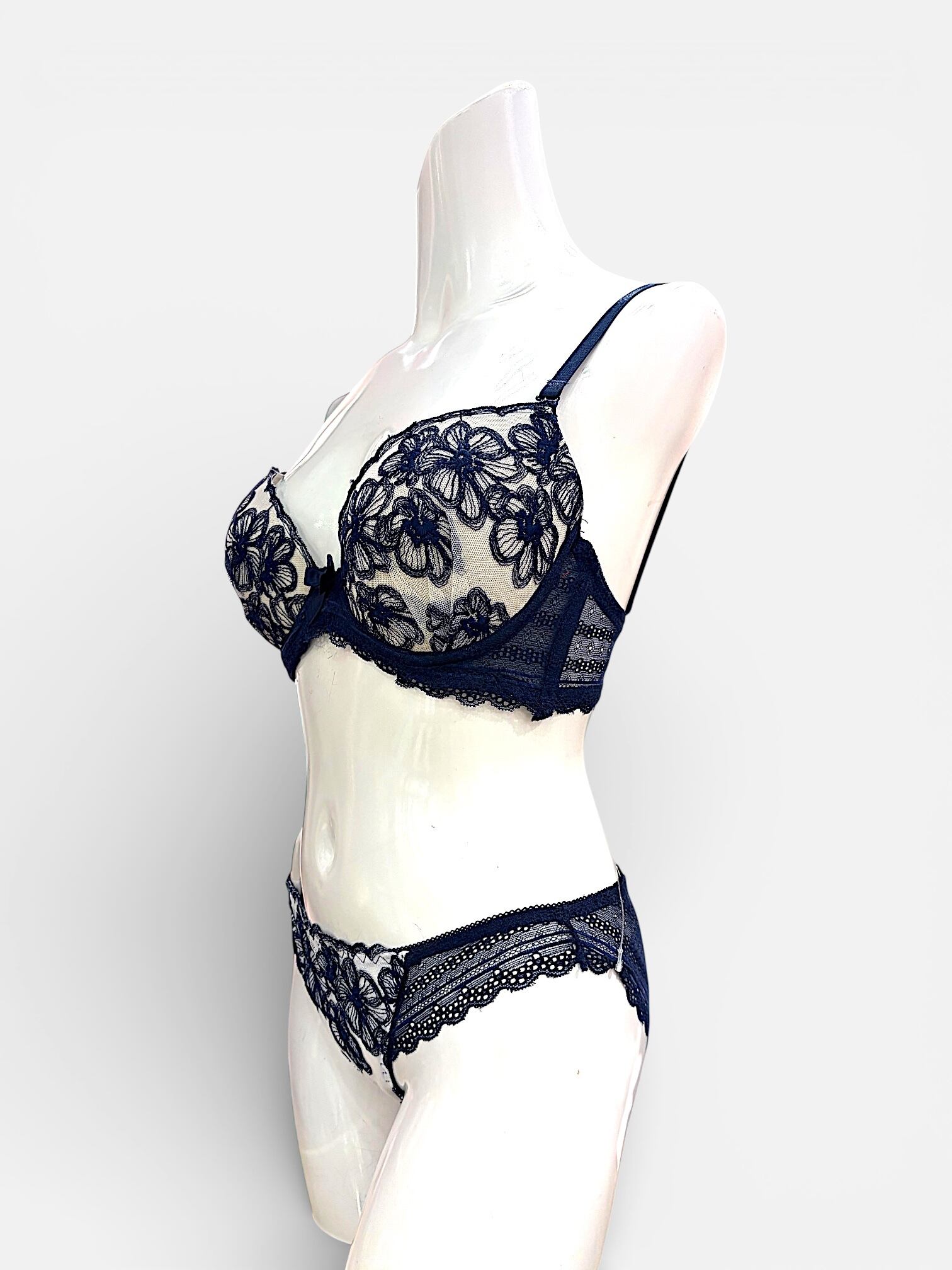 EFcup【nx062ネイビー】花柄刺繍ブラセット