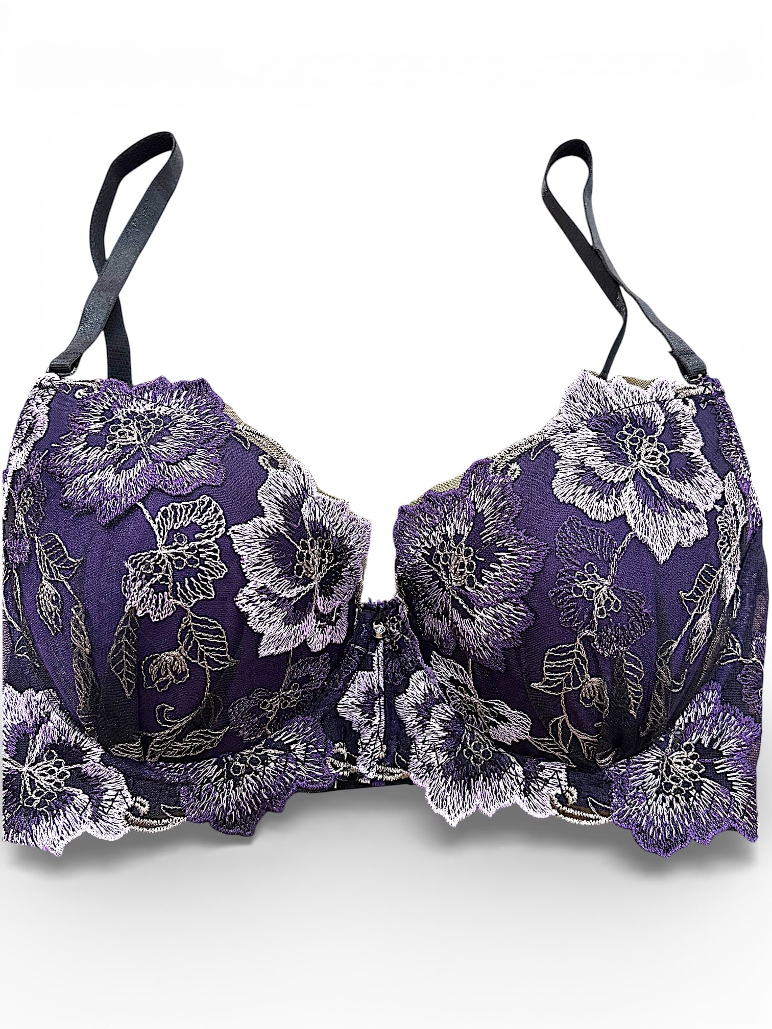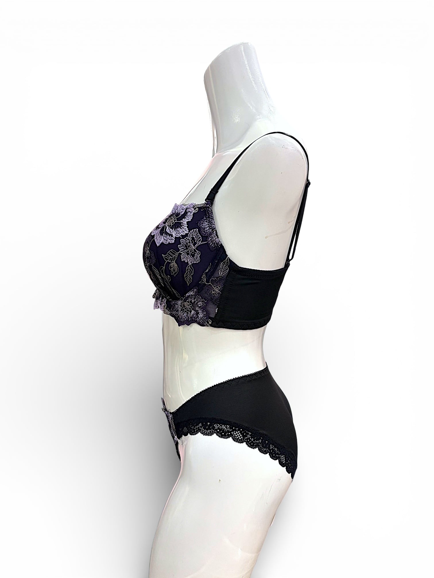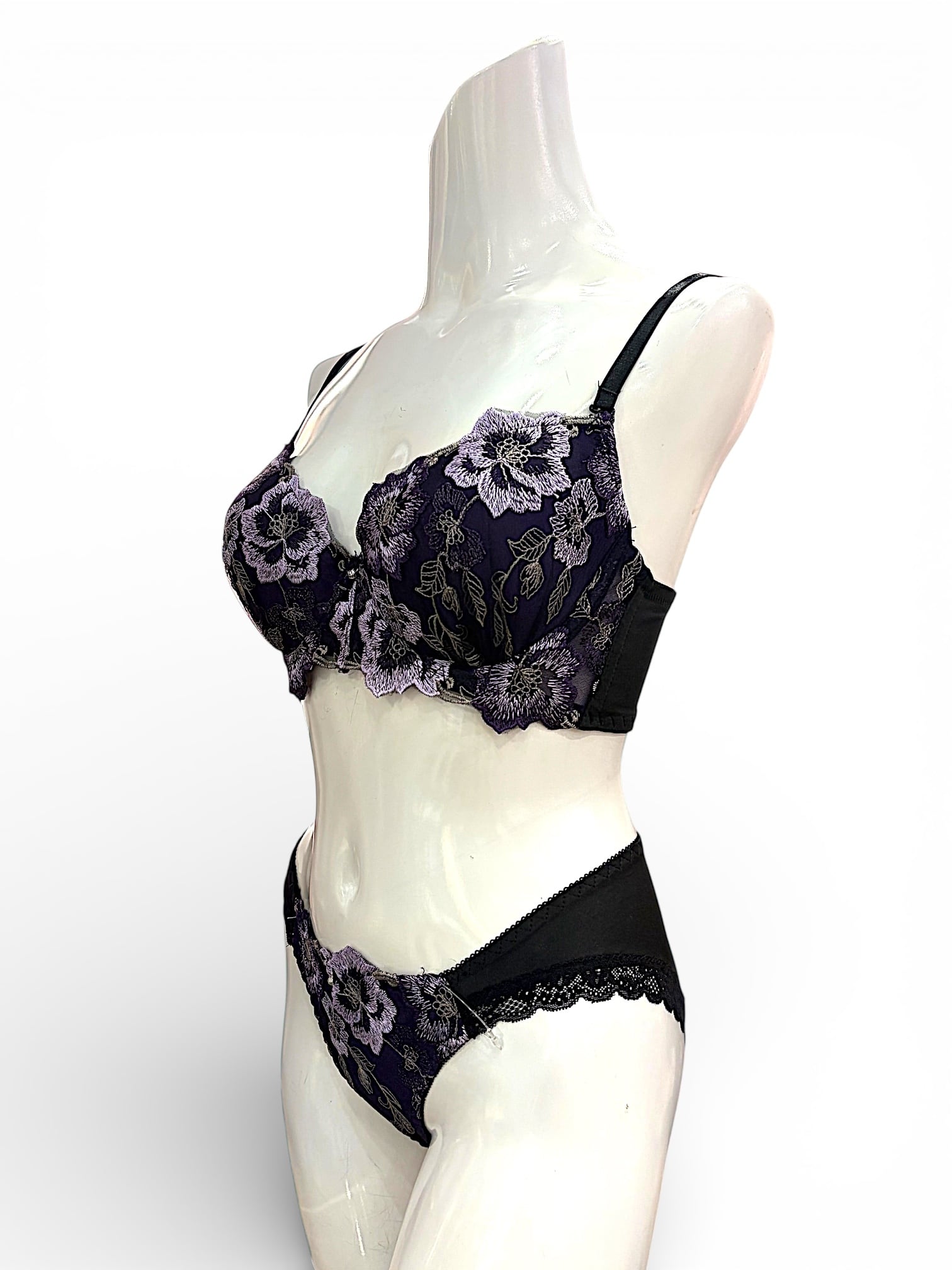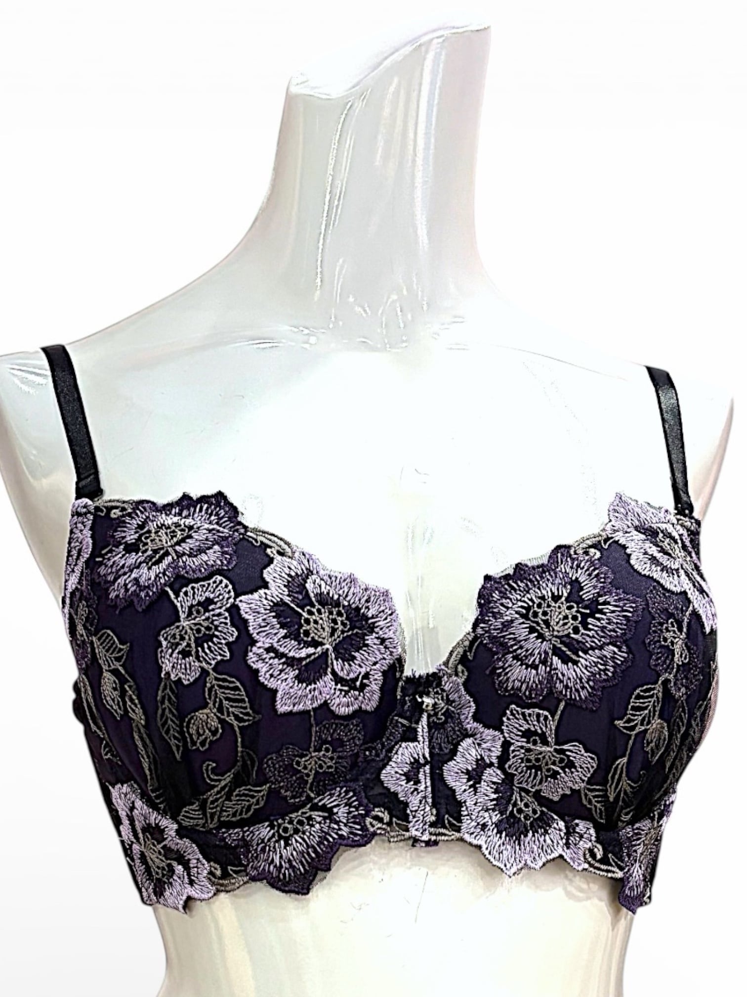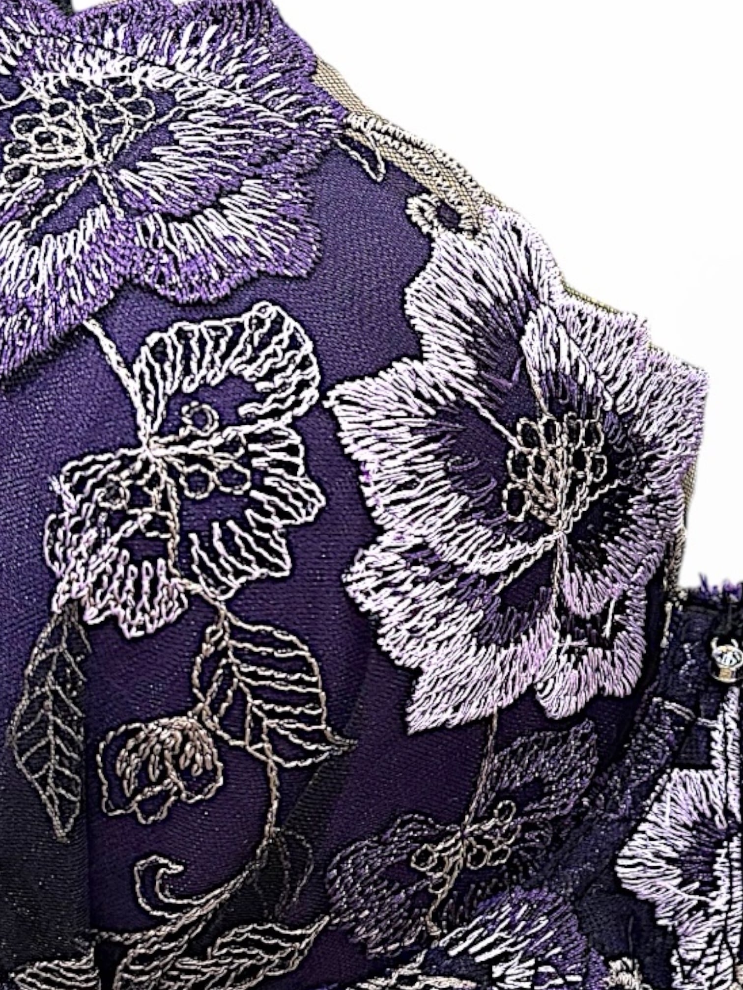 バストラインがぼやける、下着が地味で気分が上がらない…そんな悩みを抱える方におすすめのブラ&ショーツセットです。黒地に映える紫の花柄刺繍が、大人の色気と上品さを演出。立体カップ設計でバストを自然に持ち上げ、美胸シルエットを実現します。伸びの良い素材で締め付け感が少なく、長時間の着用でも快適。普段使いはもちろん、特別な日や気分を変えたいシーンにもぴったりです。レースの肌当たりもやさしく、チクチクしにくいのが嬉しいポイント。購入者からは「着け心地が良い」「刺繍が写真以上にきれい」と好評で、安心して選べる一着です。