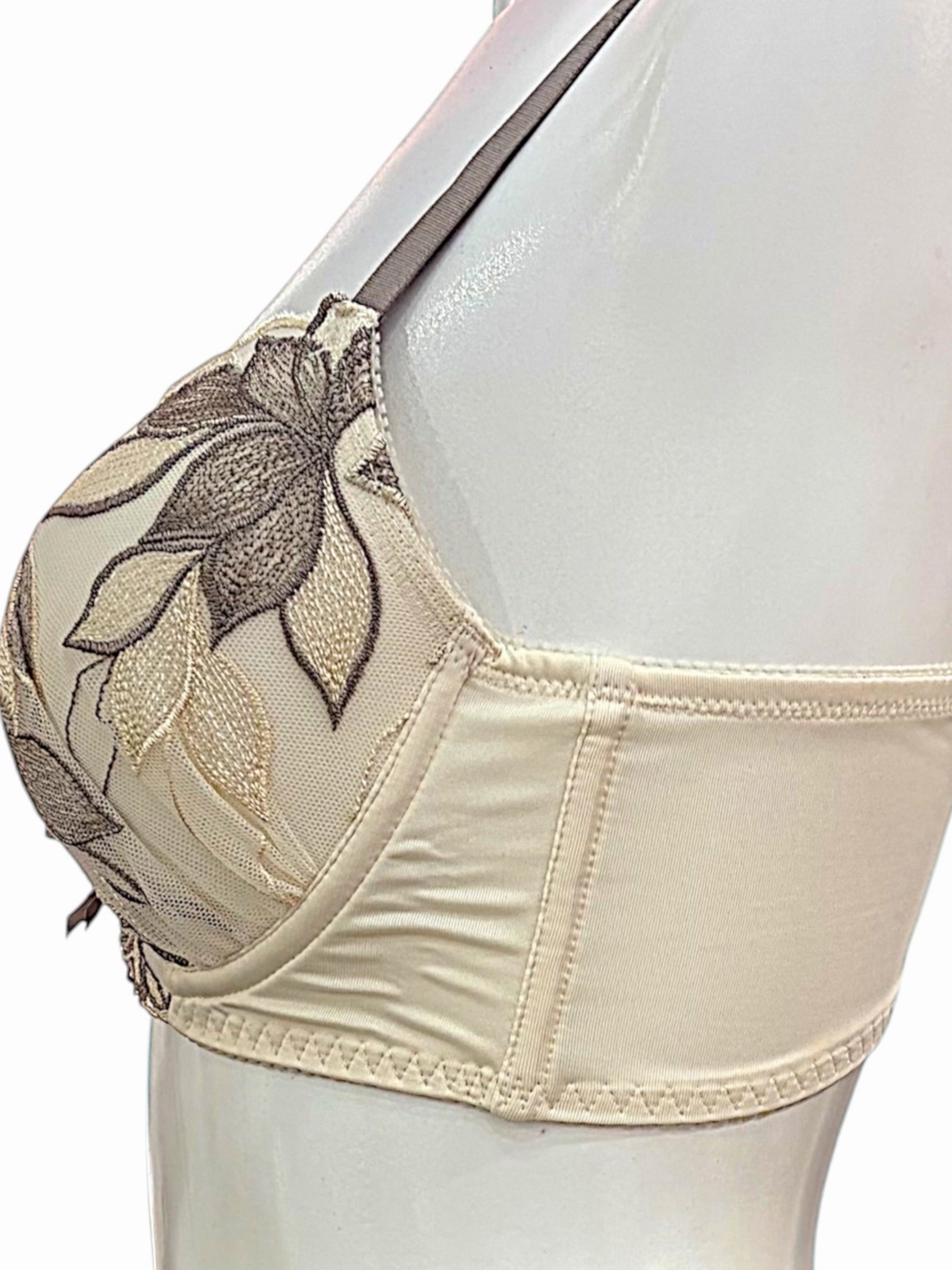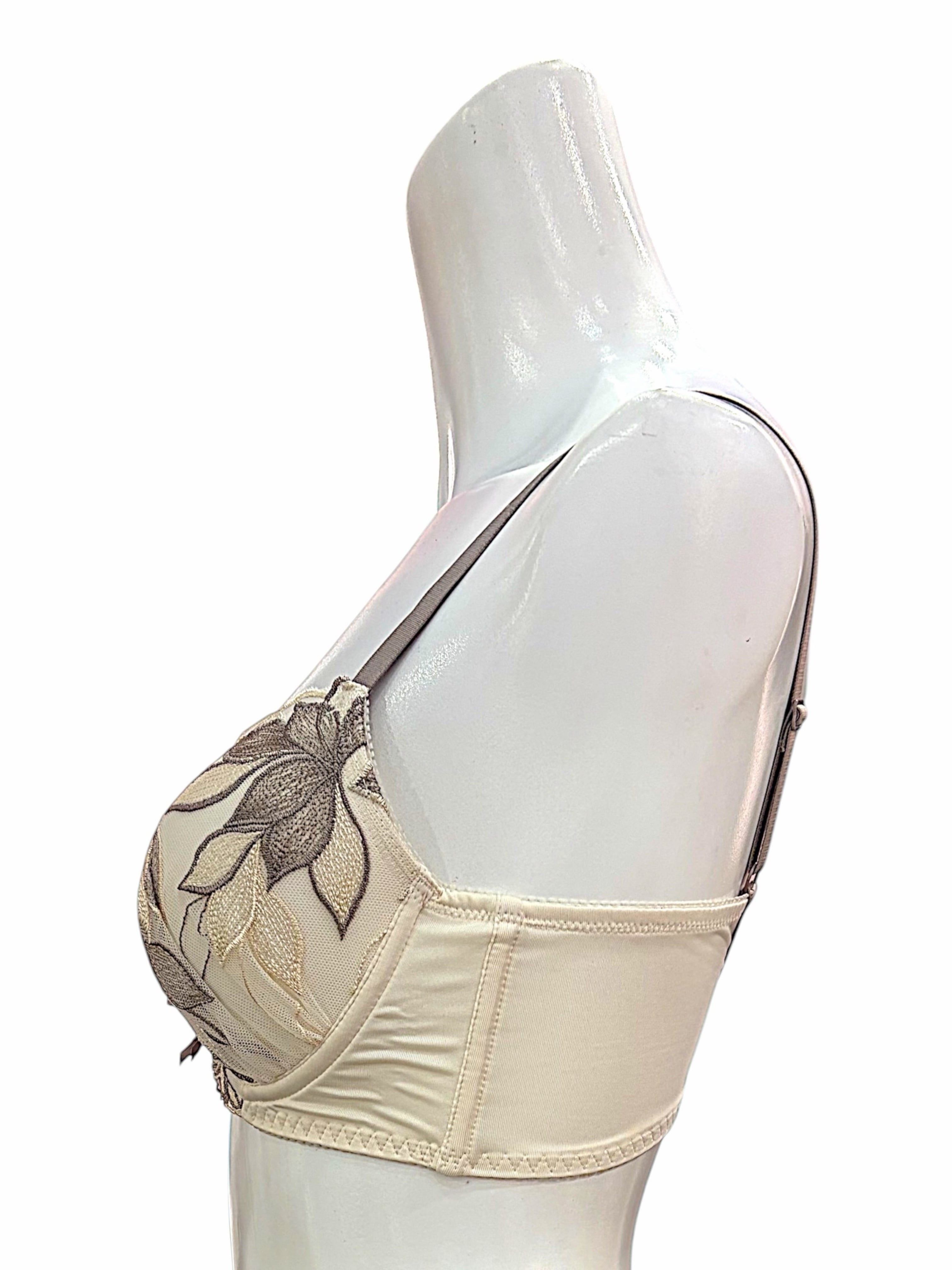 BCDカップ【701000アイボリー】脇高刺繍レースブラセット