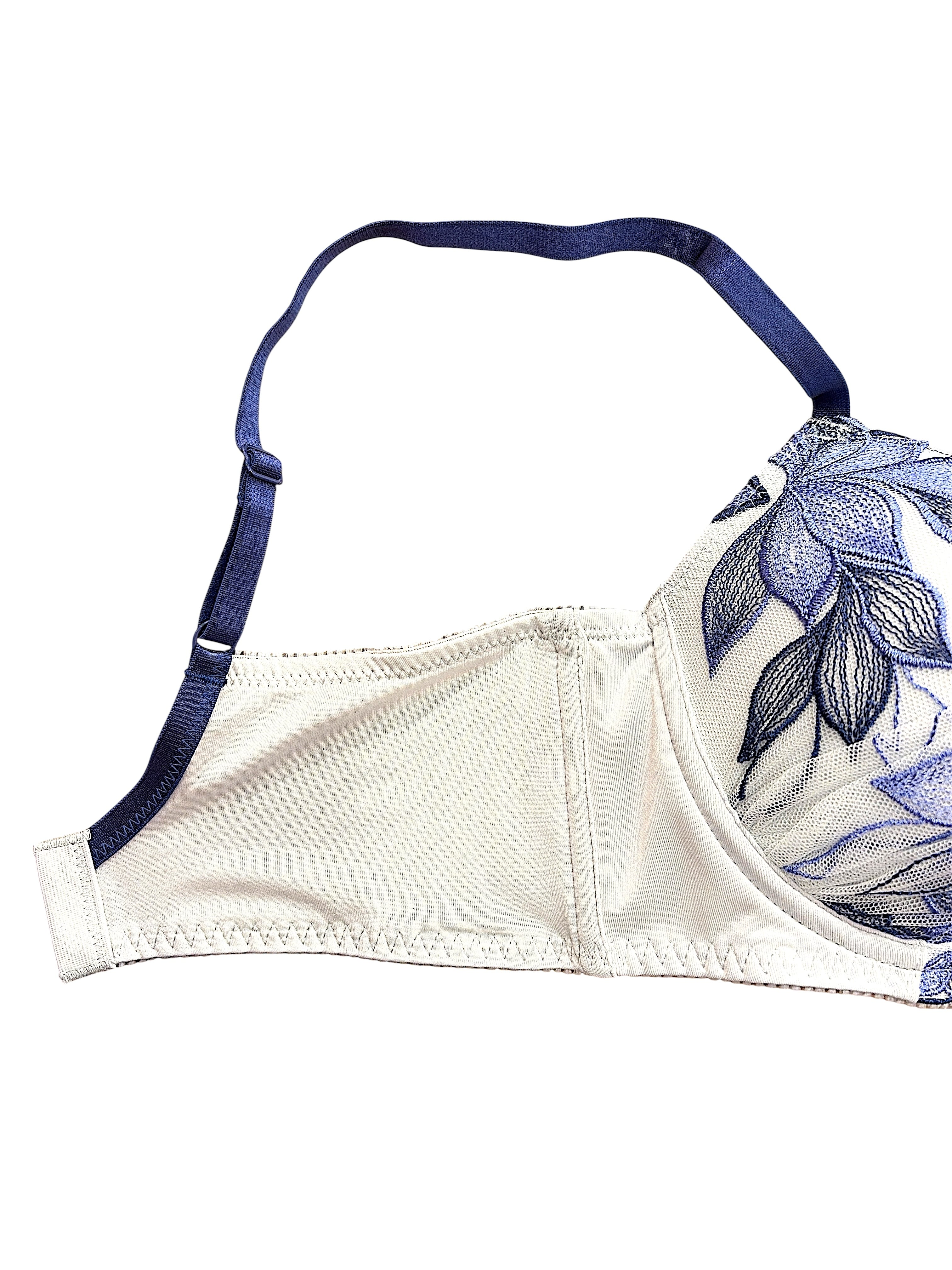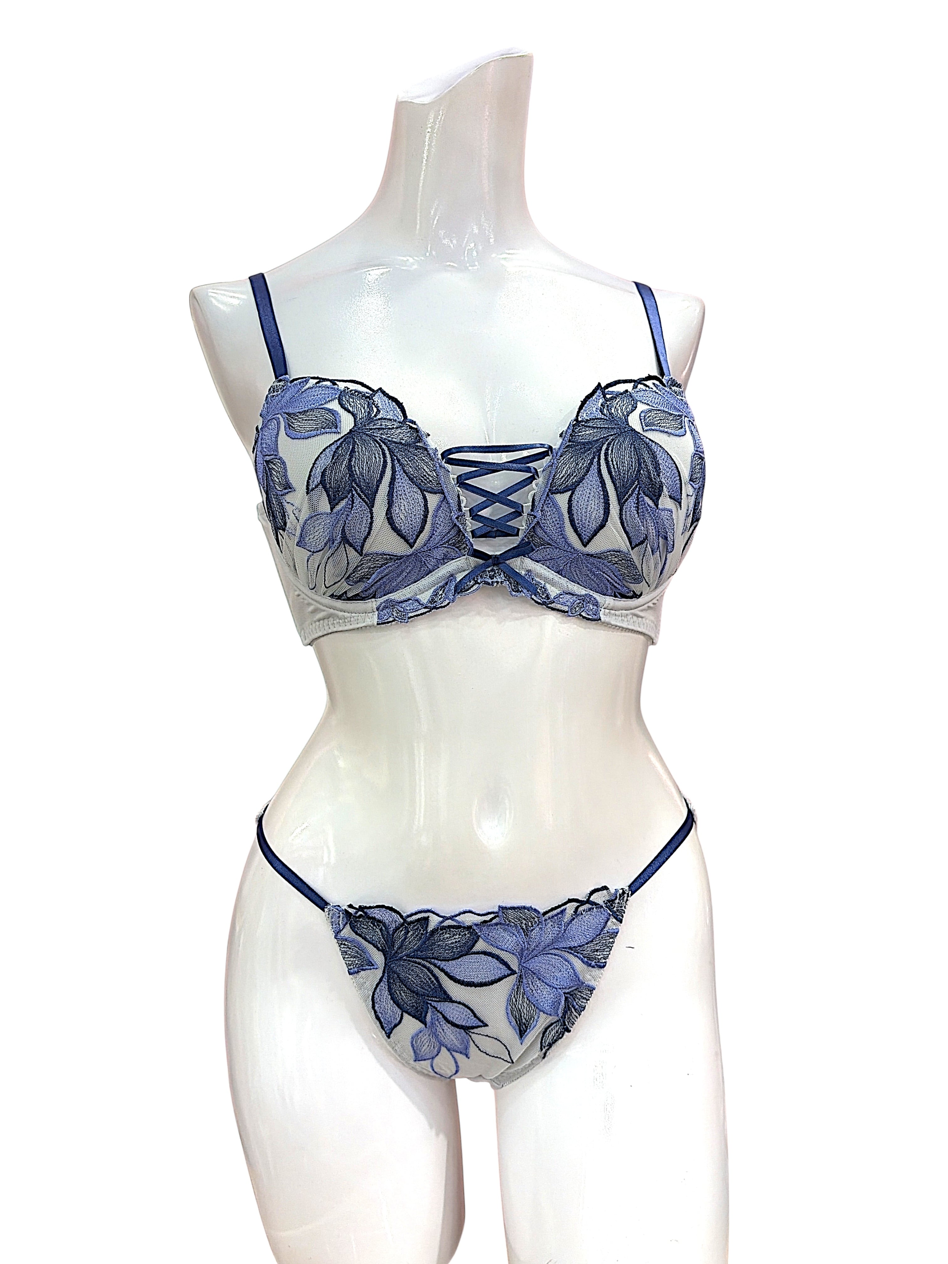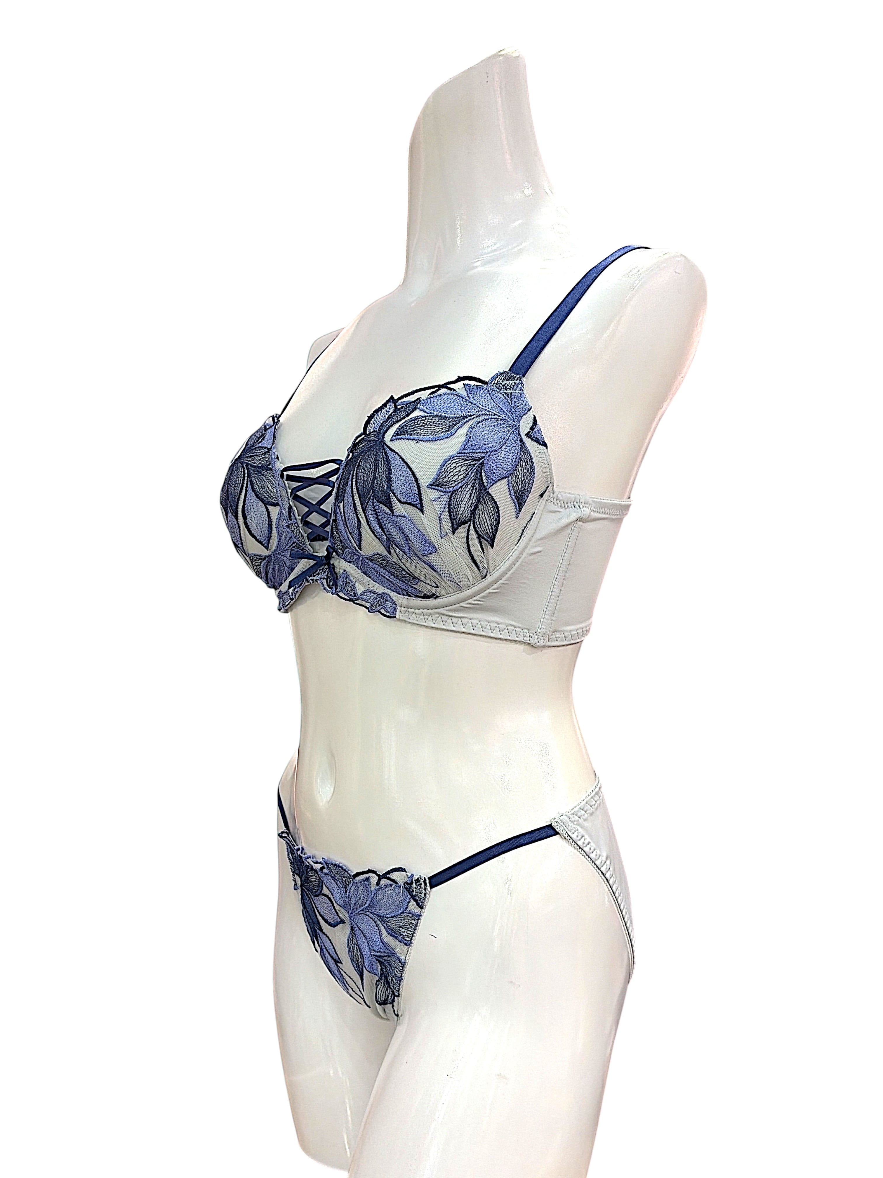 EFカップ【701001ブルー】脇高刺繍レースブラセット