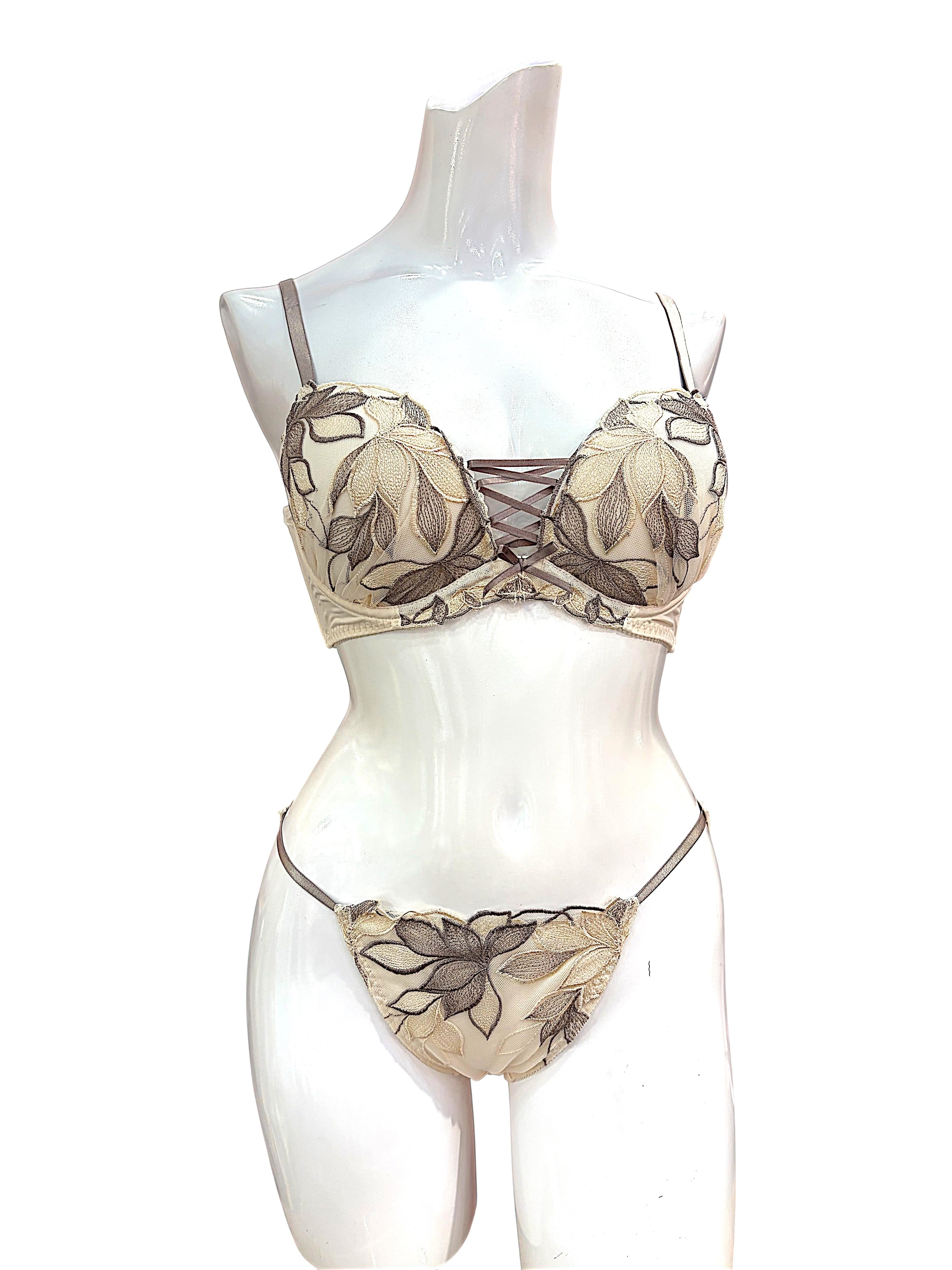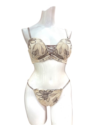 バストのボリューム不足や下垂、脇への横流れが気になる方へ。繊細な花柄レースを贅沢に使用したブラセットは、立体カップと脇高設計でやさしく寄せて整え、美しいバストラインと自然な谷間を演出します。肌なじみのよい上品カラーで、アウターに響きにくいのも魅力。デイリー使いはもちろん、特別な日のおしゃれインナーとしても活躍します。締めつけ感を抑えた快適な着け心地と安定感が好評で、長時間でも安心して着用できるとレビューでも評価の高いランジェリーです。