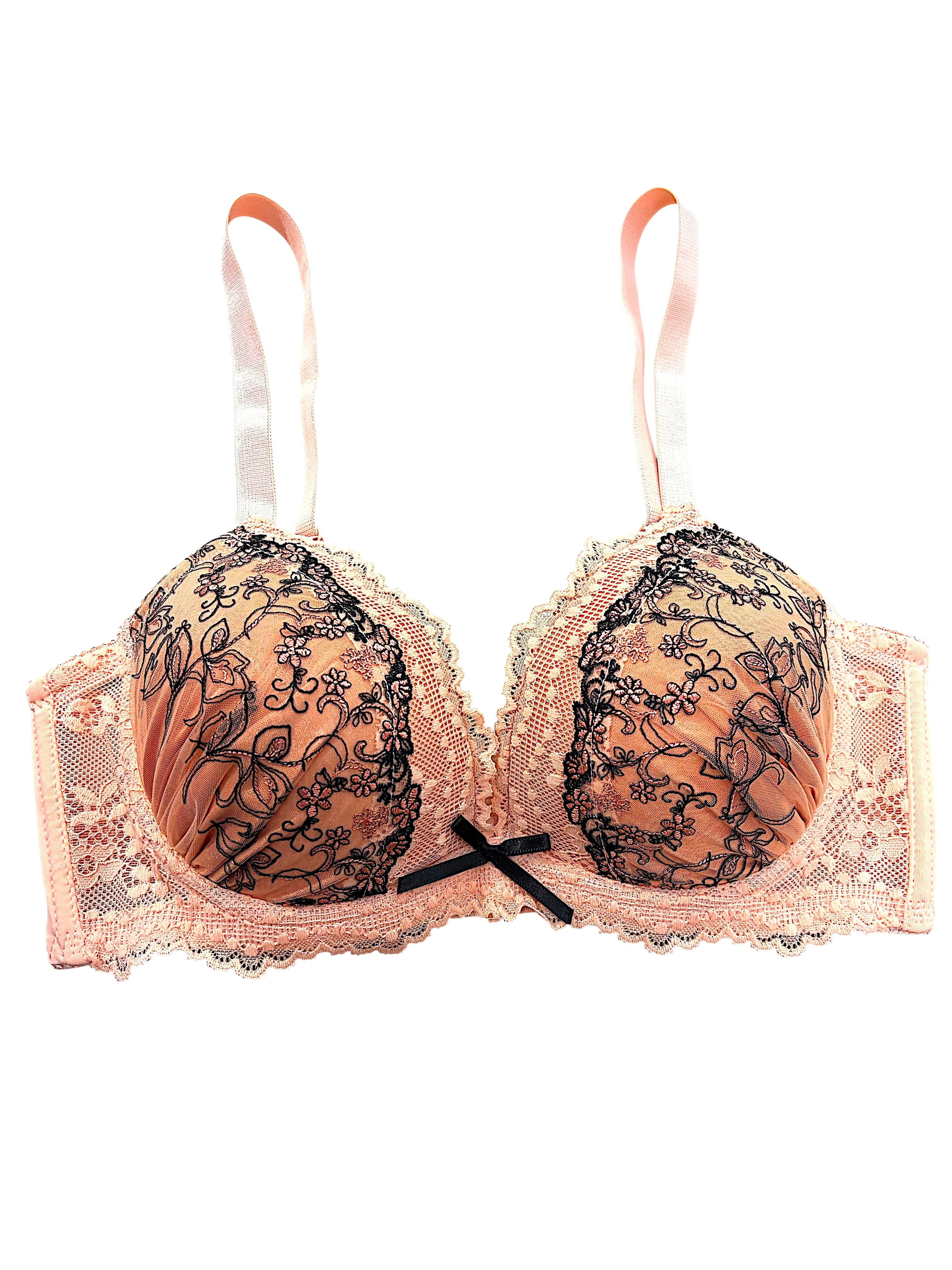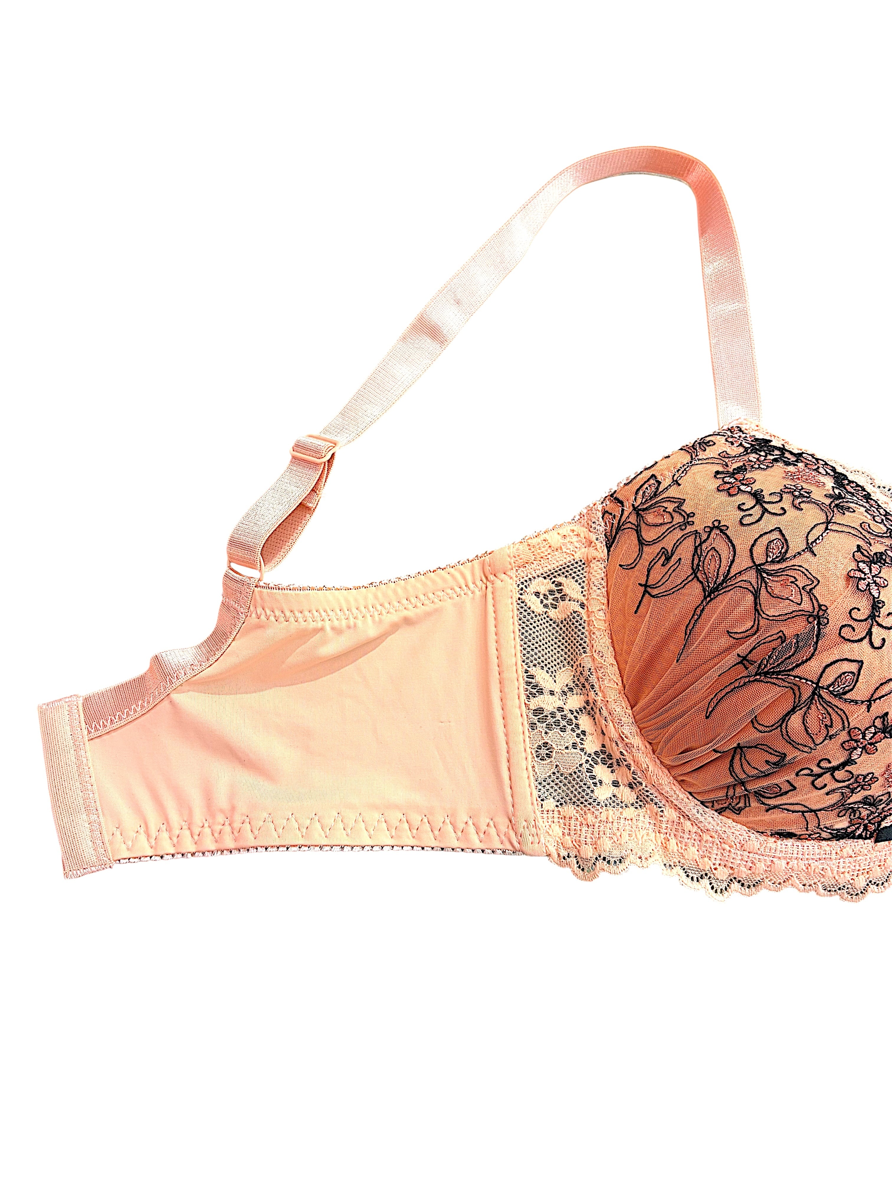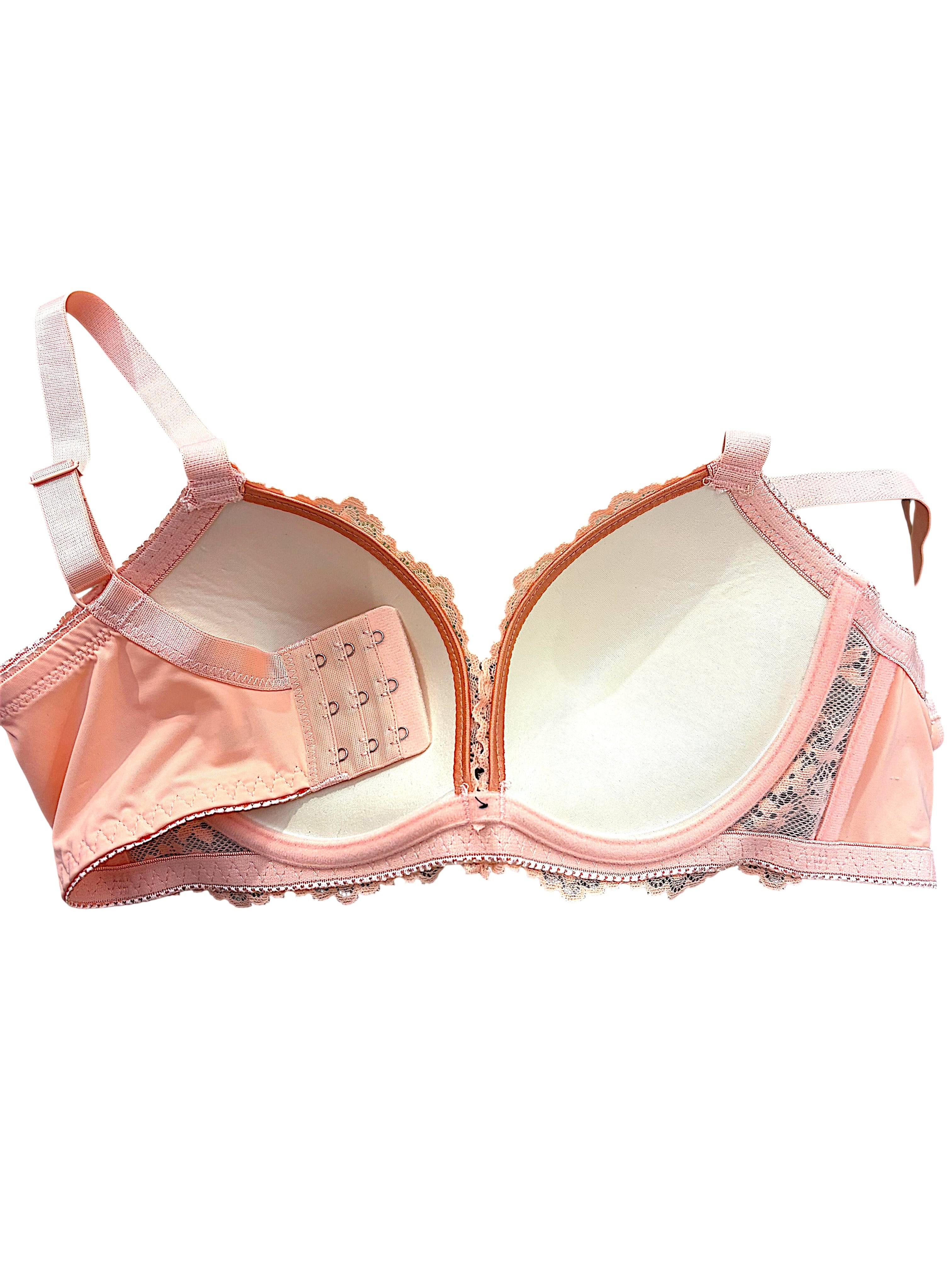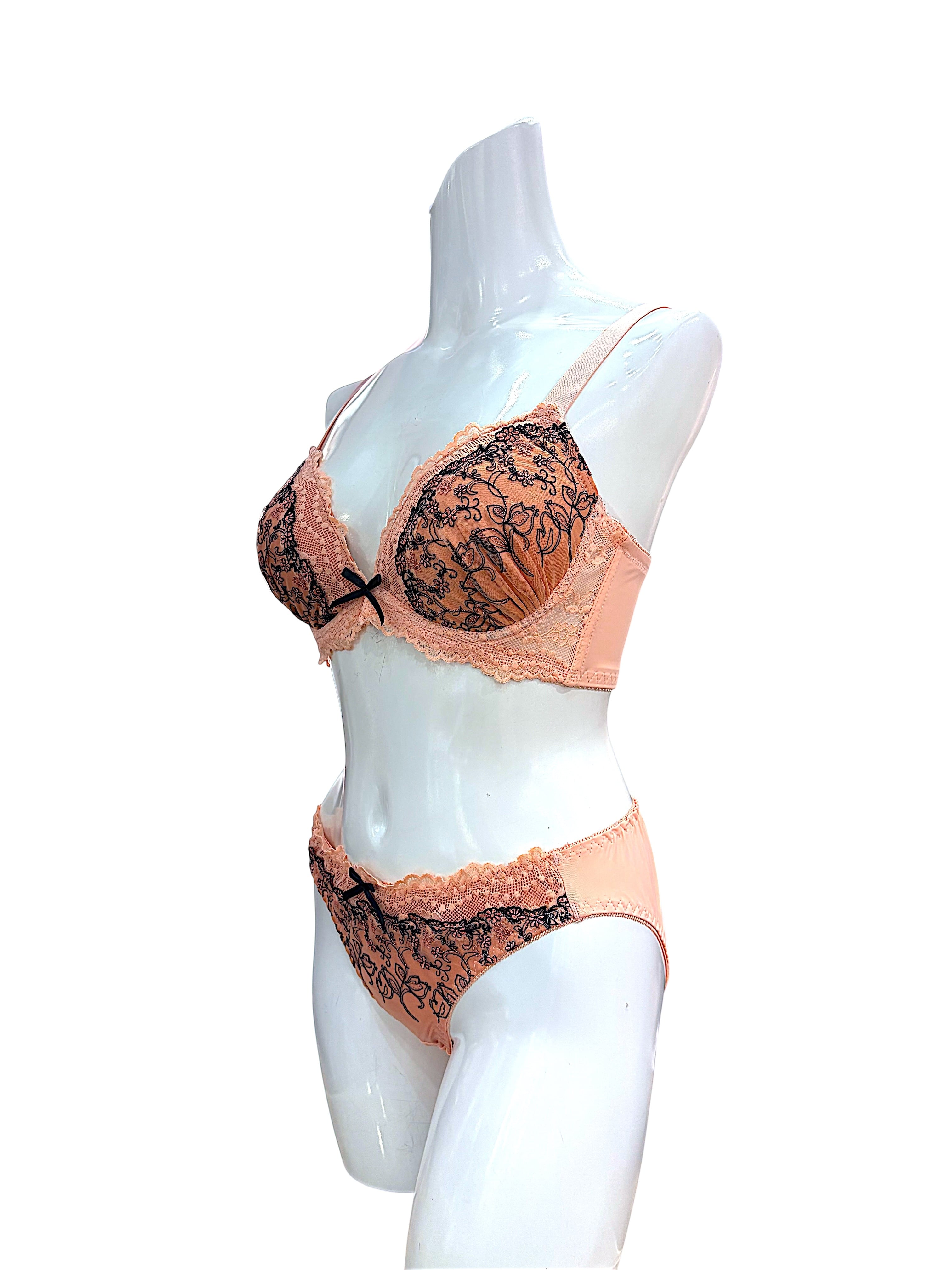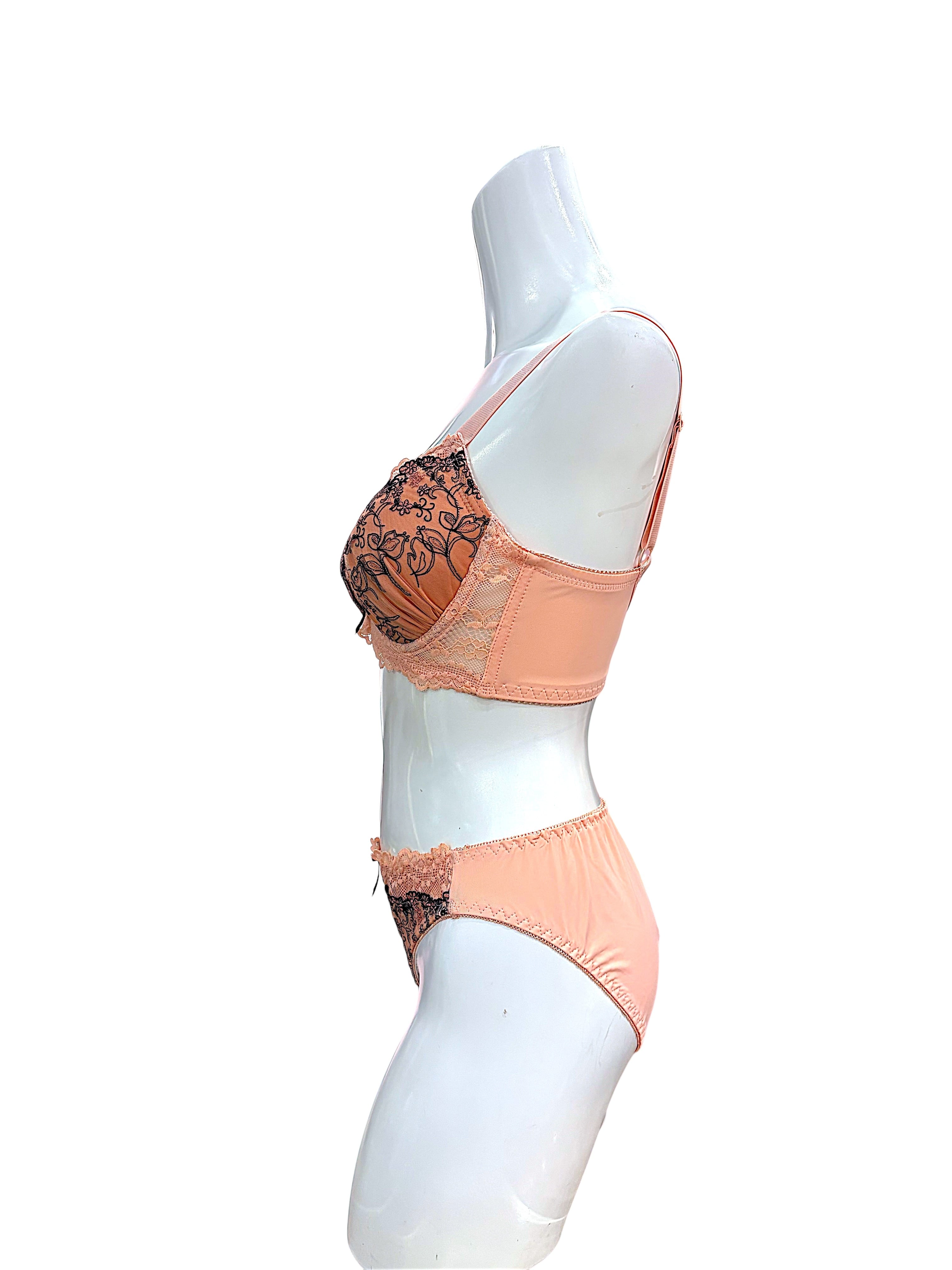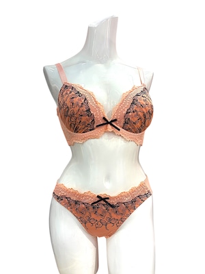 GH【76643オレンジ】脇高補正 美胸レースブラショーツセット 谷間メイク 大きいサイズ EFカップ オレンジ