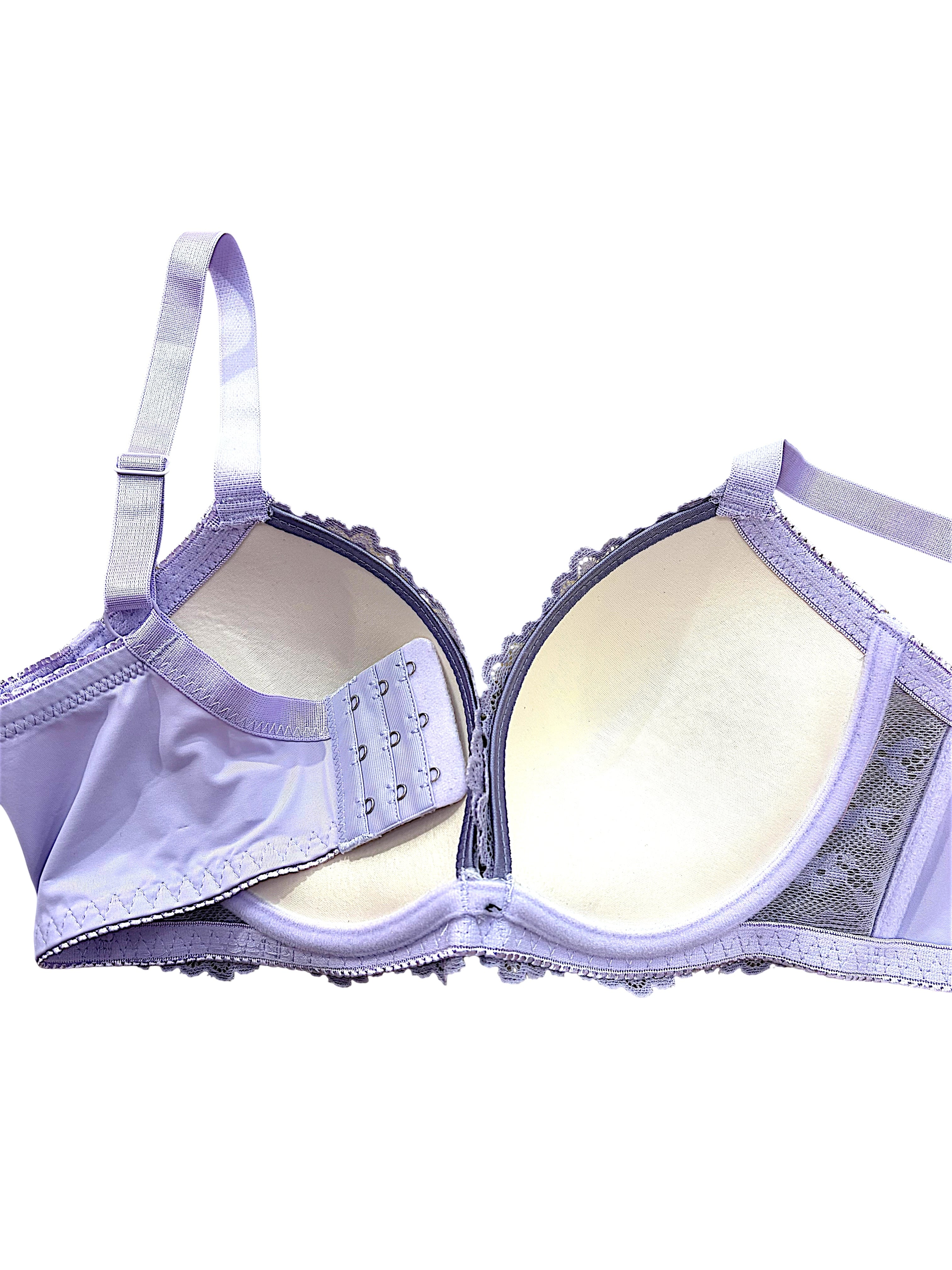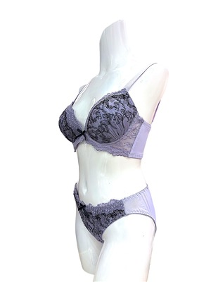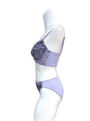 GH【76643 パープル】脇高補正 美胸レースブラショーツセット 谷間メイク 大きいサイズ GHカップ パープル