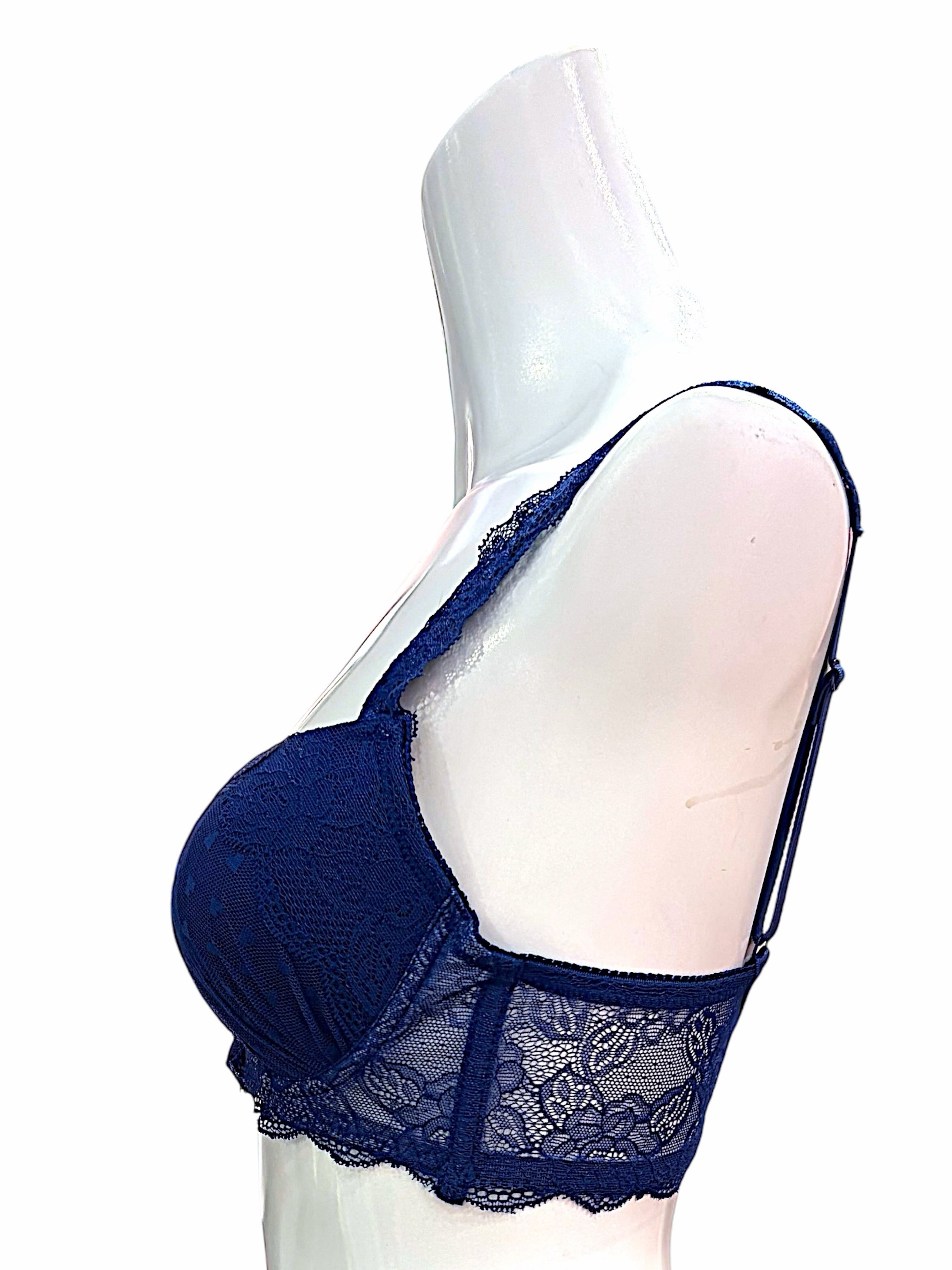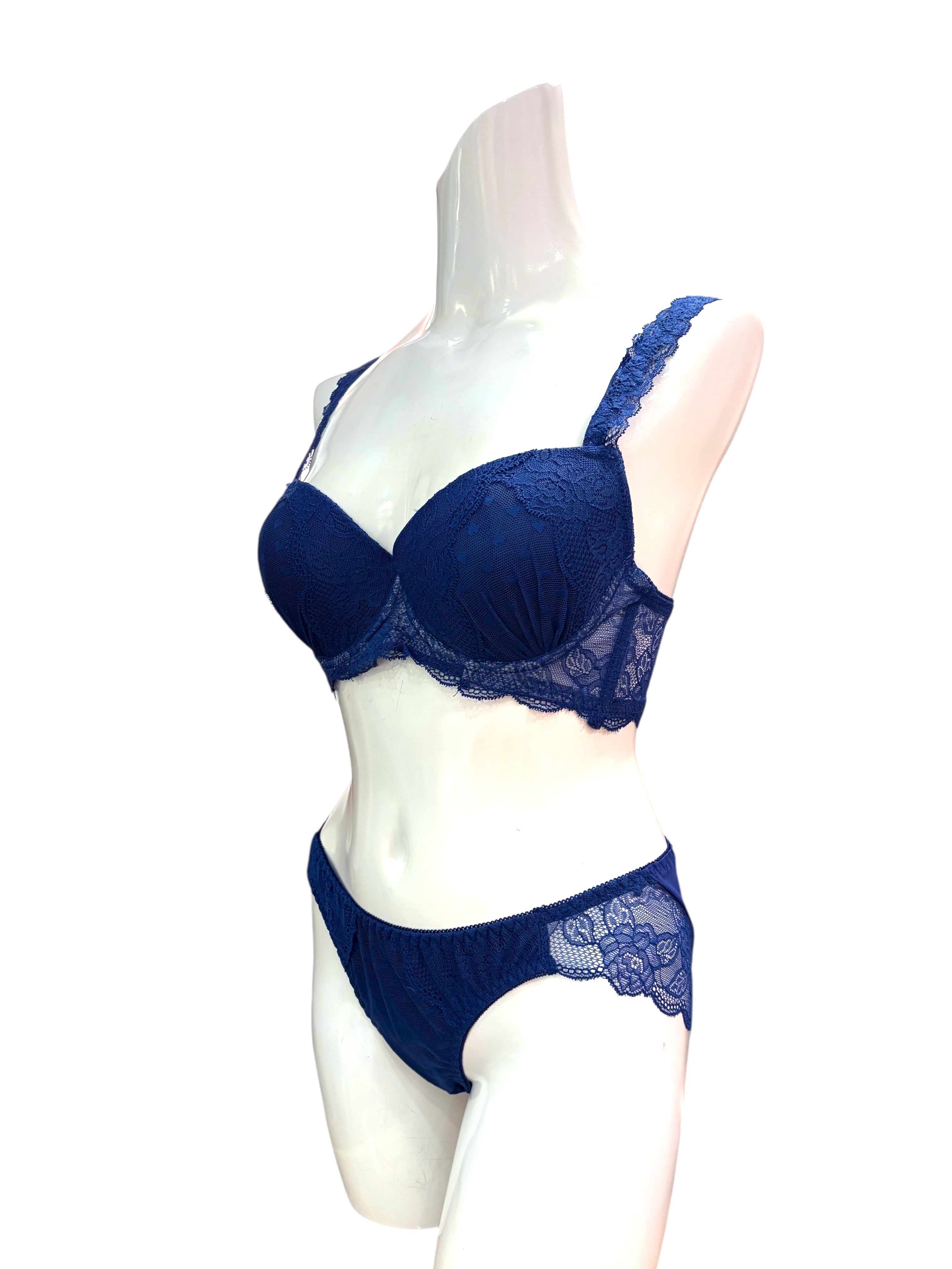 BCD【76650 ネイビー】レディース ランジェリー 下着 上品レース セクシー 補正ブラ 脇高ブラ バストアップ 美胸 盛れるブラ ショーツセット 大人可愛い ネイビーブラセット