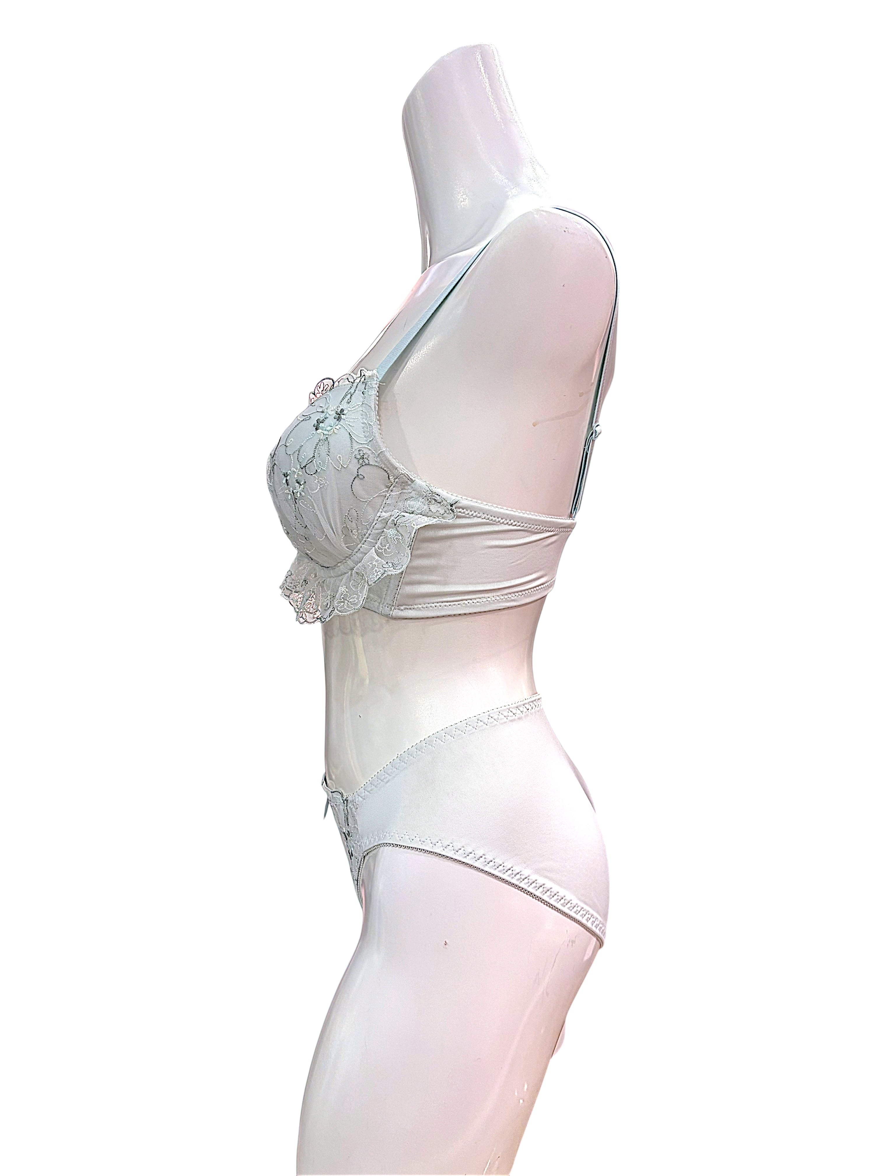 BCD【702700 グリーン】繊細フラワー刺繍×L字ワイヤーブラ&ショーツセット/ライトグリーン
