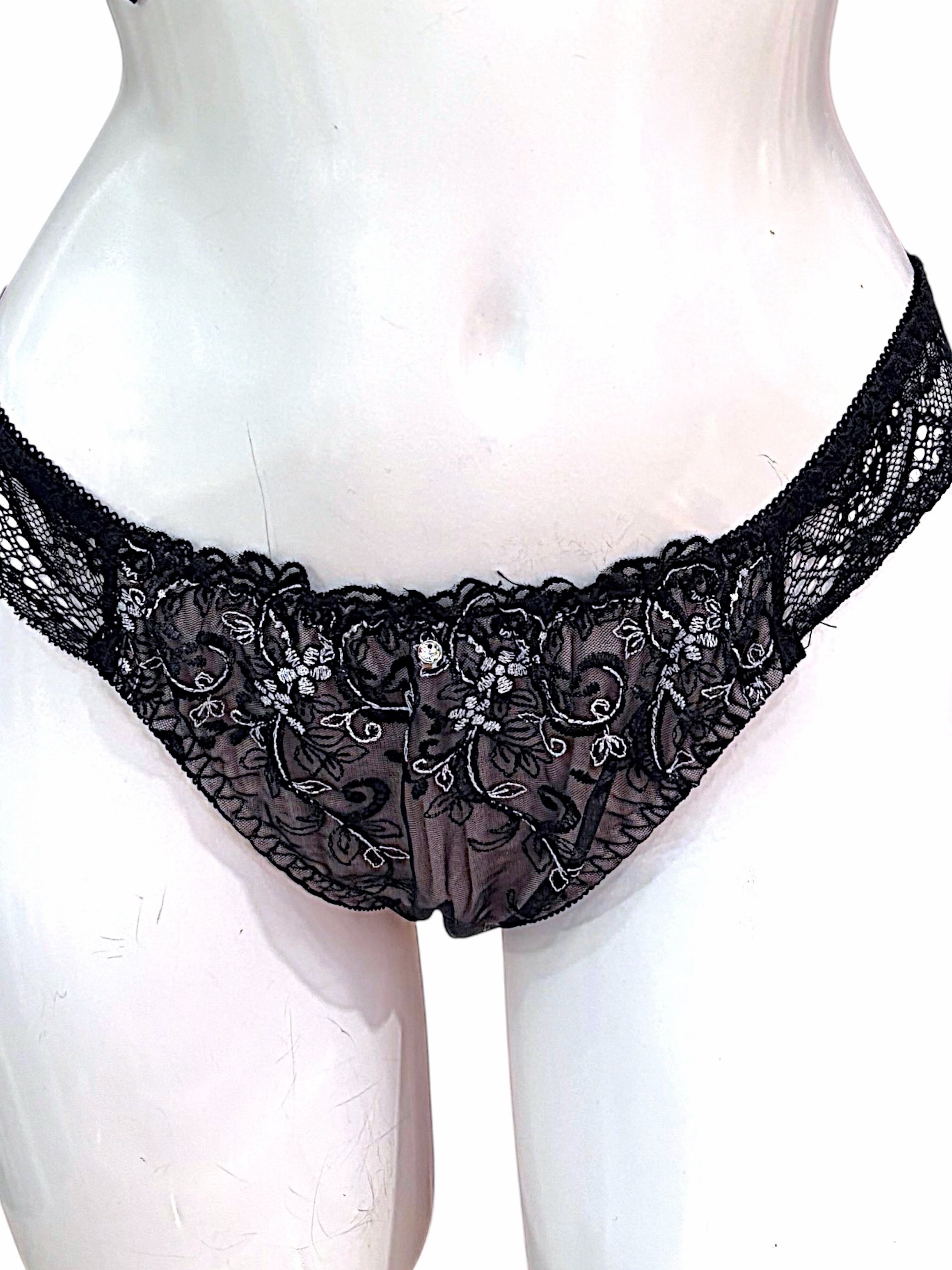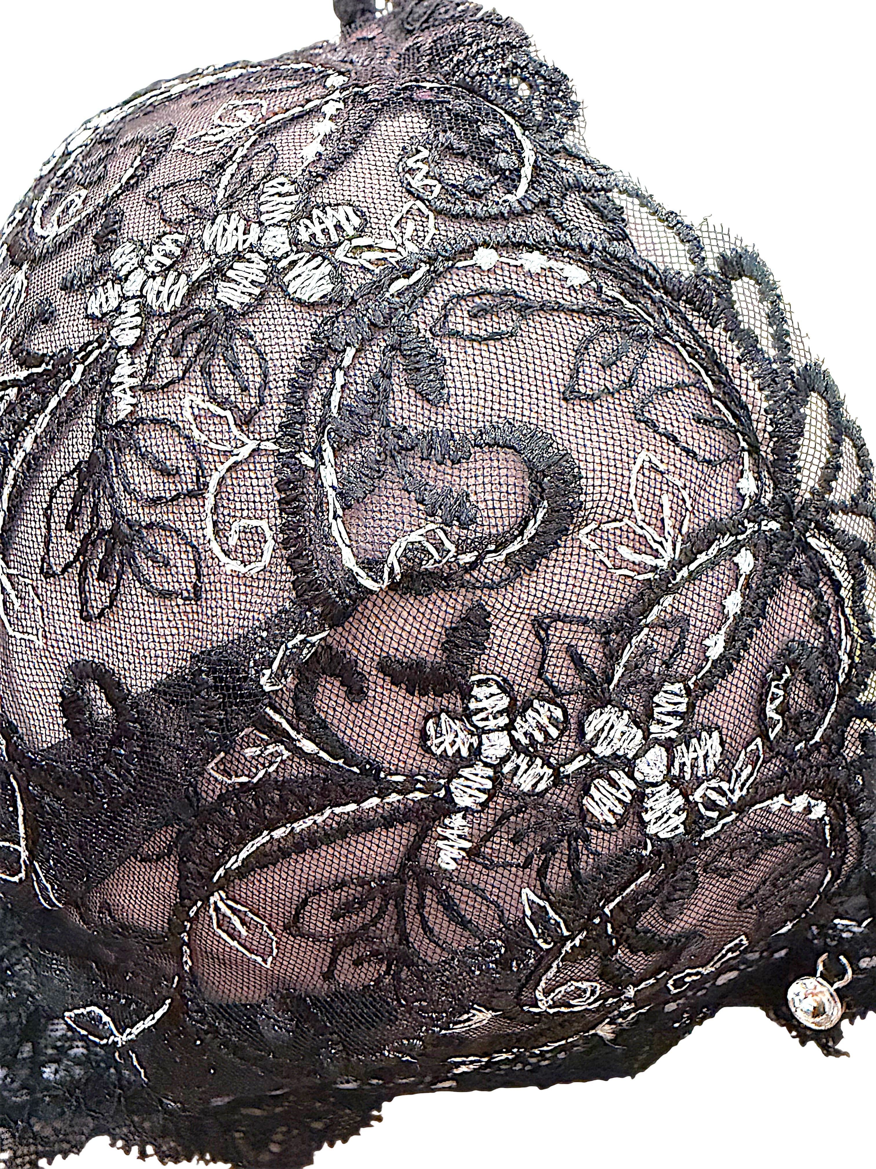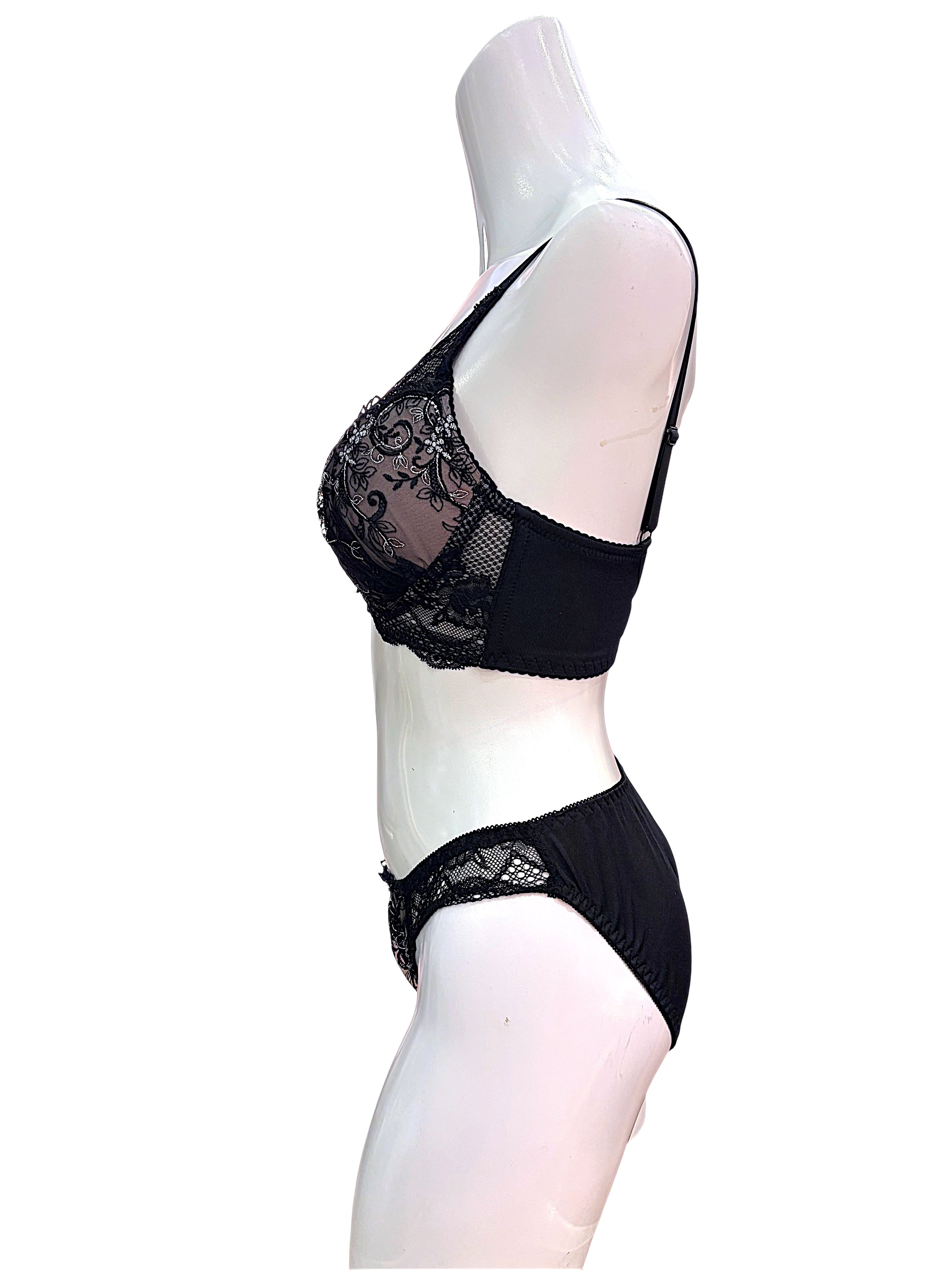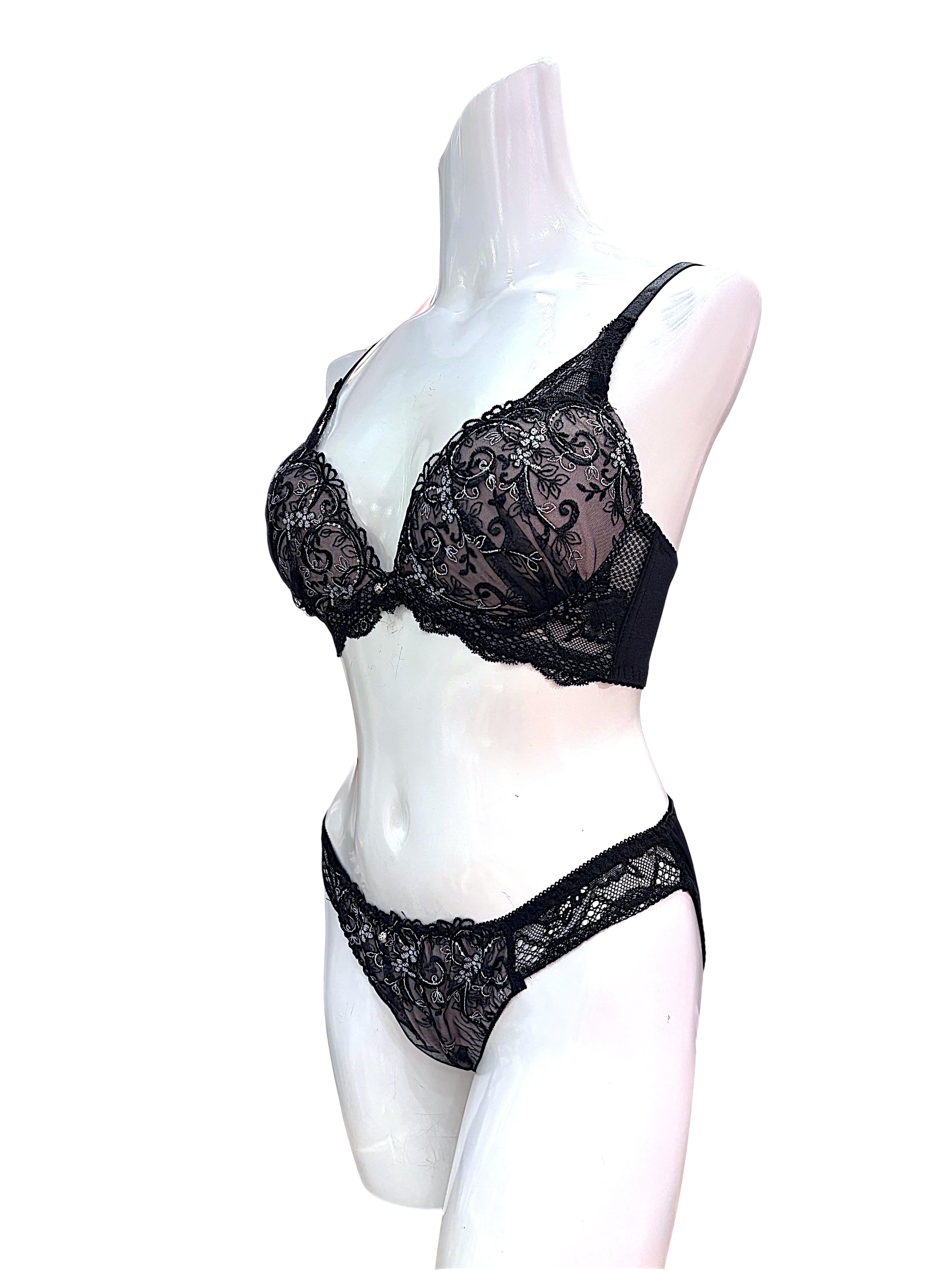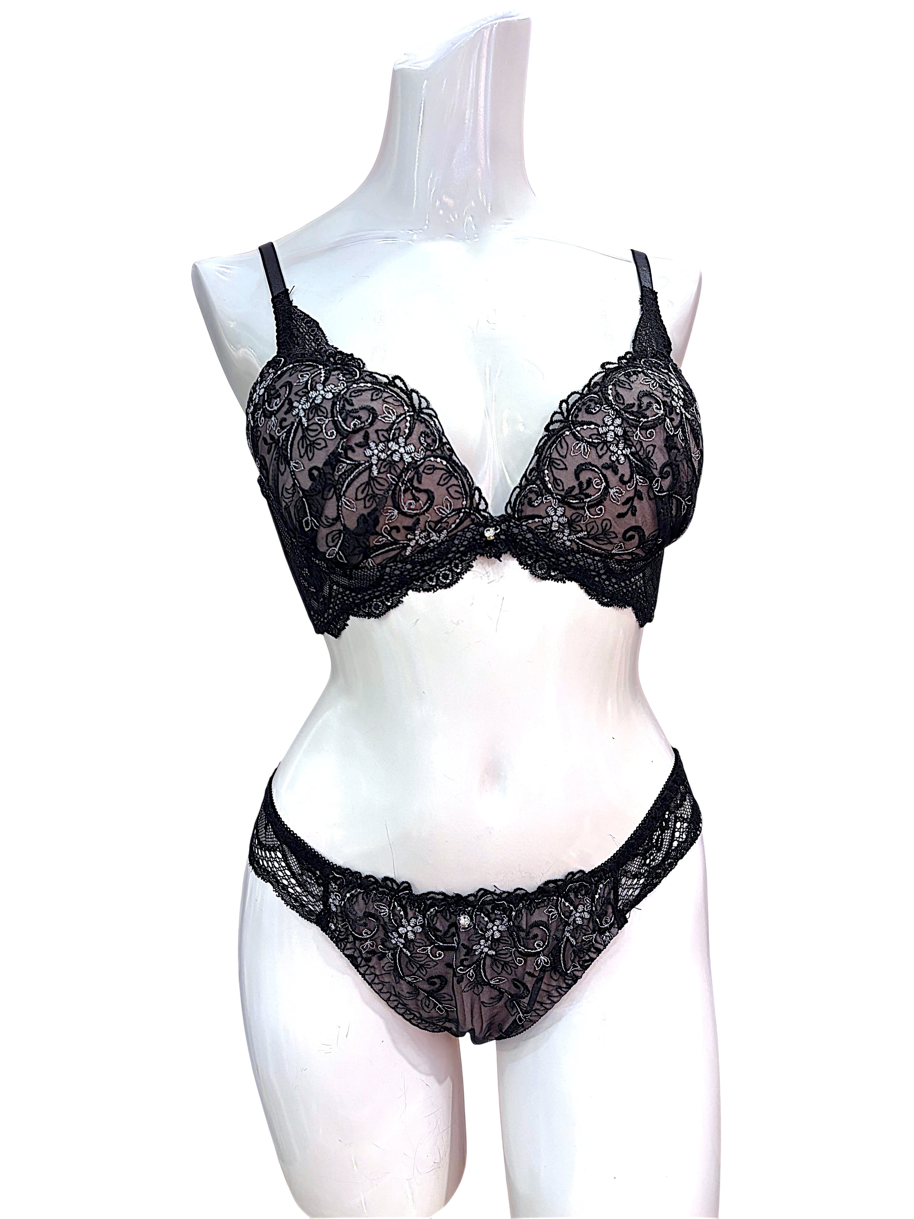 BCD【8000300 ブラック】脇高高級刺繍レースランジェリーセット ブラ&ショーツ 上下セット