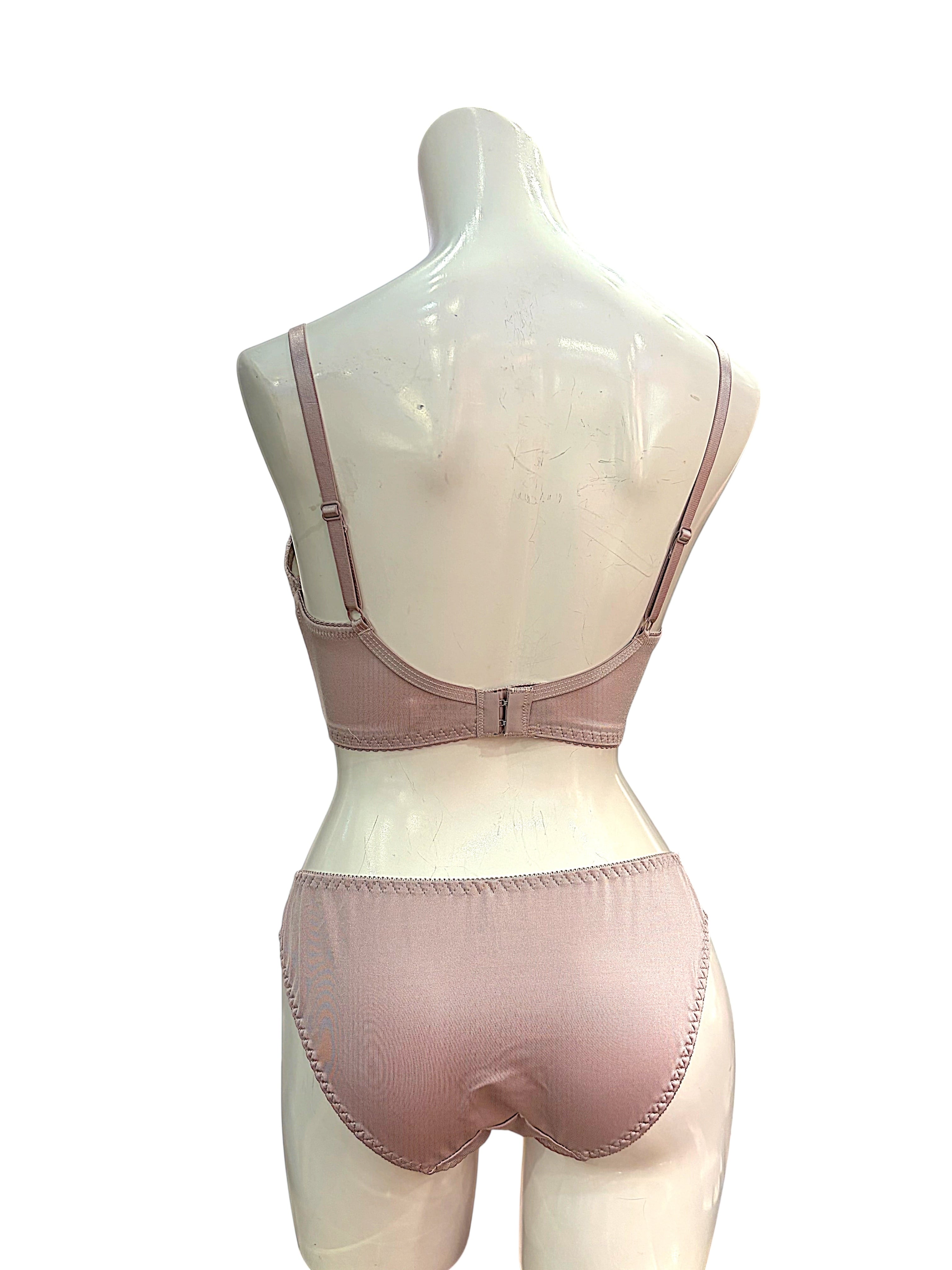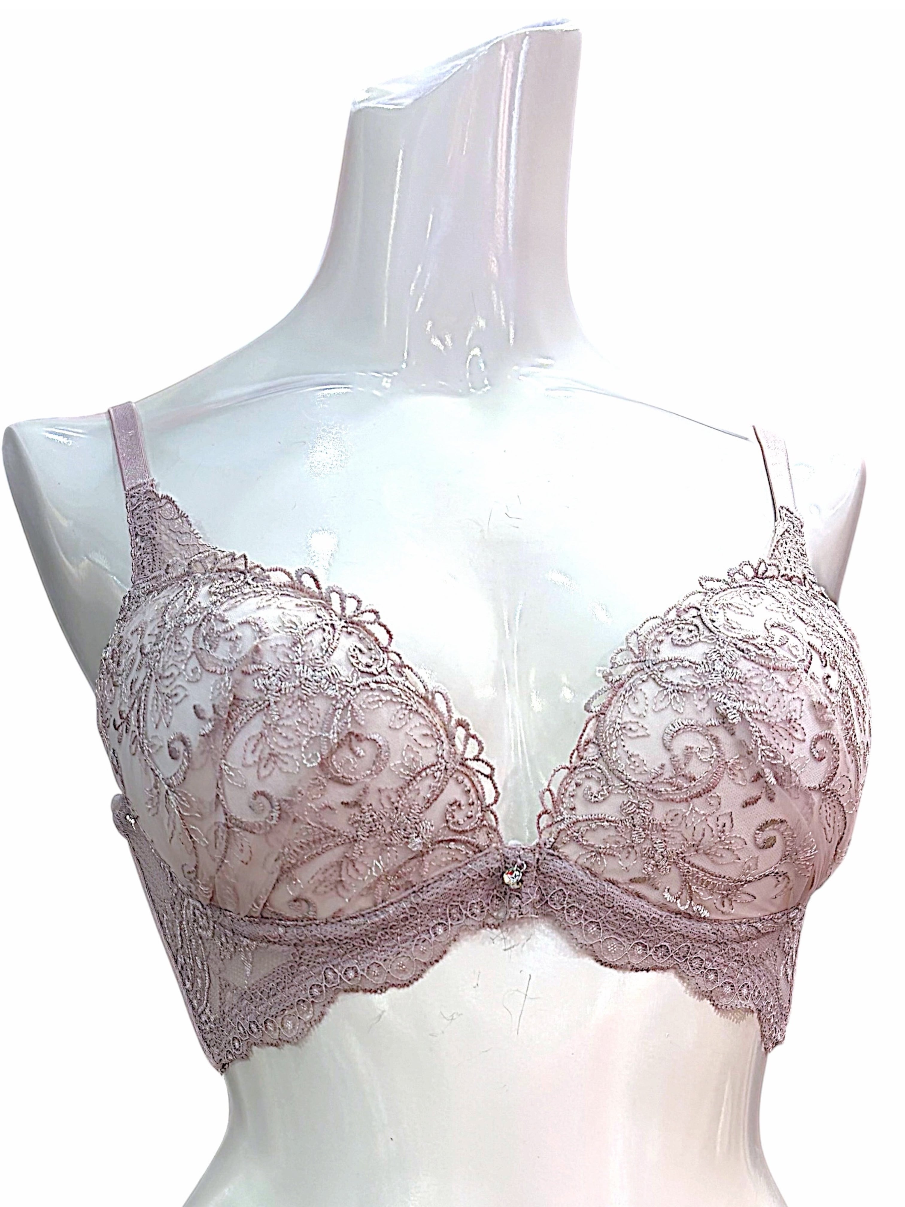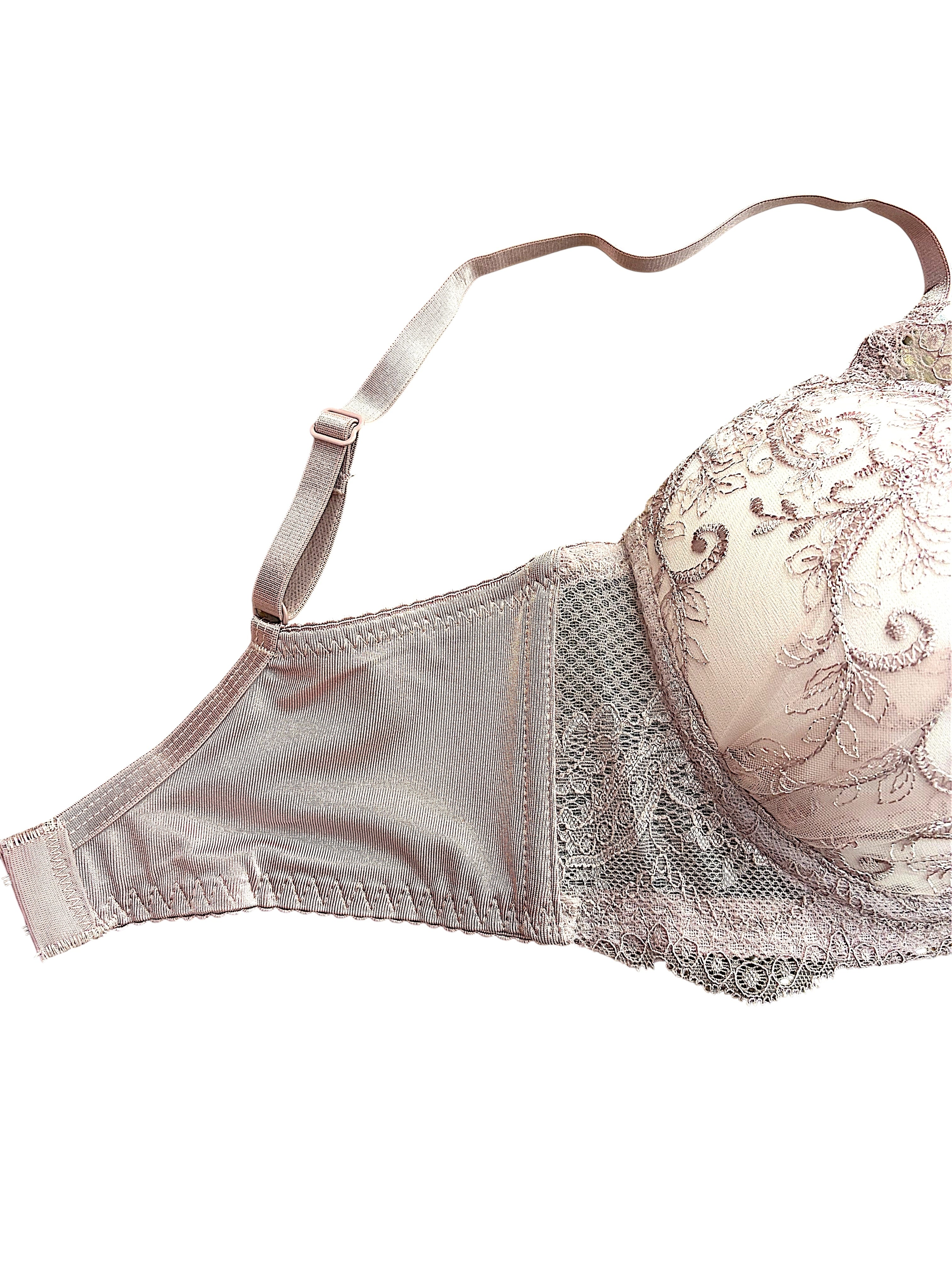 BCD【8000300 ピンクベージュ】脇高フレンチロマンス刺繍レースランジェリーセット ブラ&ショーツ 上下セット モーヴピンク