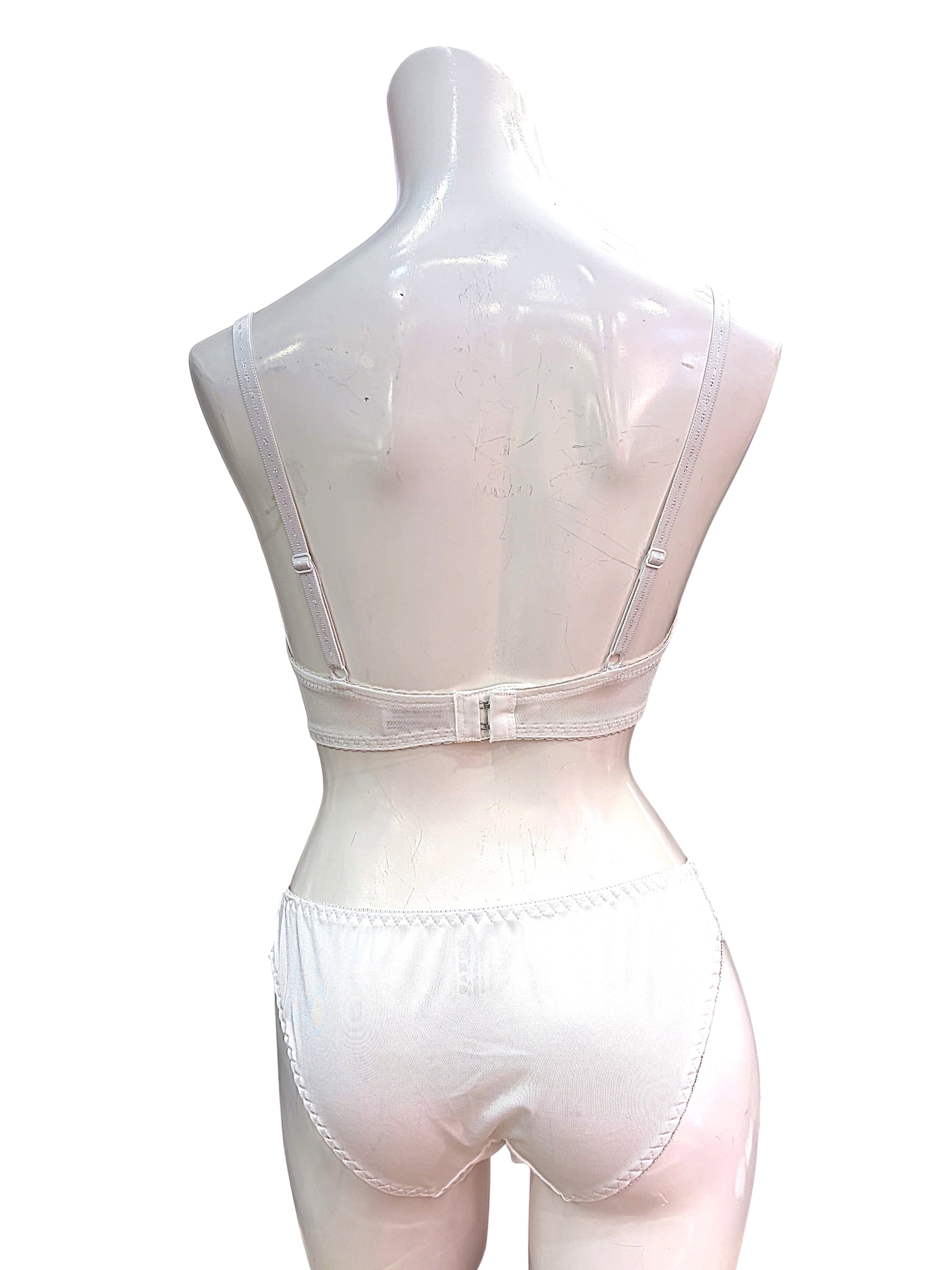 BCD【8000600 ホワイト】ピュアホワイト刺繍レースランジェリーセット ブラ&ショーツ 上下セット リボン付き