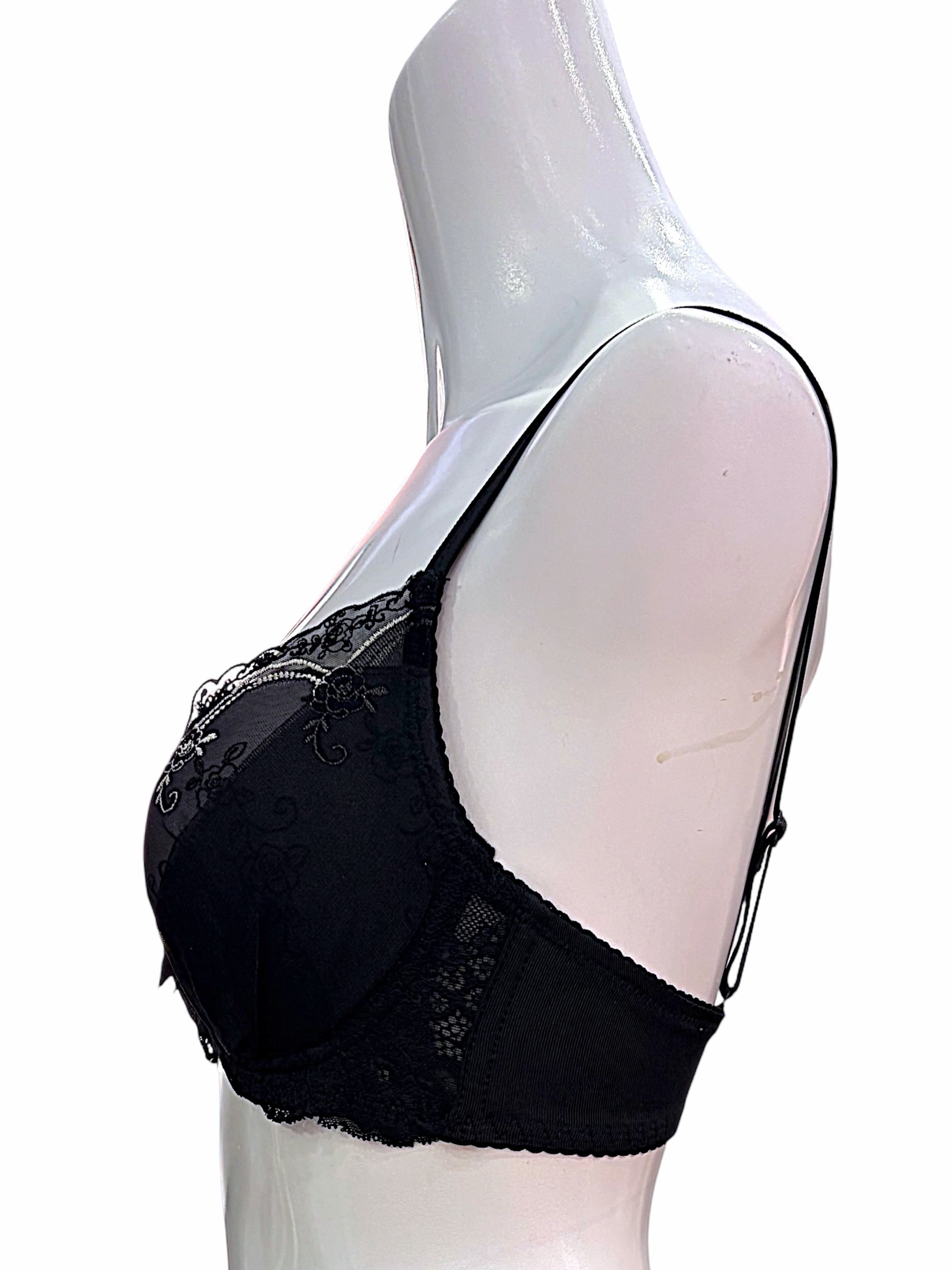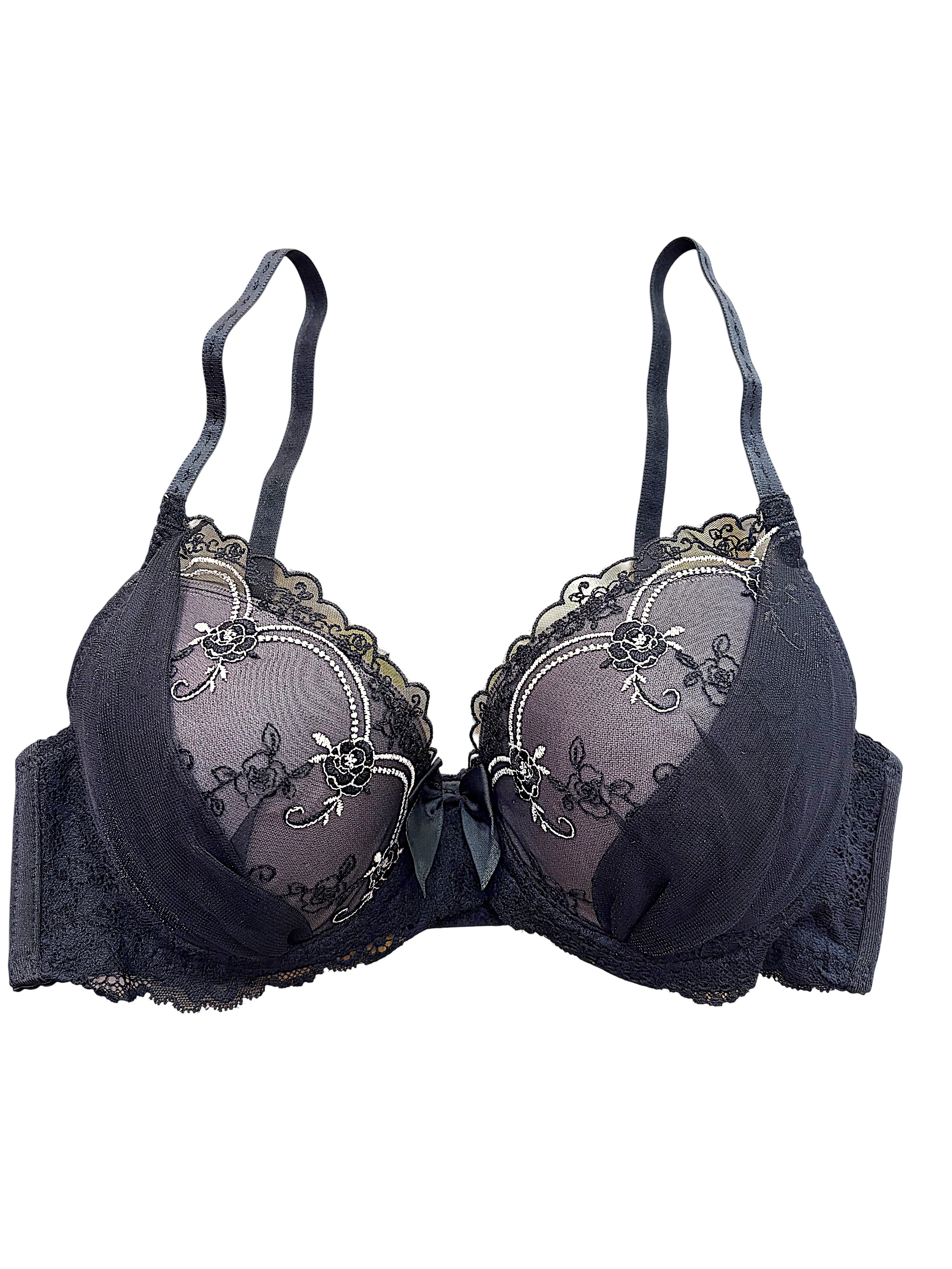 BCD【8000600 ブラック】ローズ刺繍シースルーレースランジェリーセット ブラ&ショーツ 上下セット ブラック