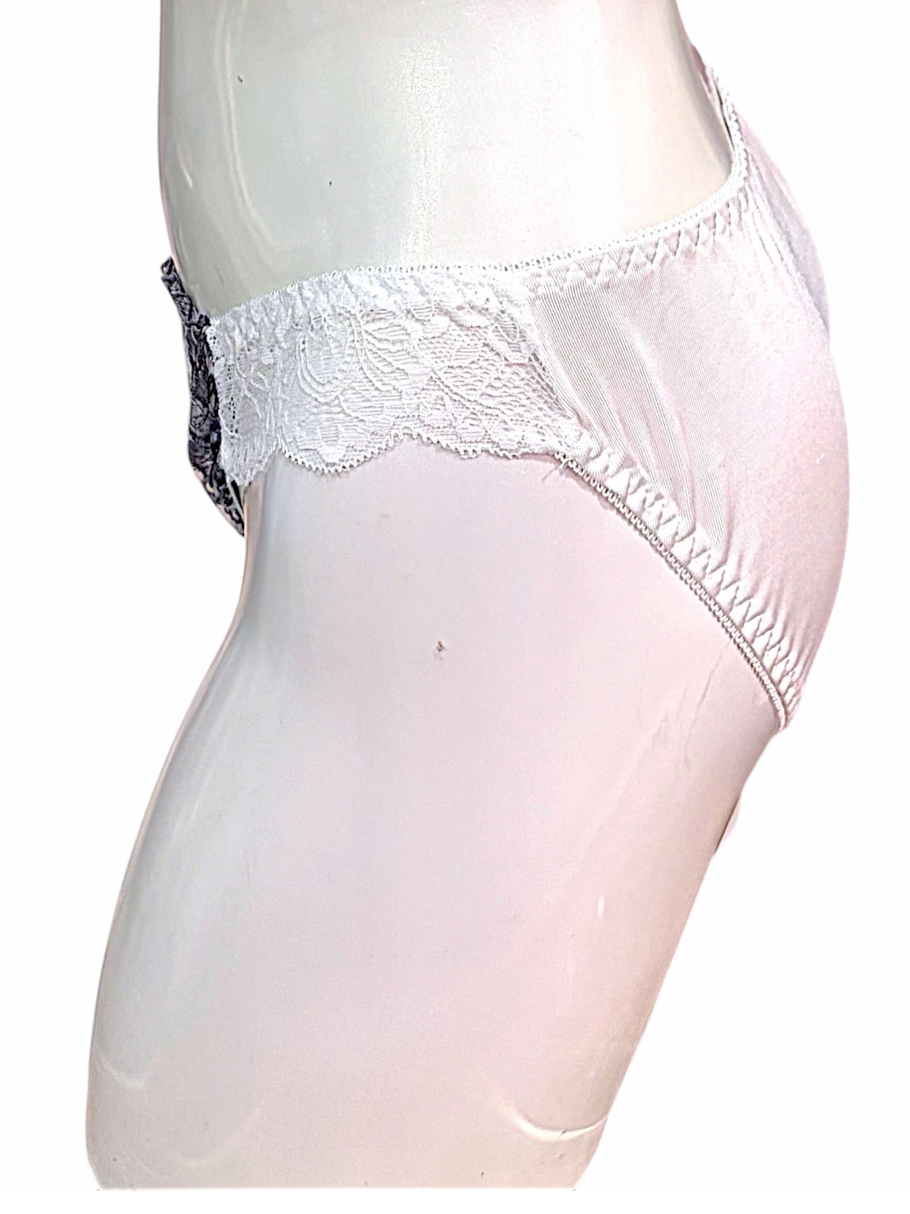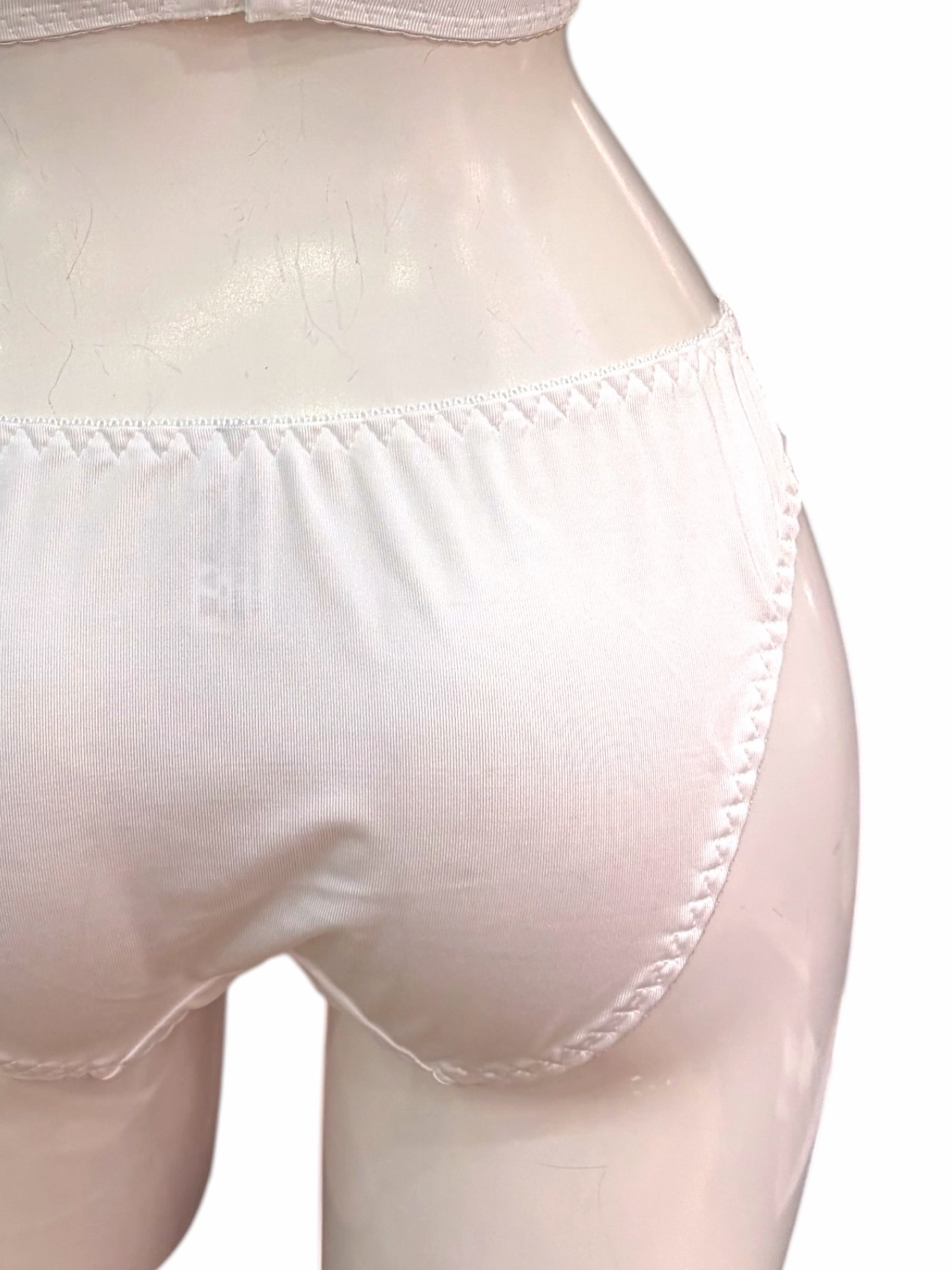 スカラップホワイトレースがカップとウエストを上品に縁どる