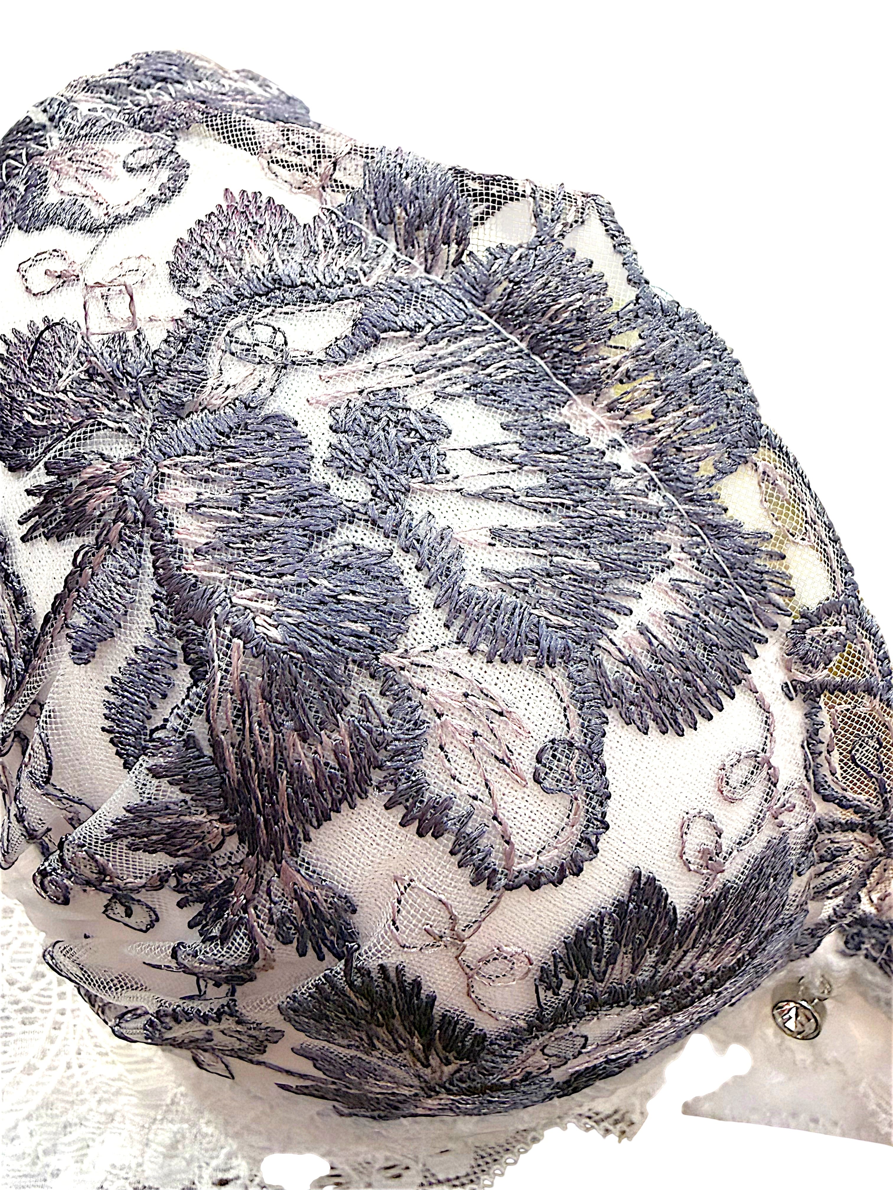 カップ全体を覆うたっぷりボタニカル花刺繍