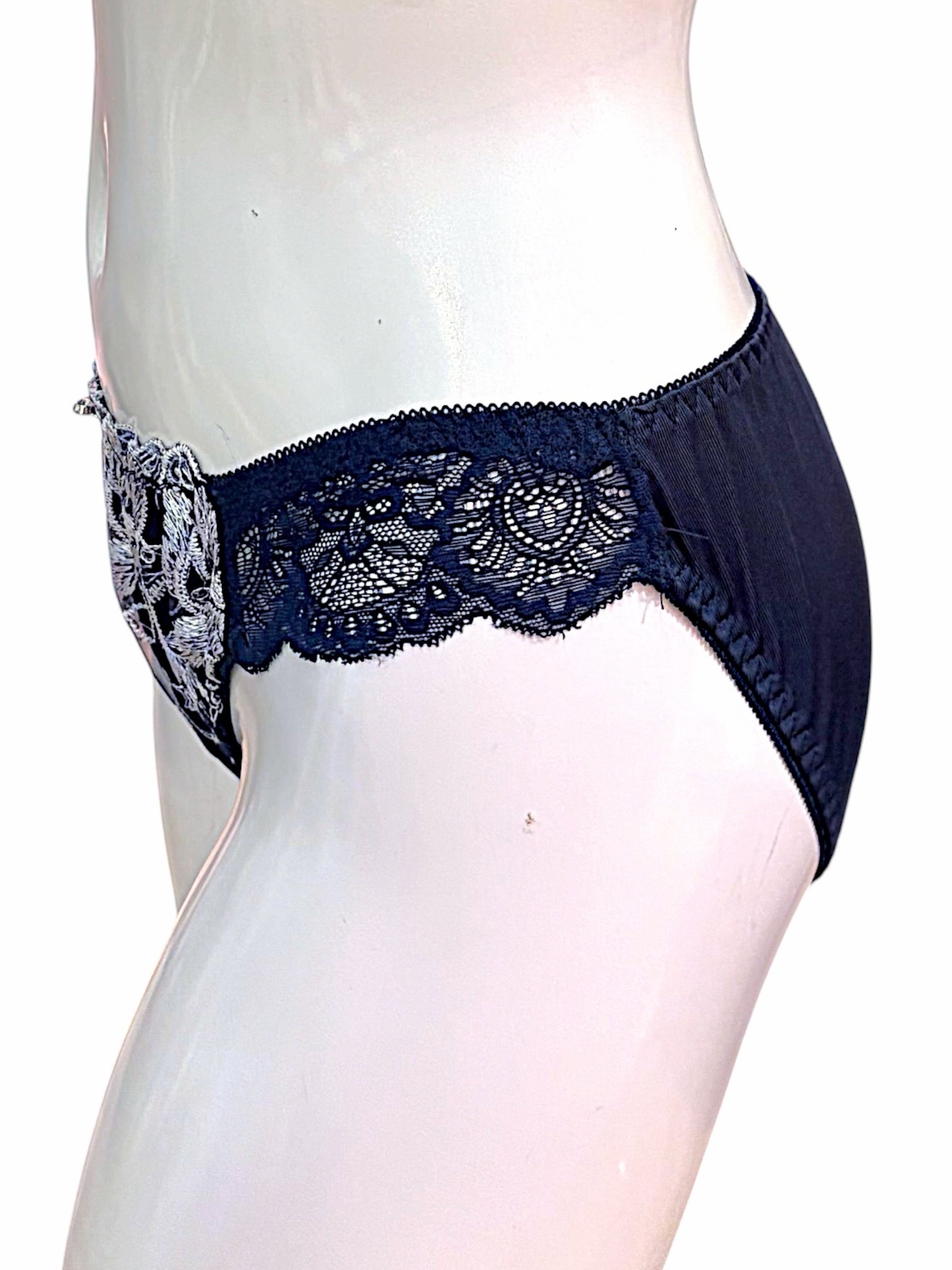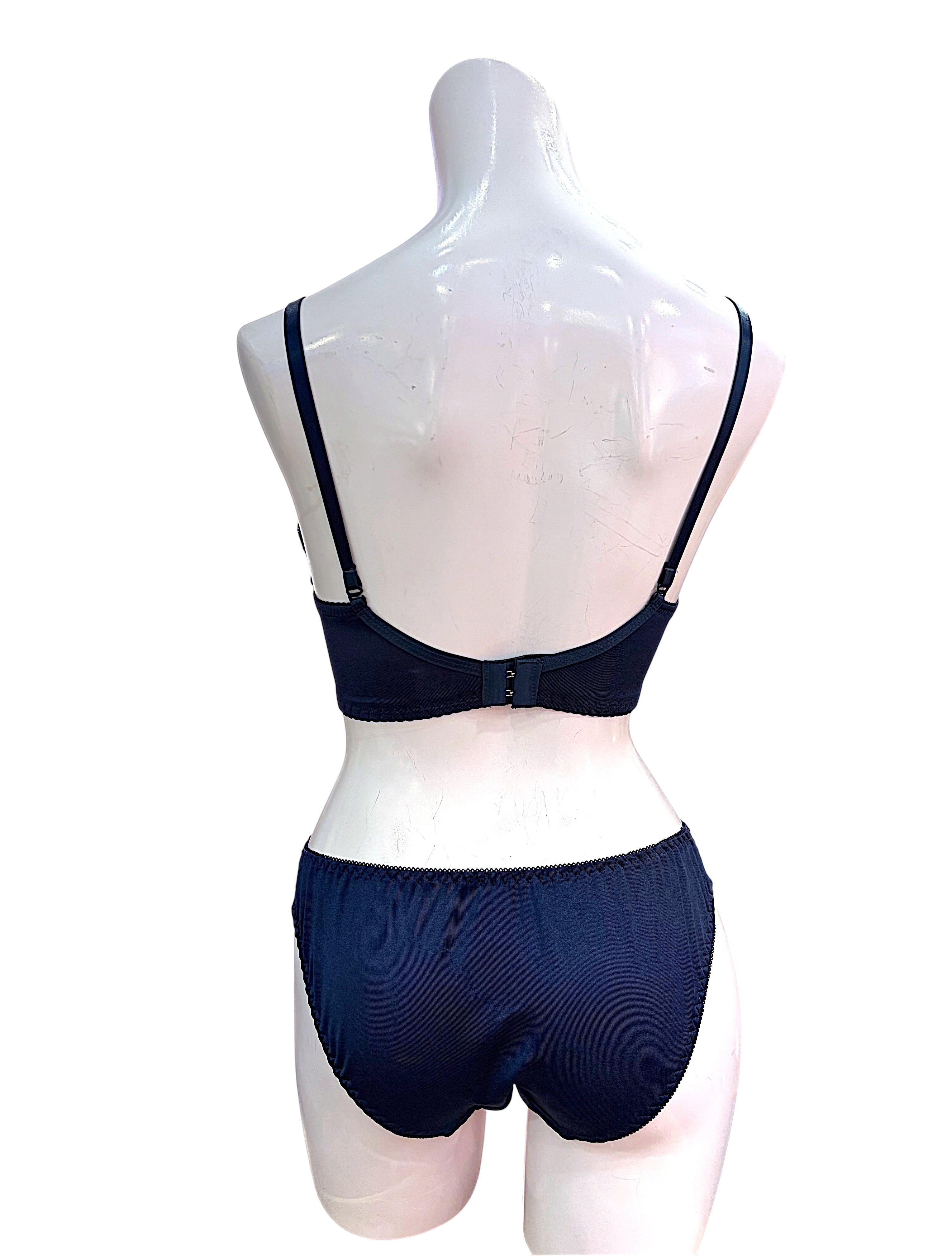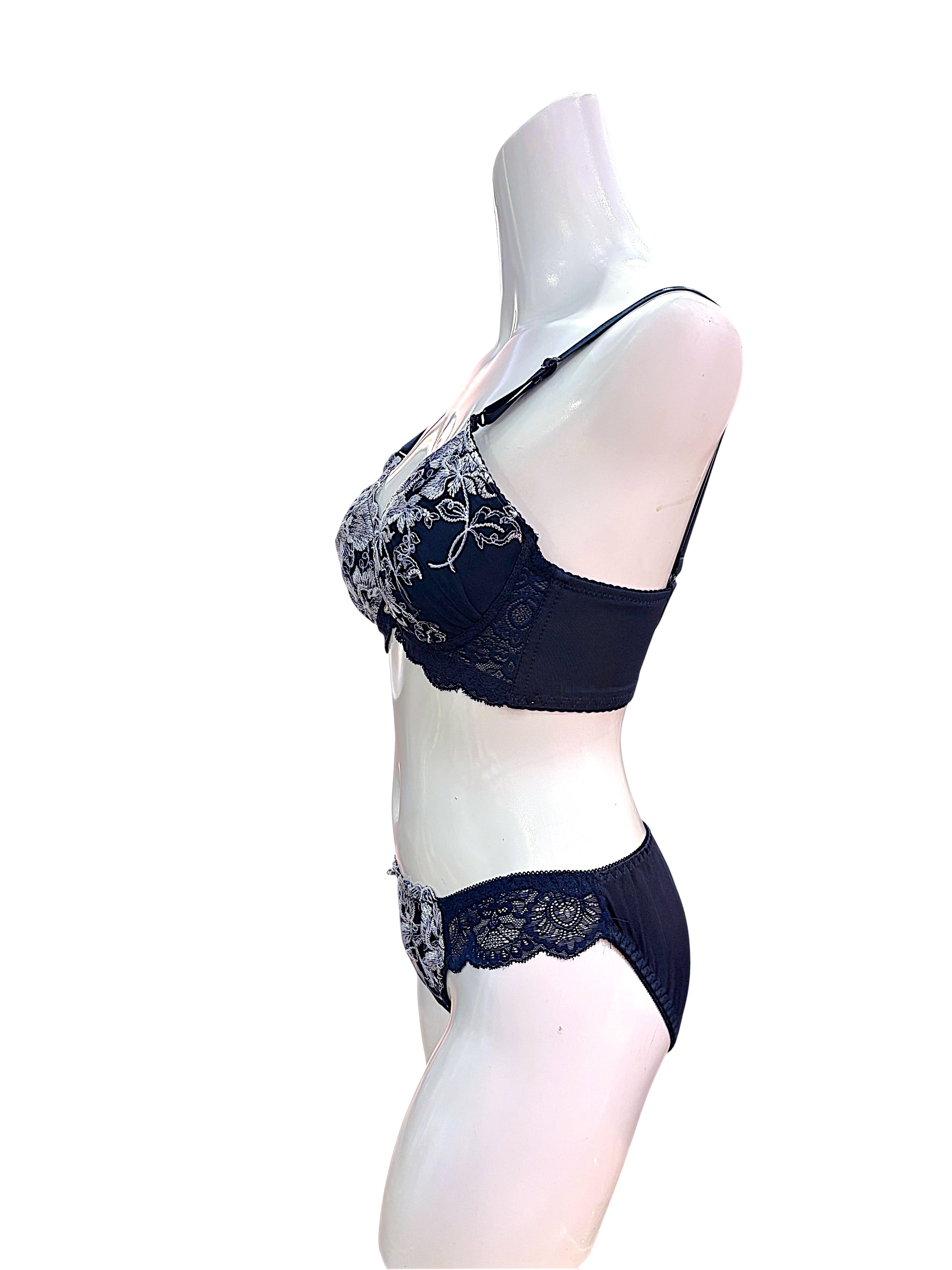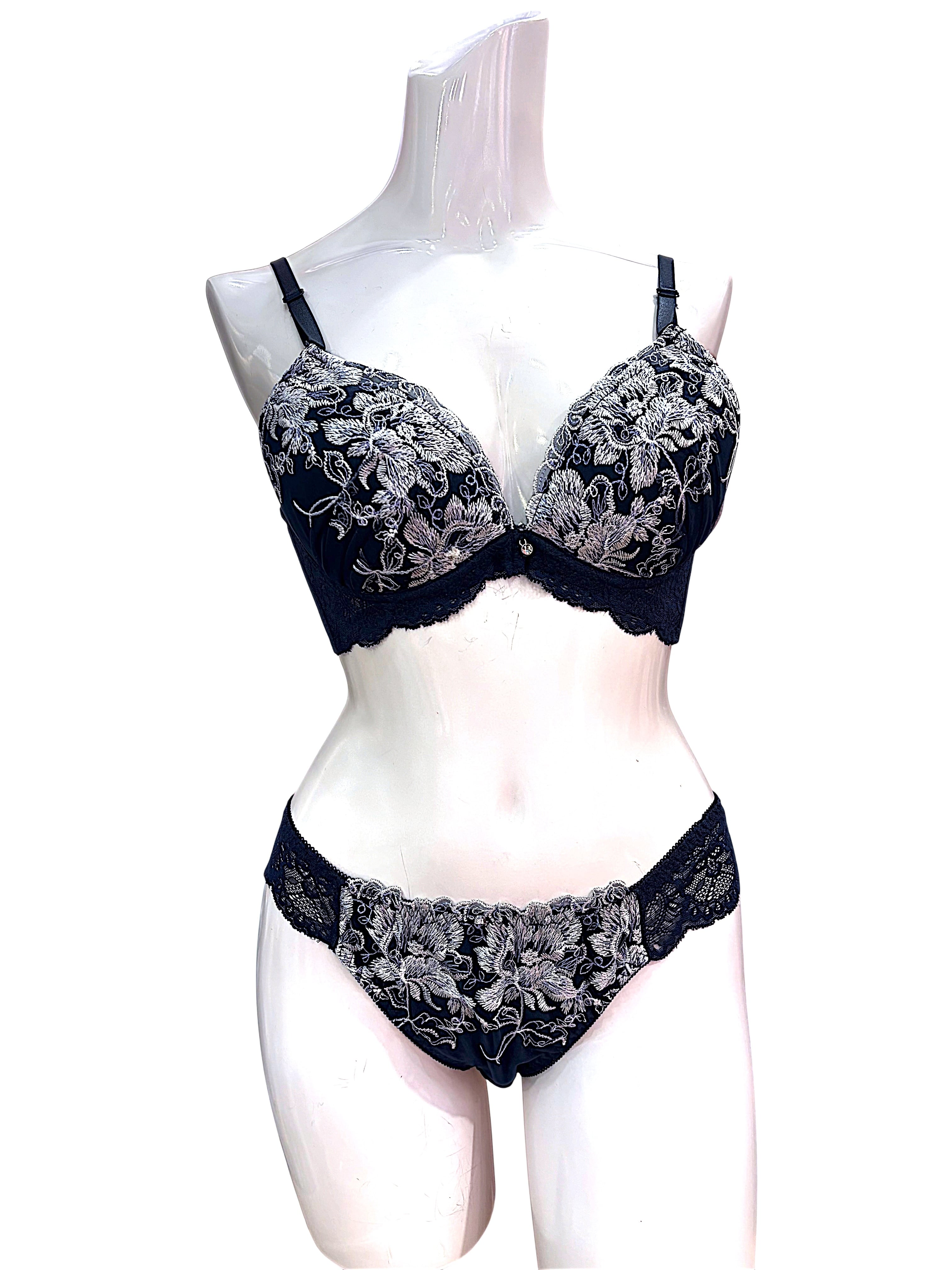 BCD【8000200 ネイビー】ボタニカル刺繍レースランジェリーセット ブラ&ショーツ 上下セット ネイビー B/C/Dカップ対応