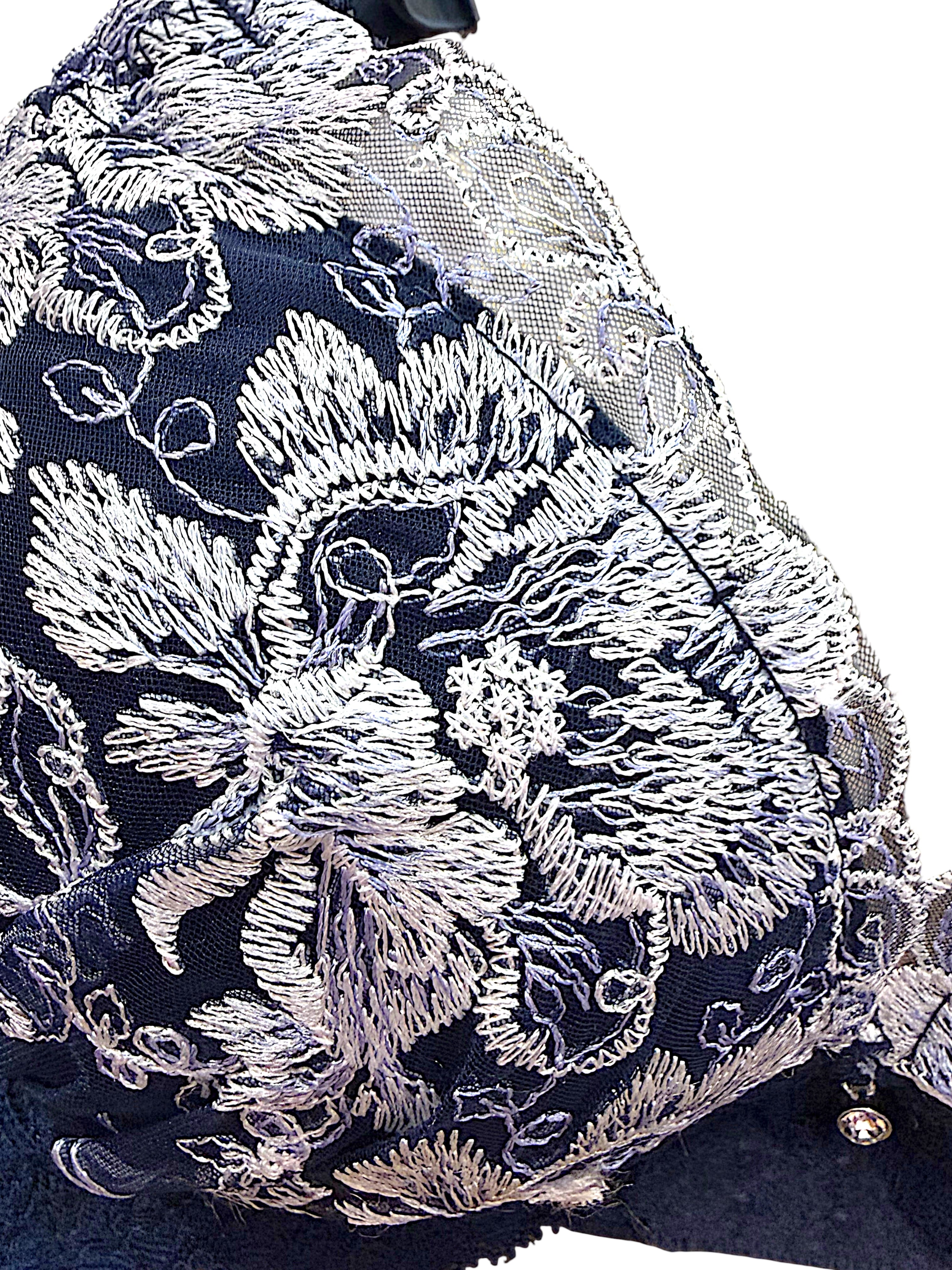 ネイビー地×シルバーホワイト刺繍の上品なコントラスト