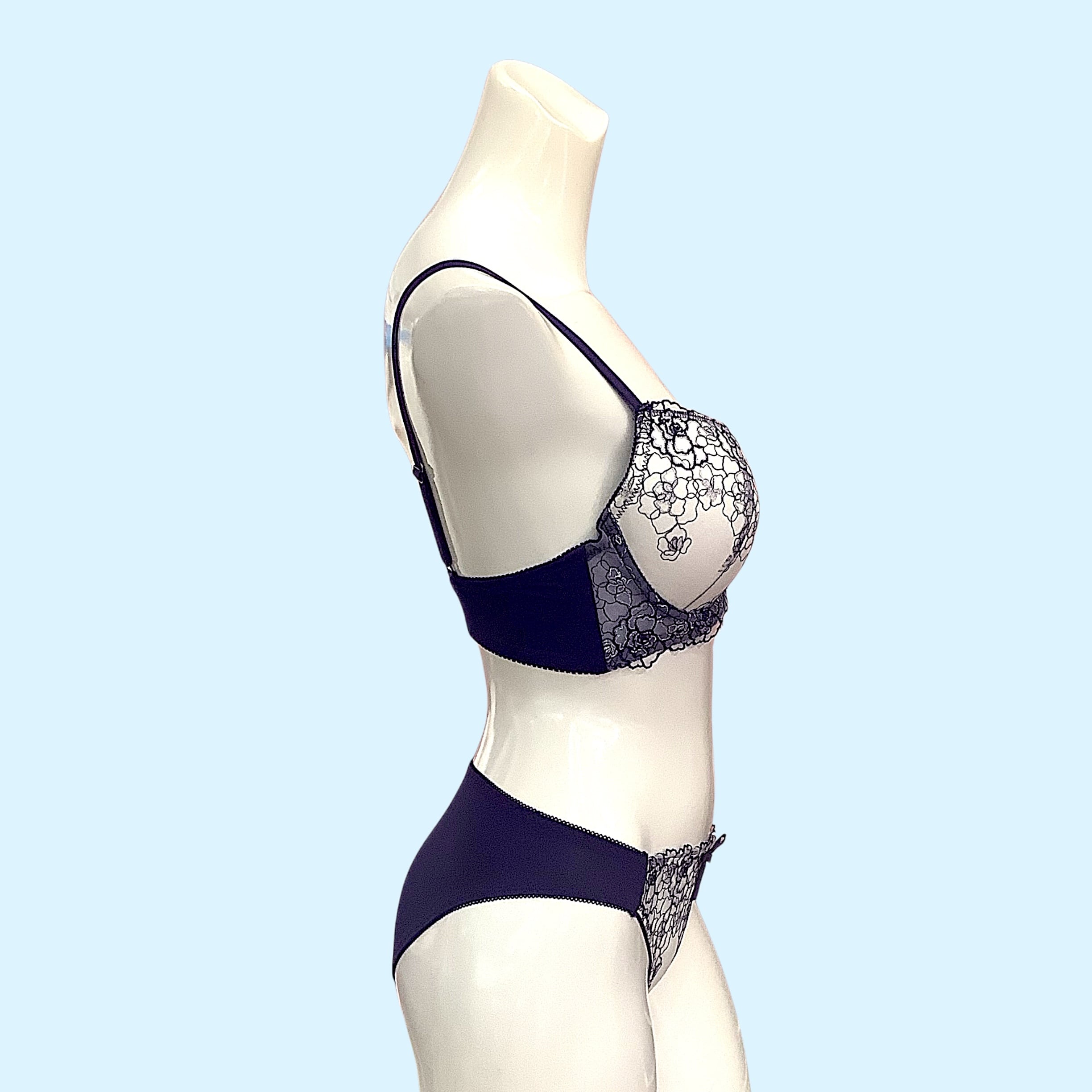 美胸を叶える着け心地バツグンのブラセット、締め付け感もなく、胸元を美しく引き立てるデザインが魅力です。立体裁断されたカップが、バストをしっかりホールドし、美しい谷間を演出。背中側は幅広で締め付け感が少なく、気になる二の腕や背中のたるみもカバーしてくれます。しっかりホールドしつつも、長時間着用しても苦しくないのもおすすめポイントです。